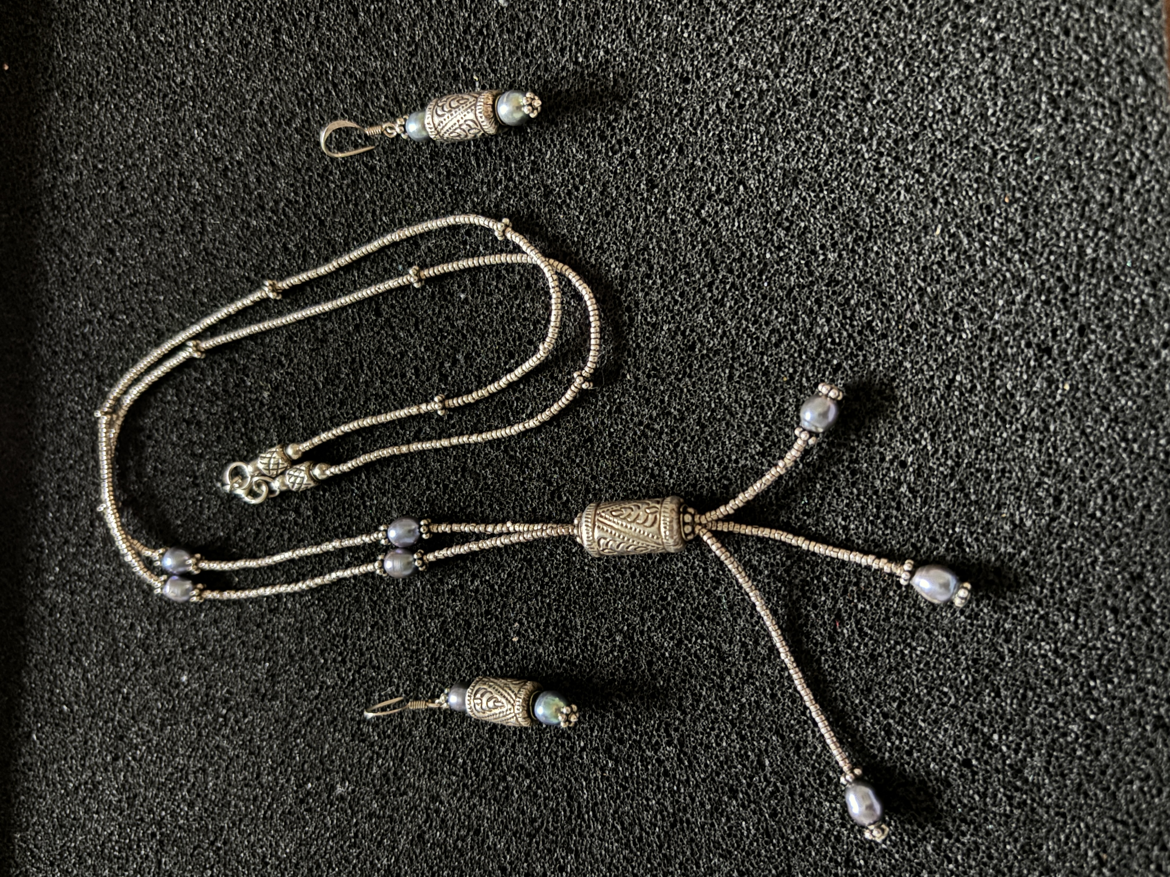 A Silver and pearl necklace with matching earrings weighing 11.99 gm overall