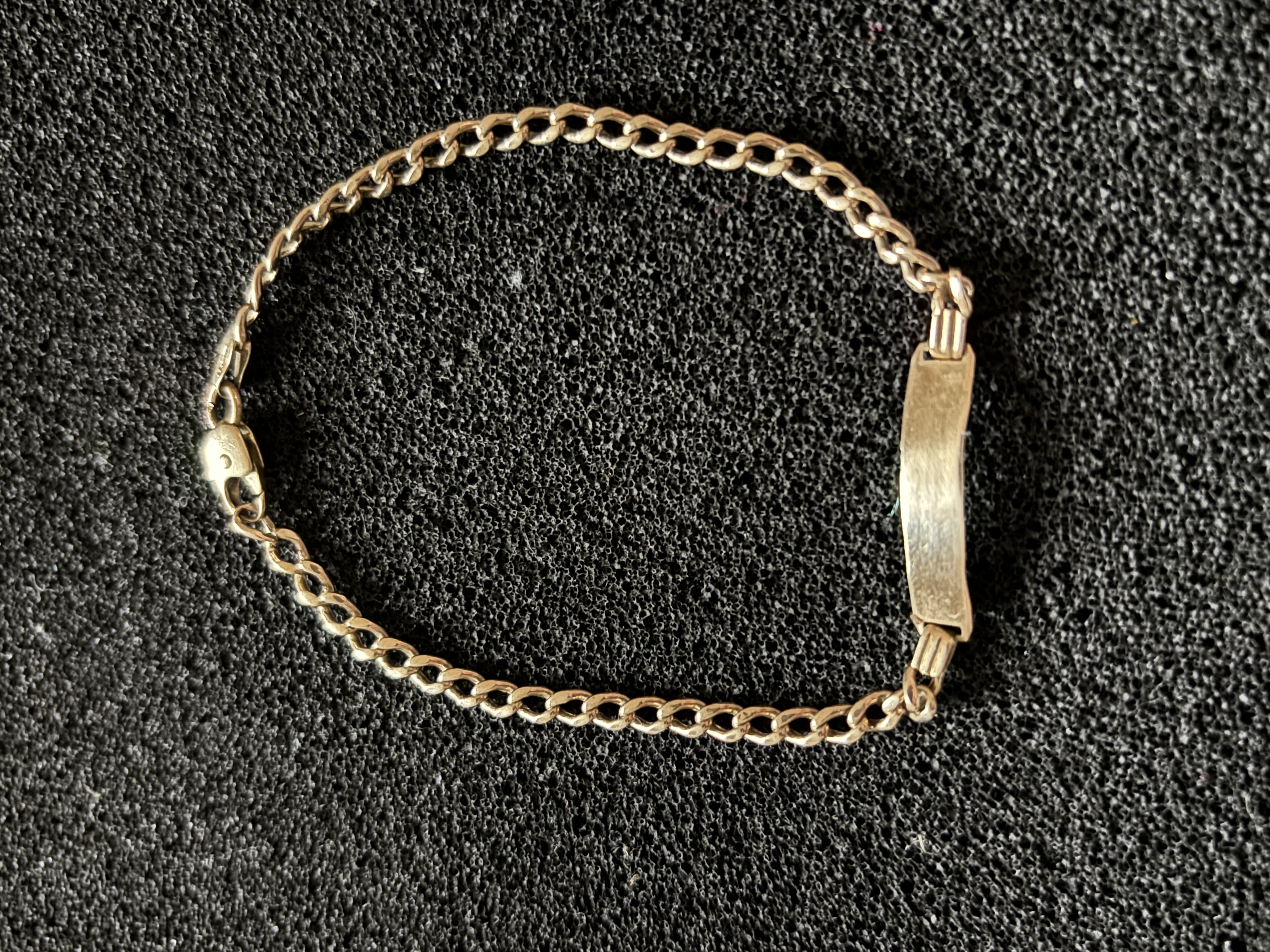 A delicate (child’s) 9ct gold identity bracelet measuring 19cm, weight 2.9 gm