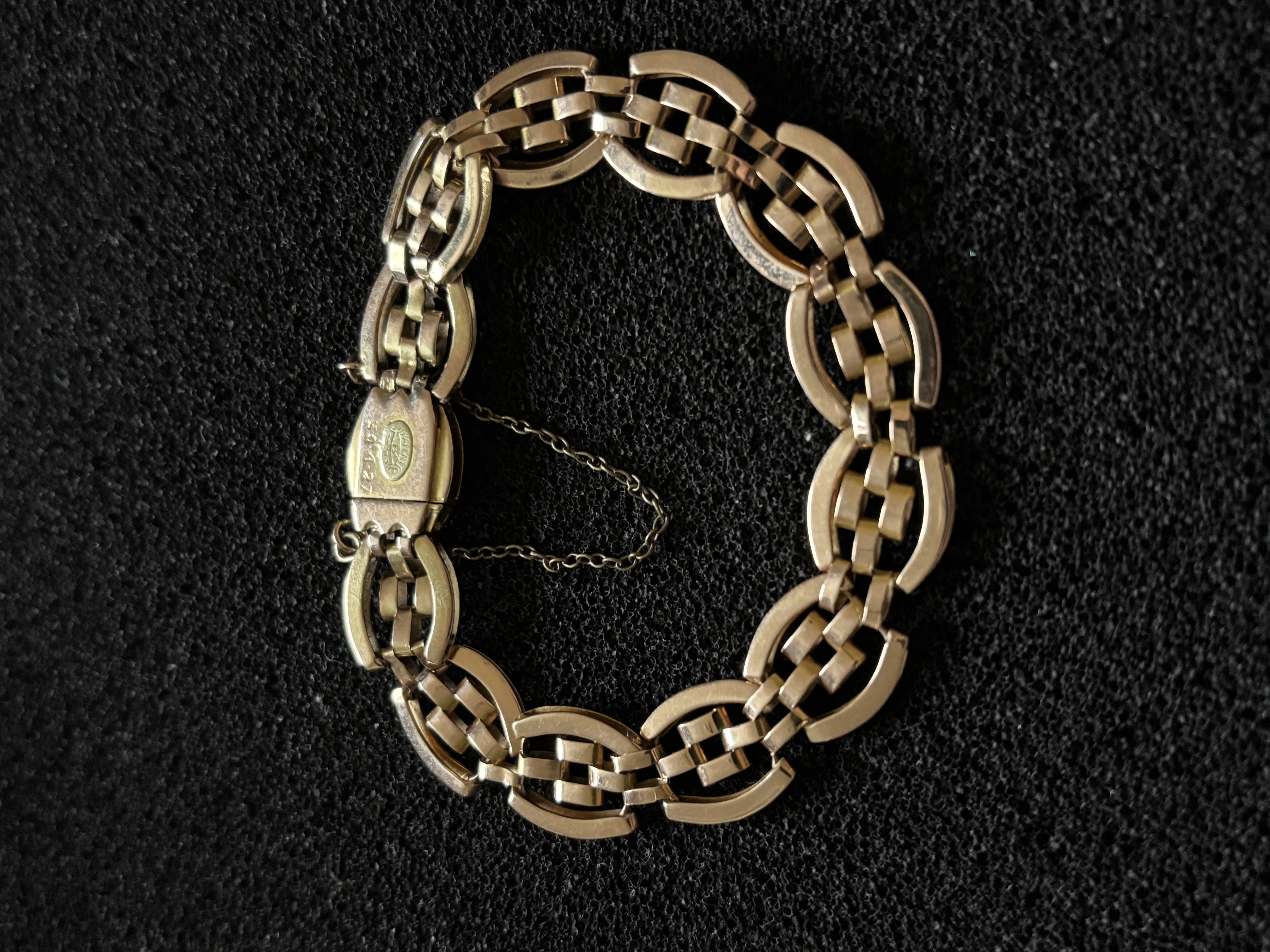 An early 20th century 15ct bracelet weighing 15.46 gm (engraved 1927 on reverse)