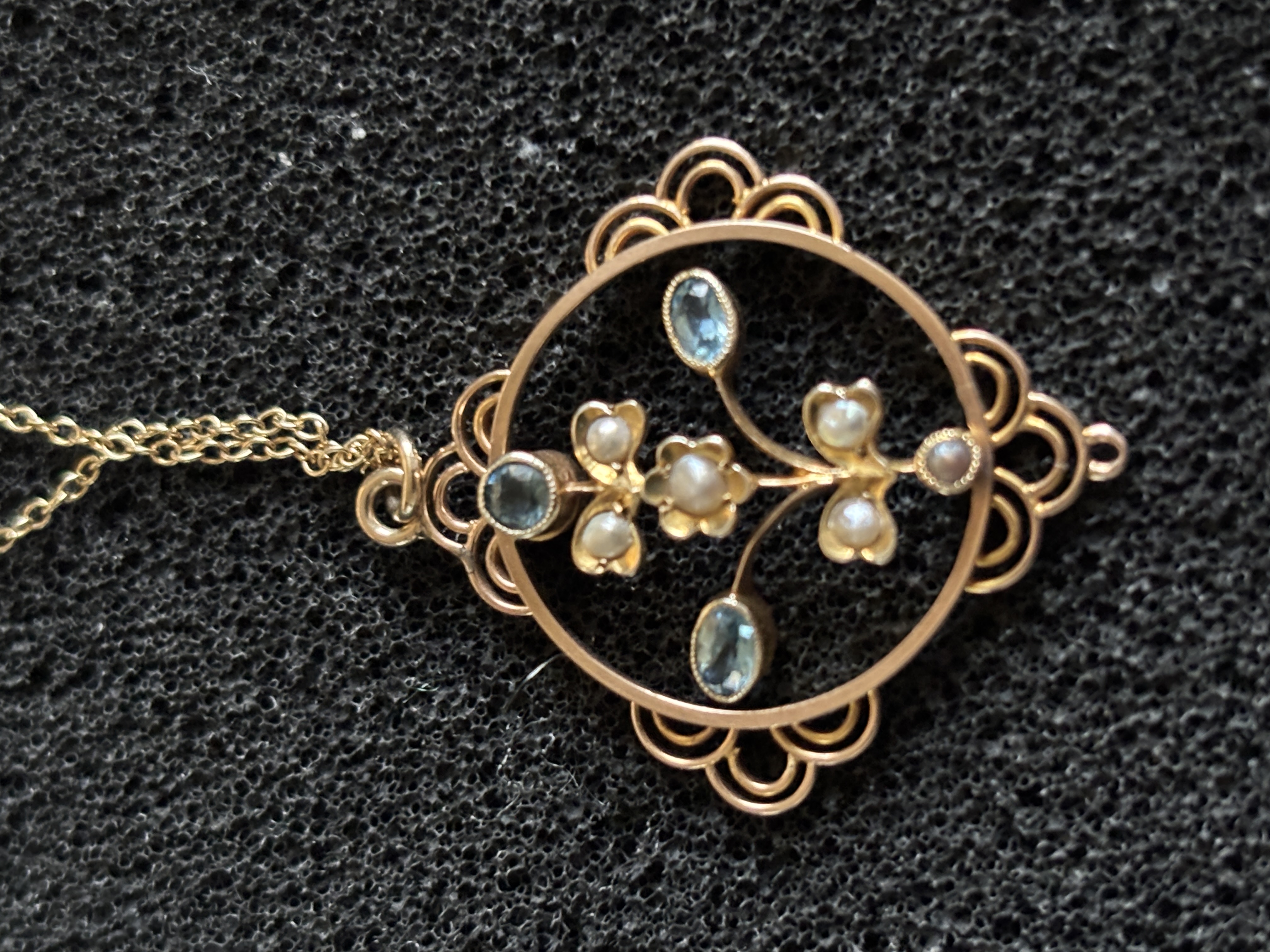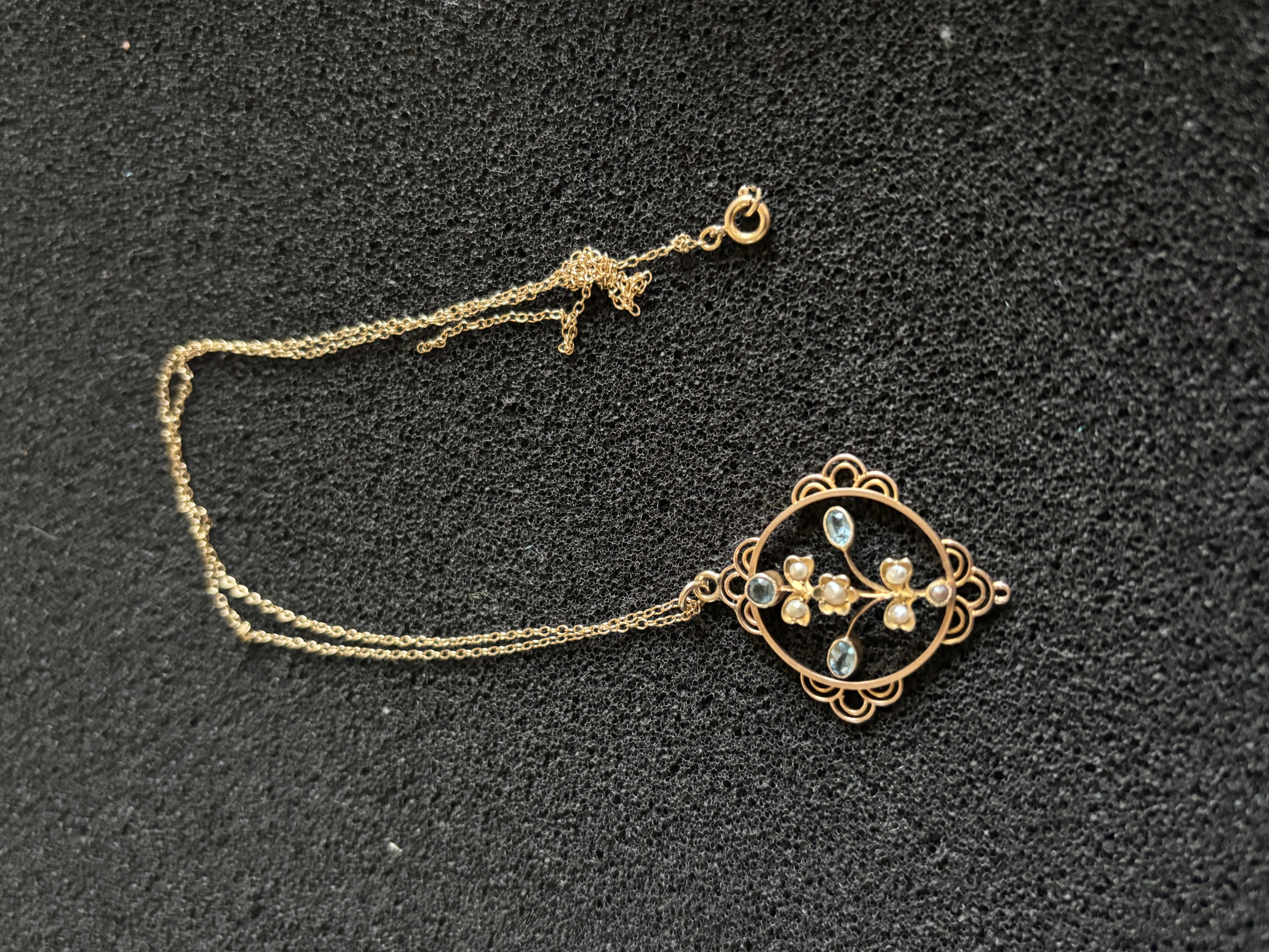 Second of two – an Edwardian gem set drop pendant with chain (needs re-attaching to the clasp) weighing 3.38 gm