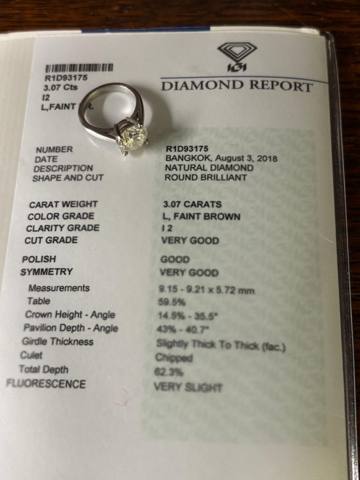 A natural diamond ring measuring 3.07 carat, marked 750 inside shank