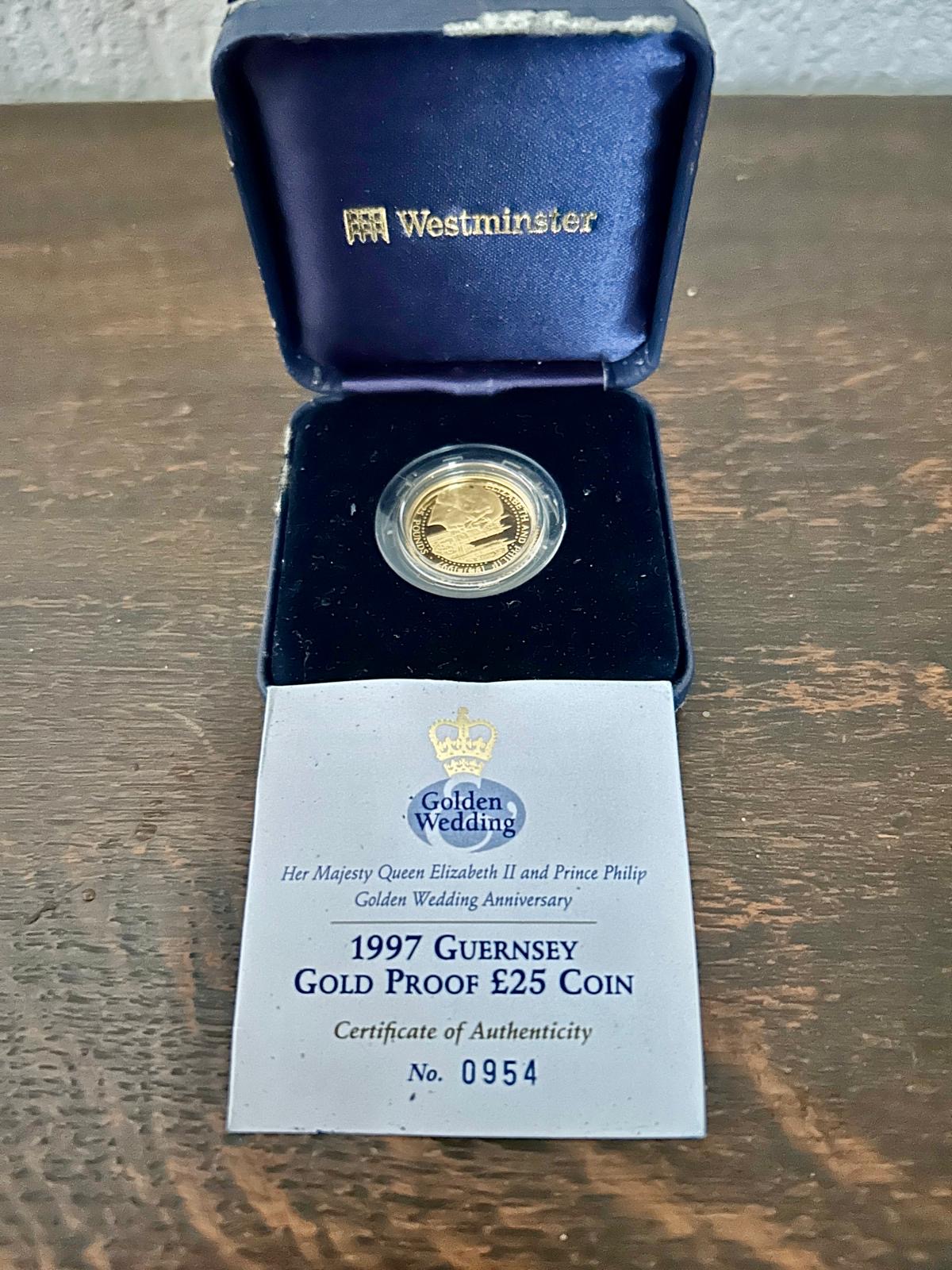 A 1997 Guernsey Gold Proof £25 coin (limited edition 0954/5000) 24 carat gold weighing 7.81 gm