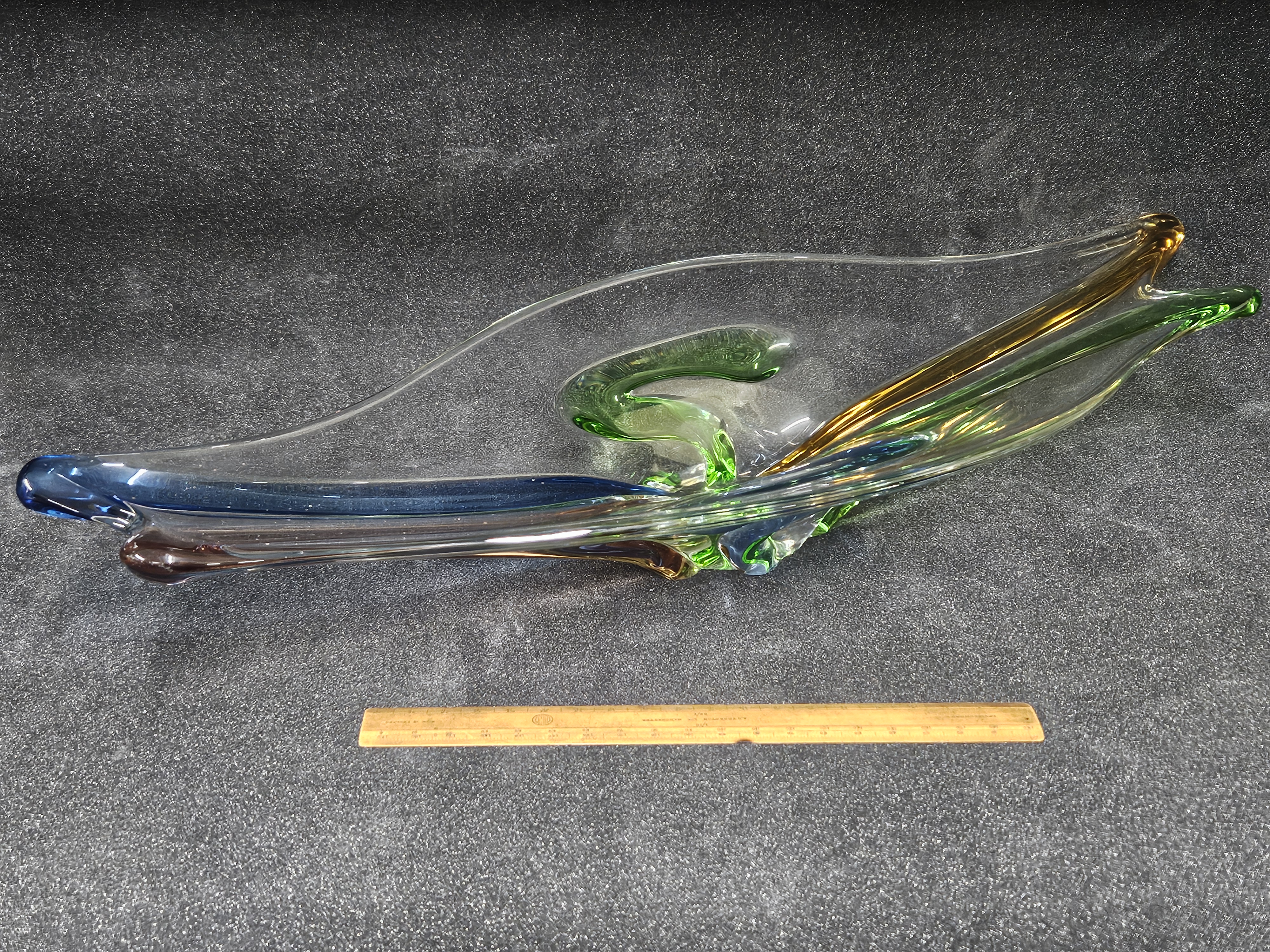 A 1960’s large art glass Frantisek Czechoslovakian dish, of multi colour shaped design, width 76cm