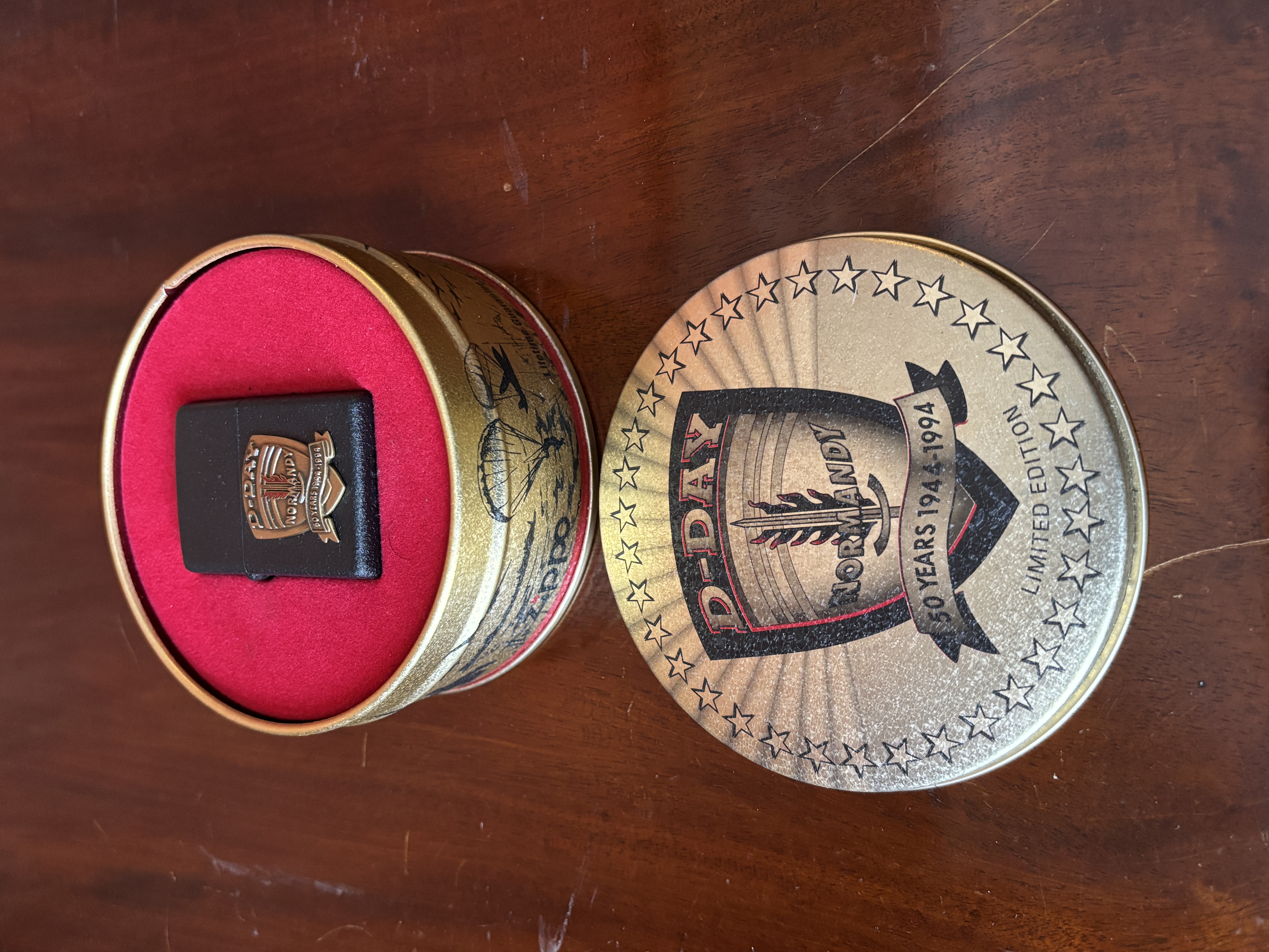 A Zippo Lighter in presentation tin commemorating the 50th Anniversary of D Day