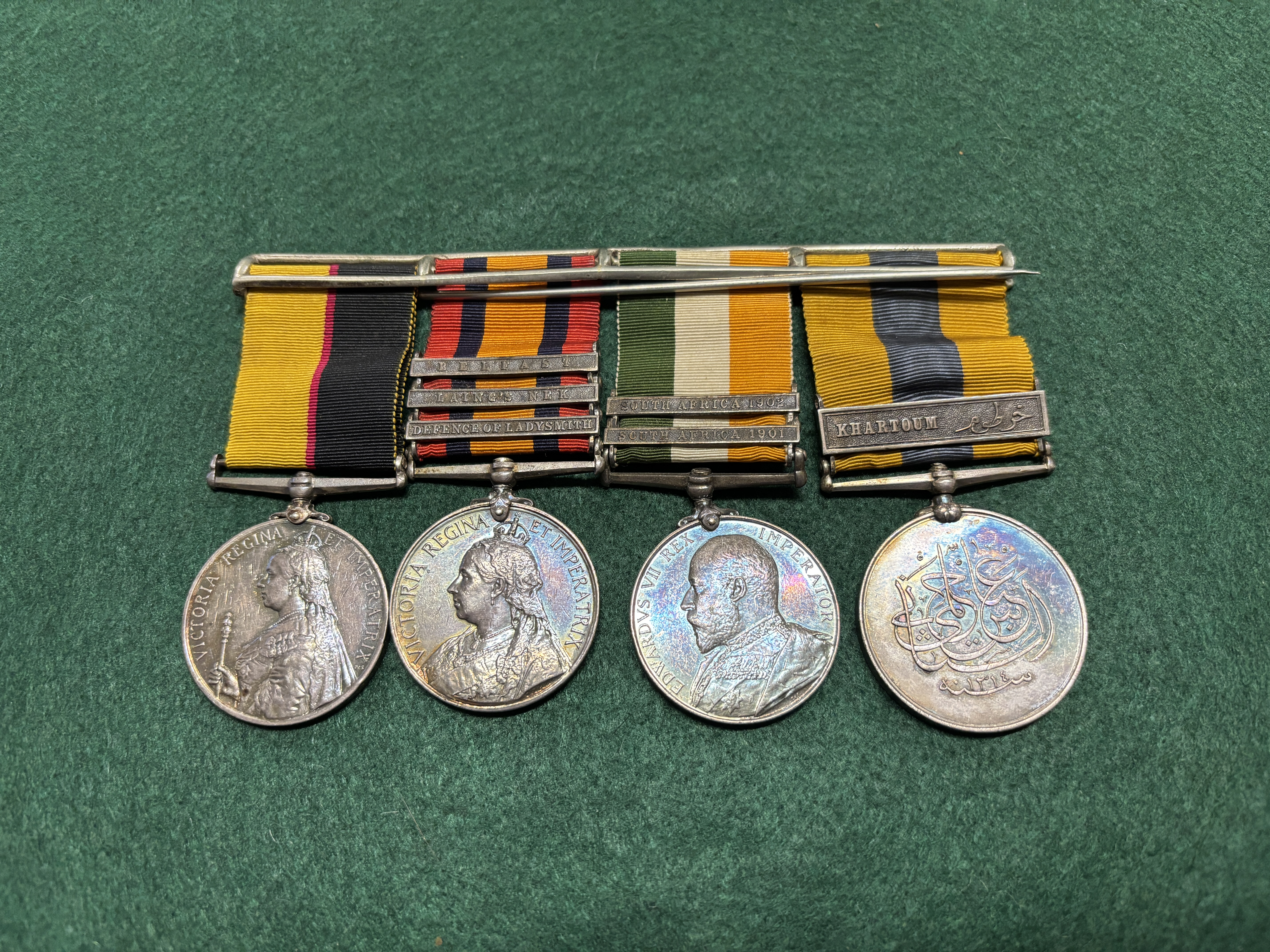 Four medals awarded to Private G W Perkins 4204 of the 2/Rifle Brigade – The Khedive Sudan Medal (1896-1908), Two Queen’s South Africa Medals (1899-1902) one with Queen Victoria the other with King Edward VII and the Queen’s Sudan Medal.