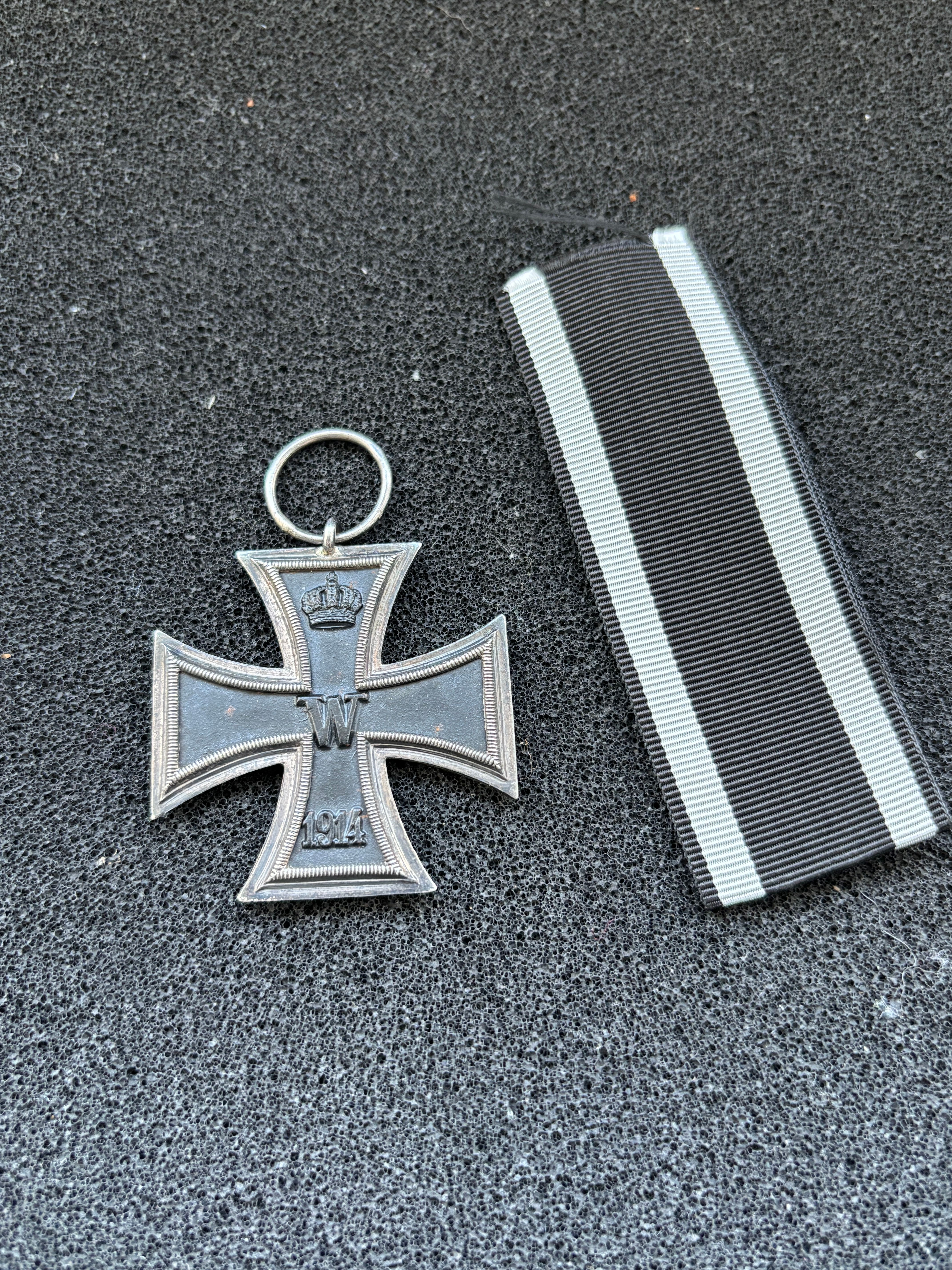 A WWI 2nd class Iron Cross marked G (Godet & Co, Berlin) with replacement ribbon (third picture shows magnet stuck to it)