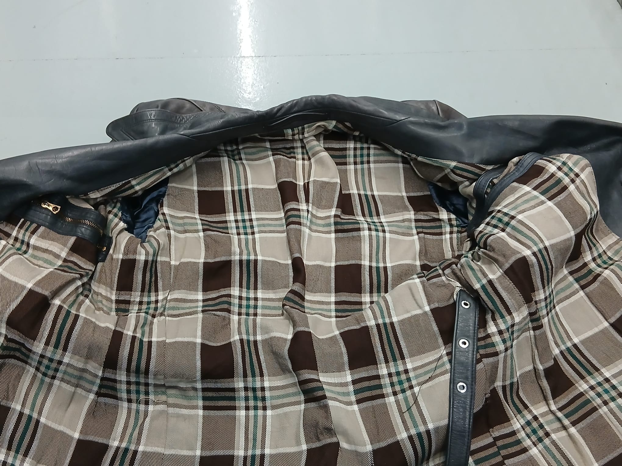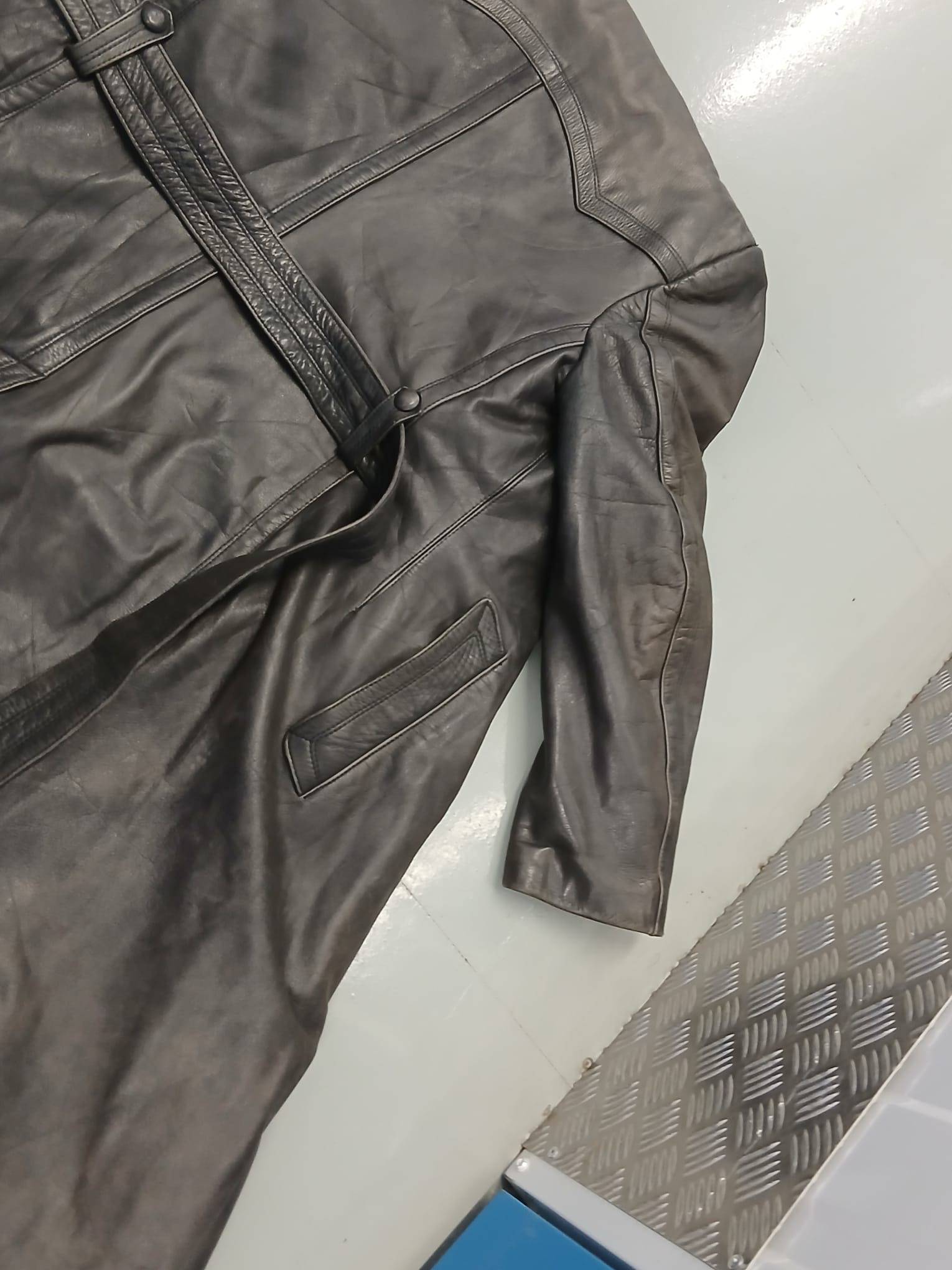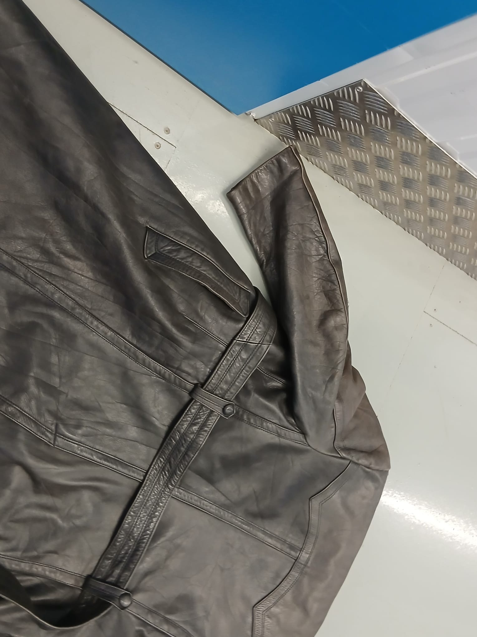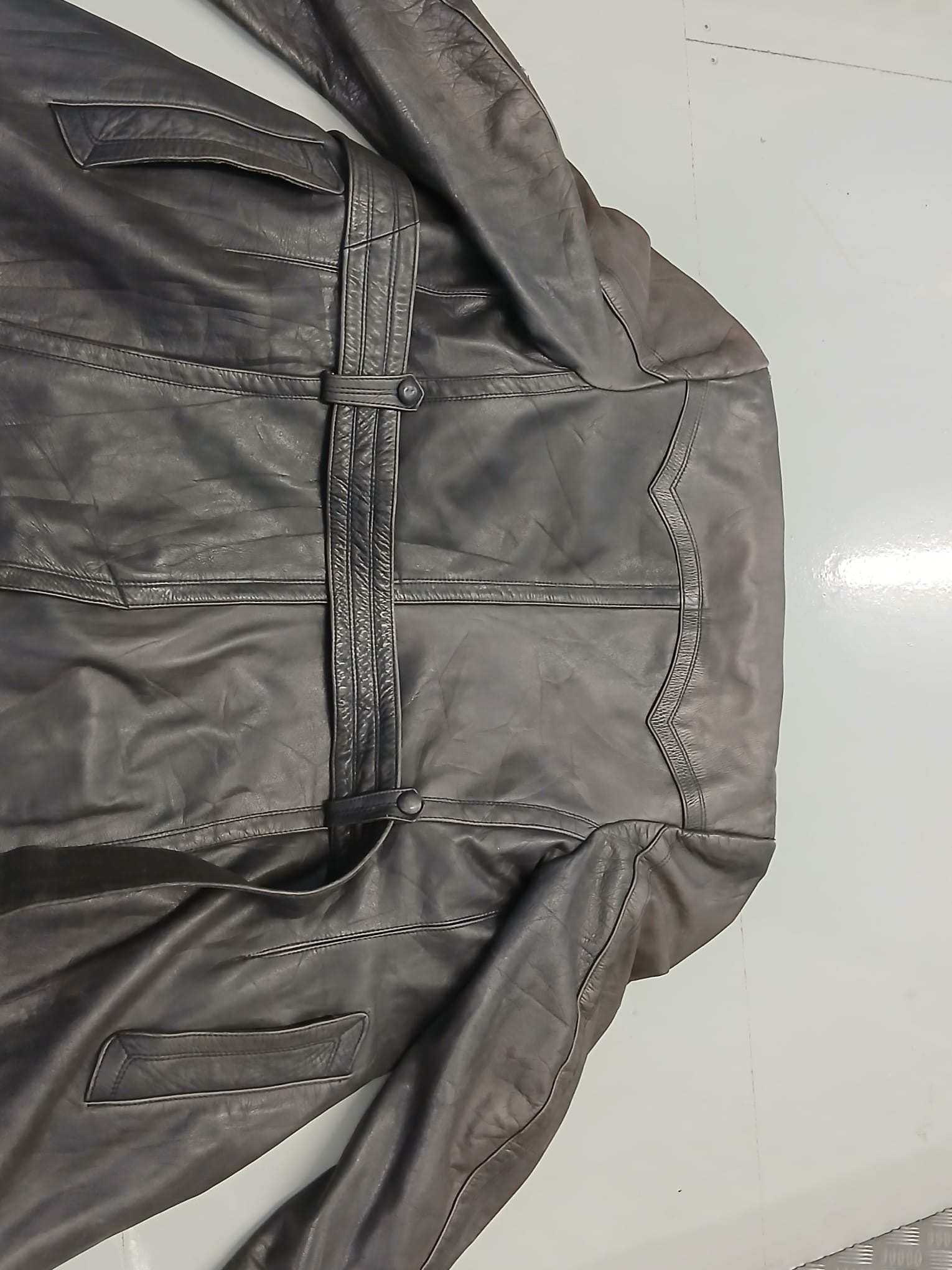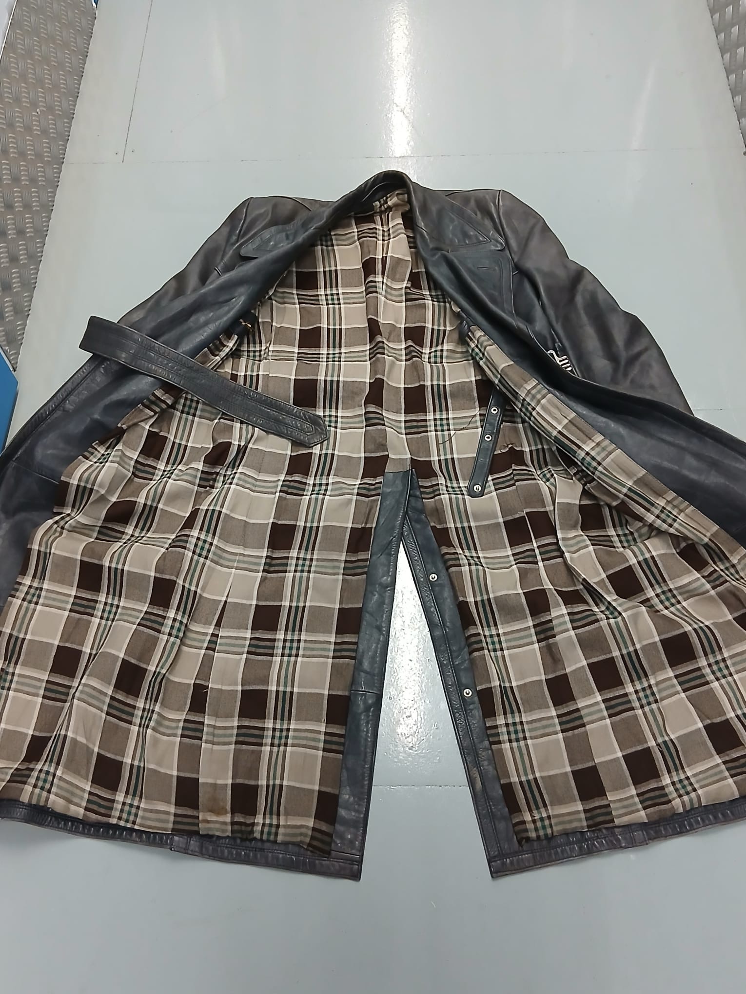 A WWII Leather Trench Coat, no identifying labels but usually for officers or Civil Servants.