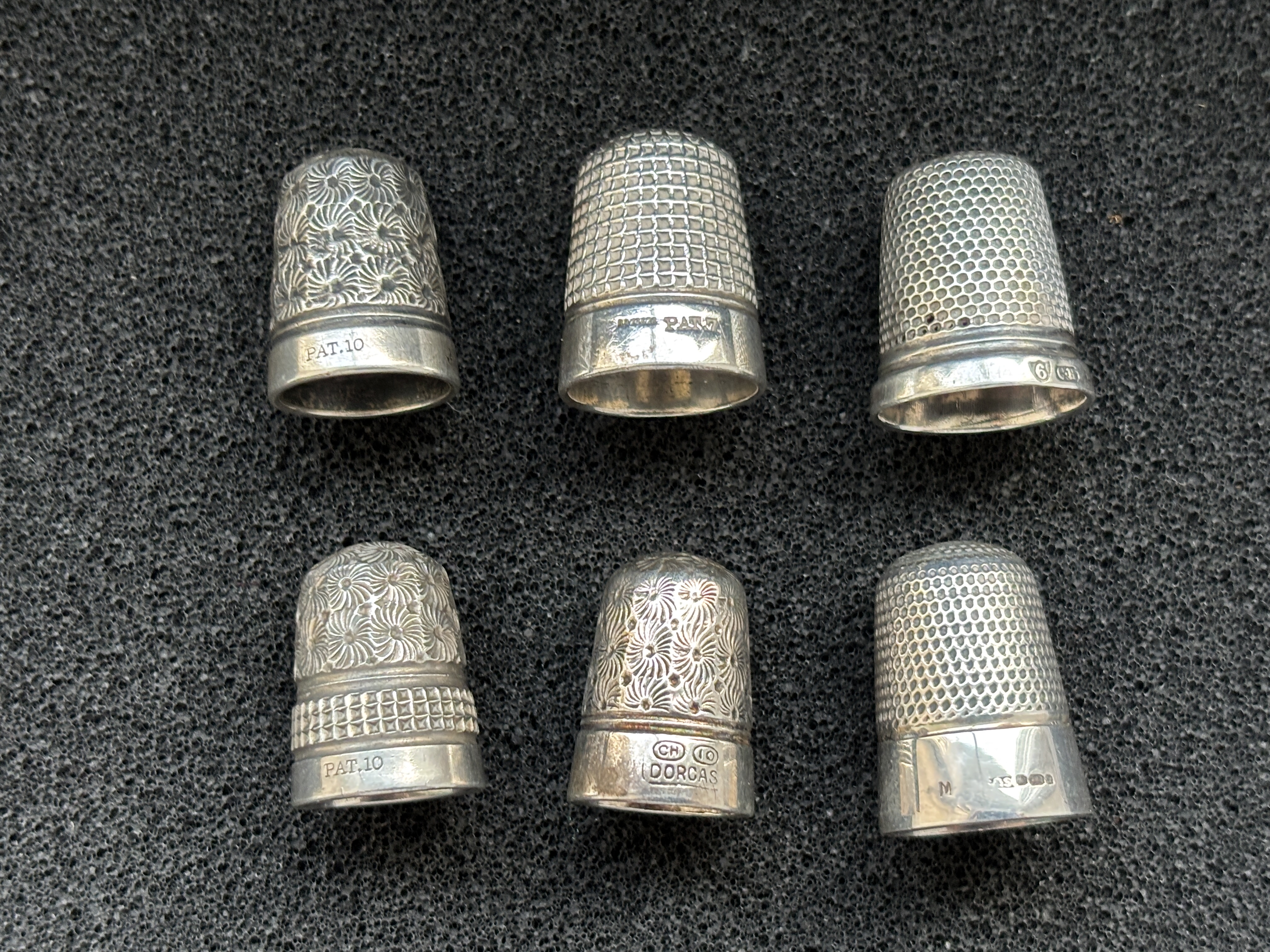 A collection of six silver thimbles weighing 44 gm (tested)