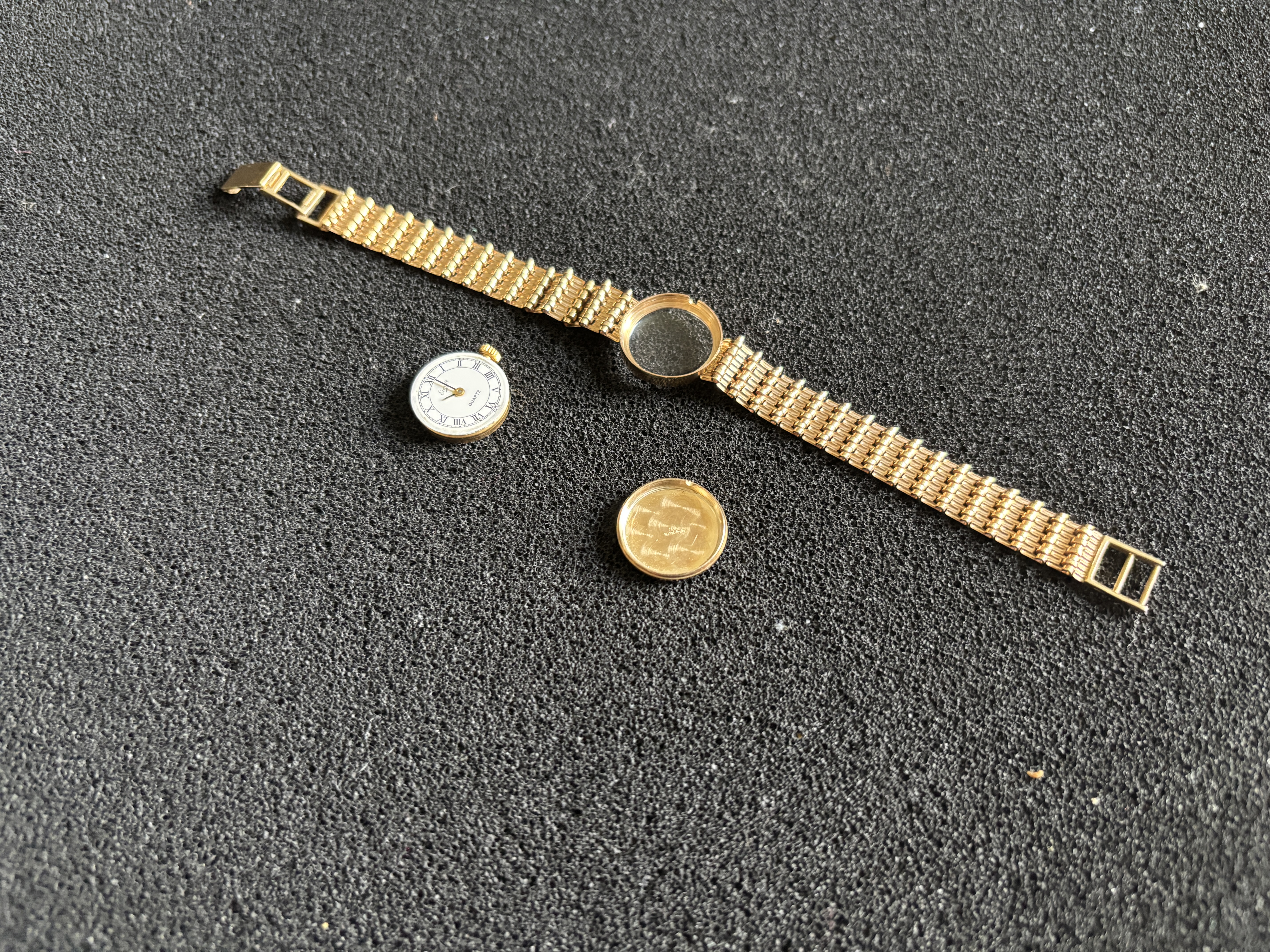 An Everite 9ct gold ladies wristwatch weighing 14 gm (excluding movement)