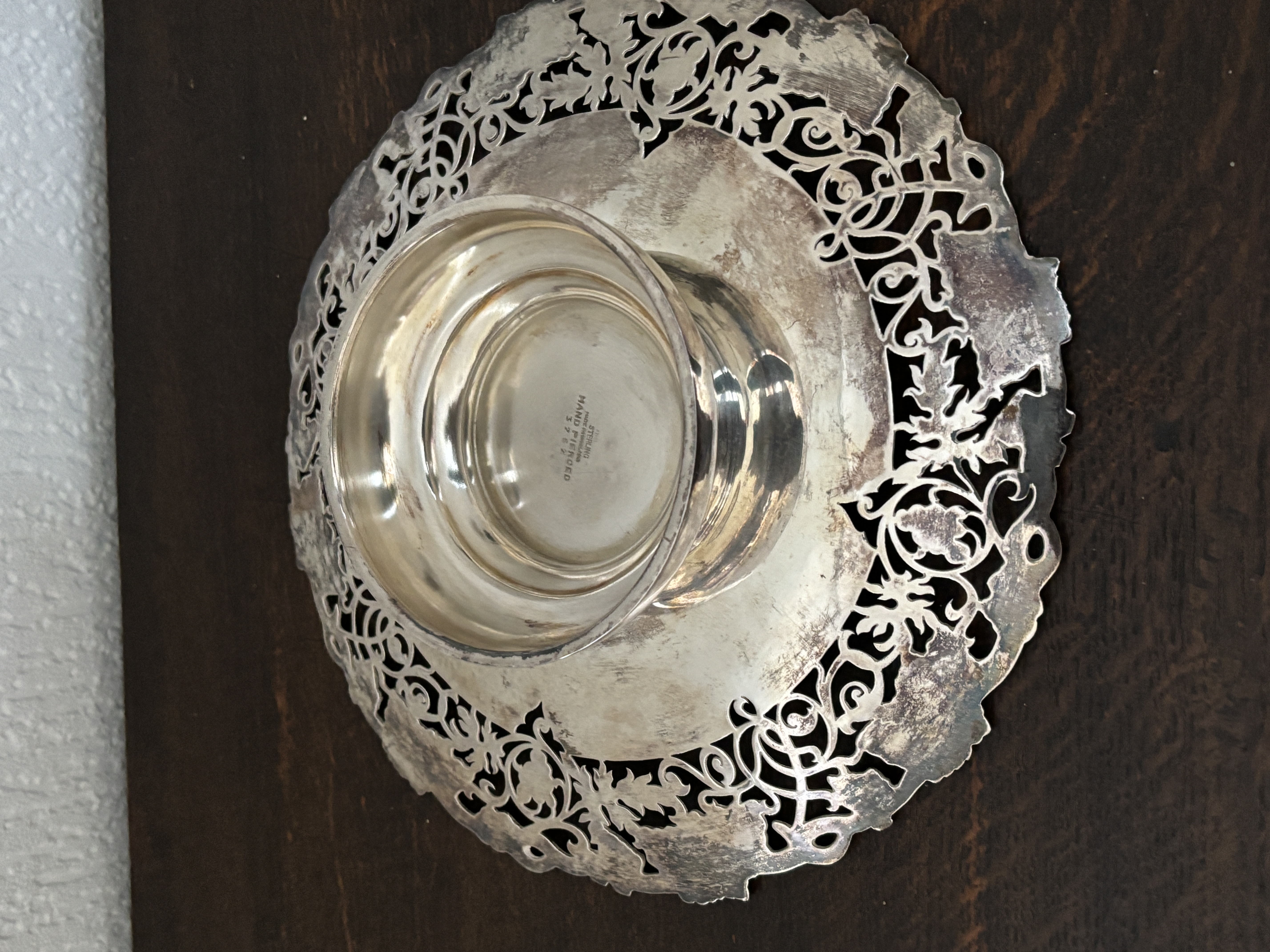 A HM Silver tray measuring 22 cm diameter weighing 464 gm