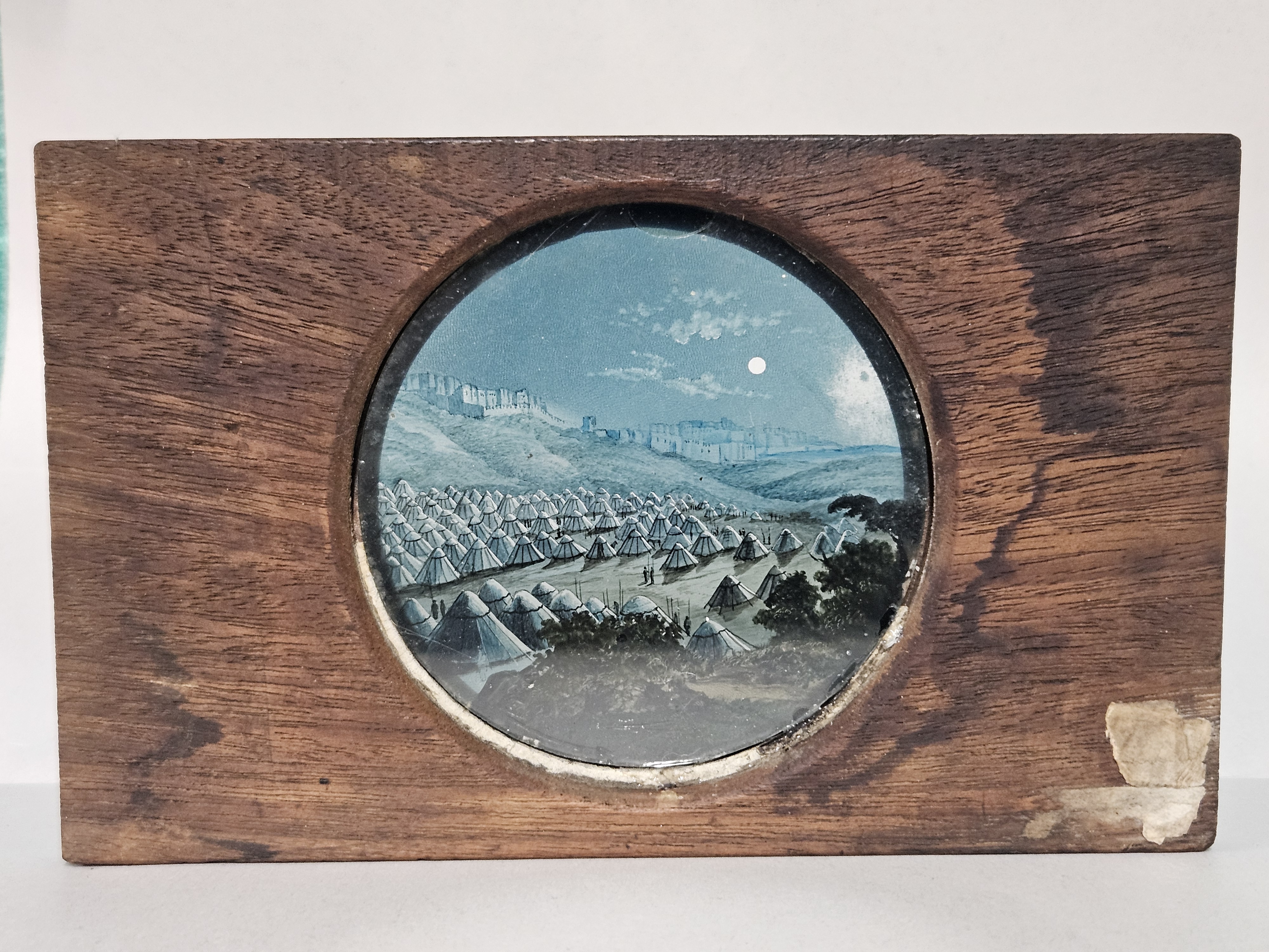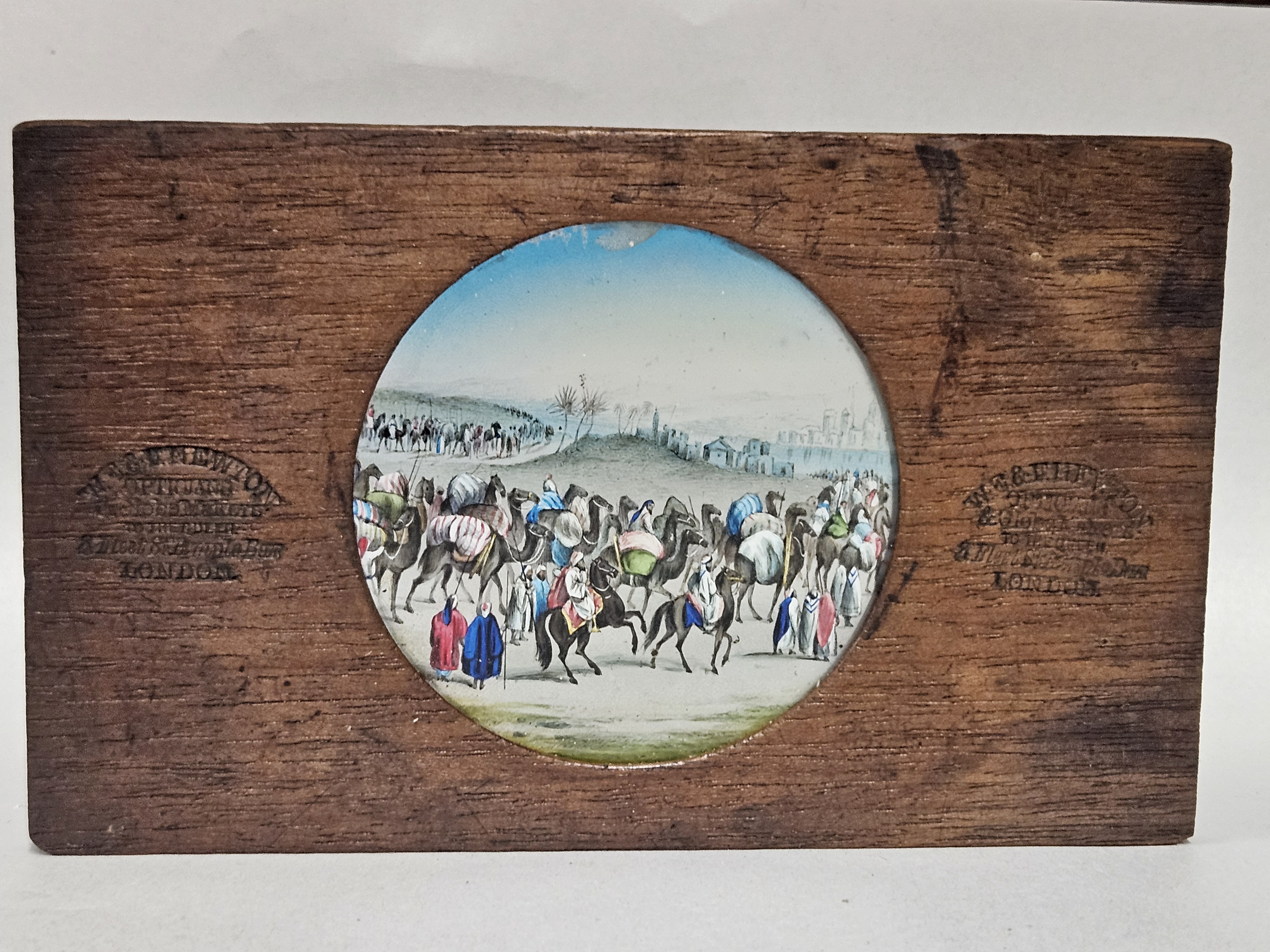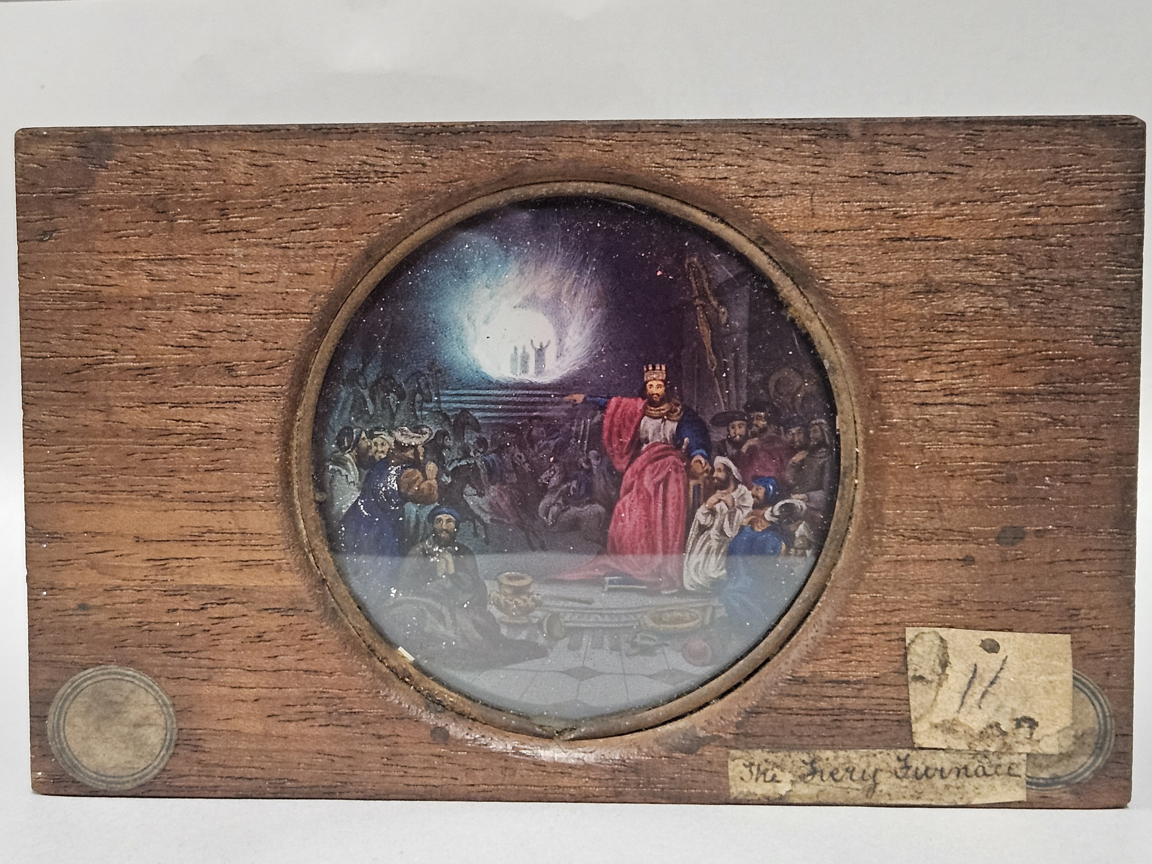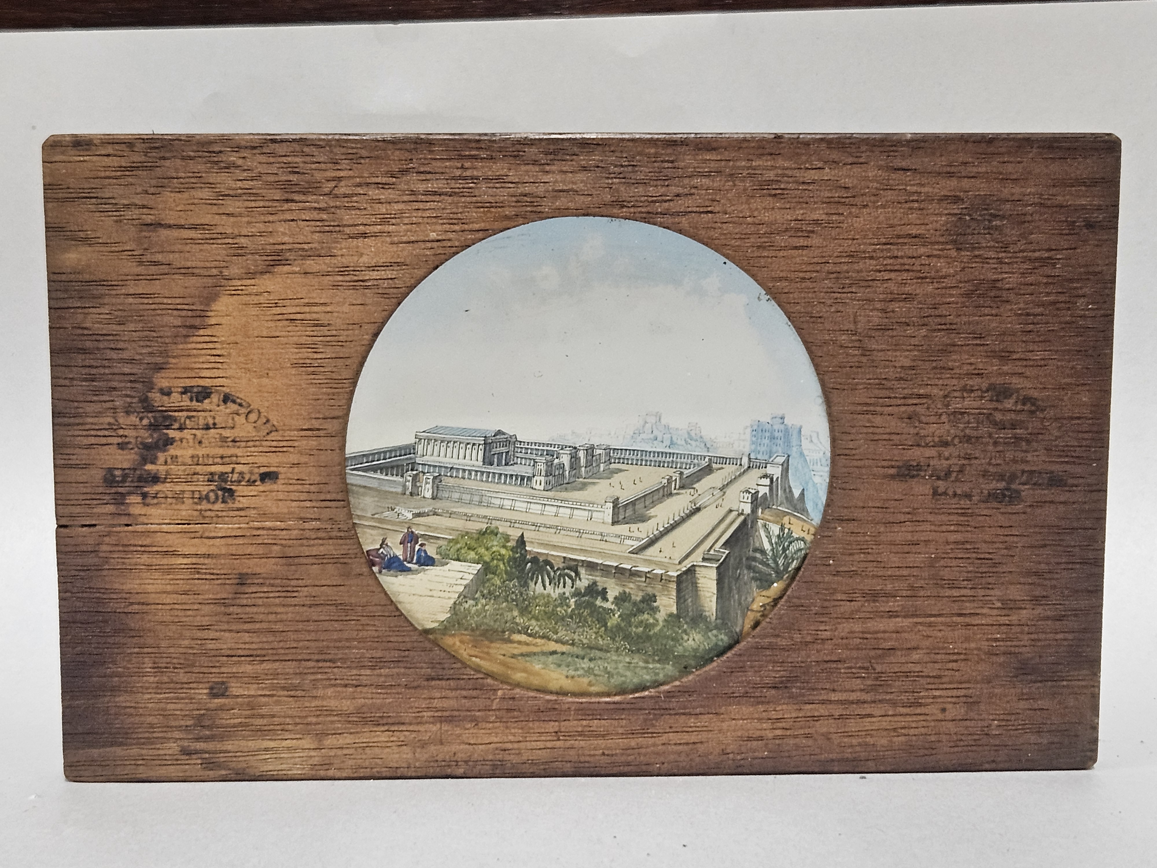 A set of fourteen 19th century, lantern slide, in wood mounts, various, including map of Asia, Solomon’s temple etc, by Newton London