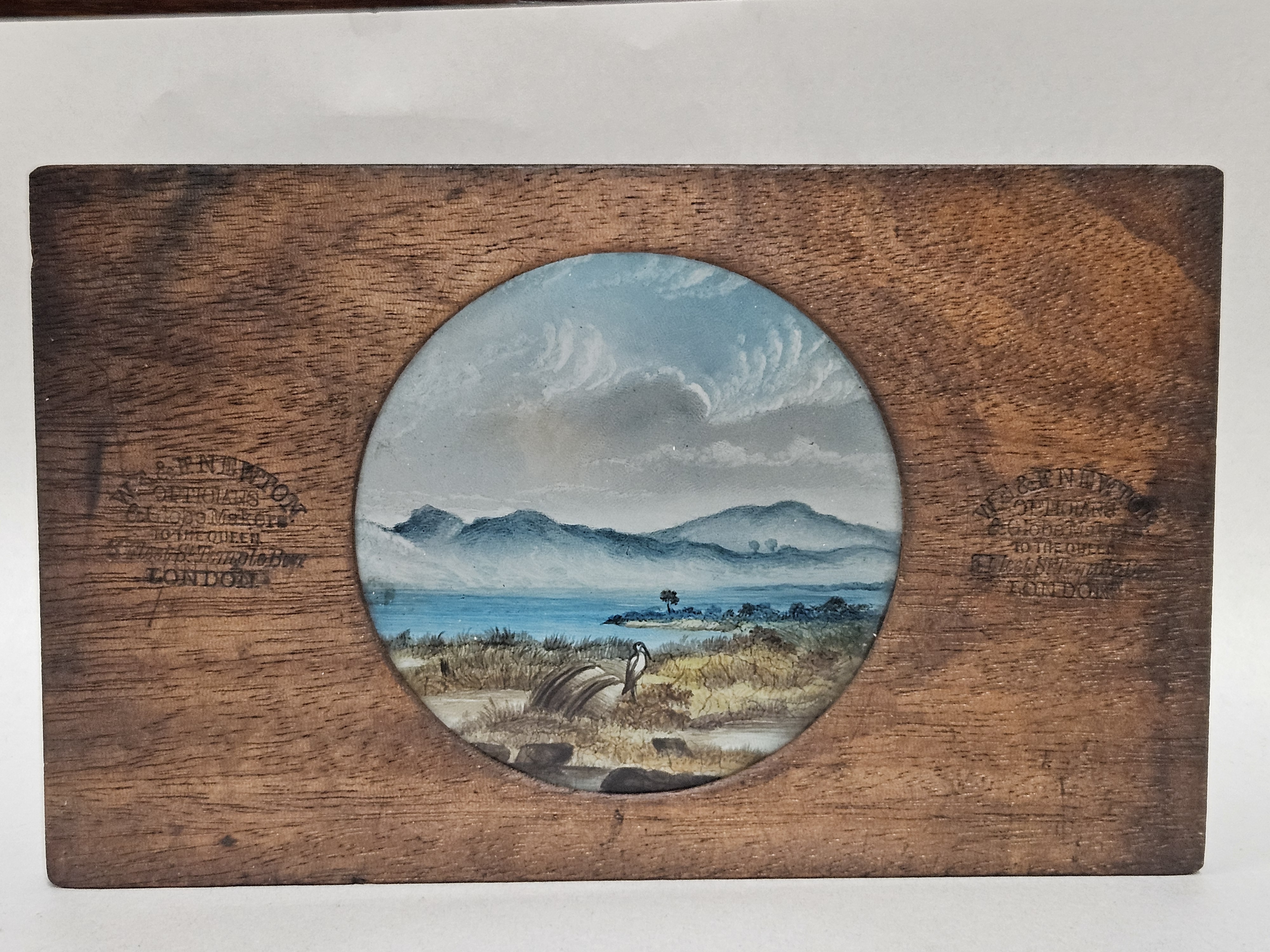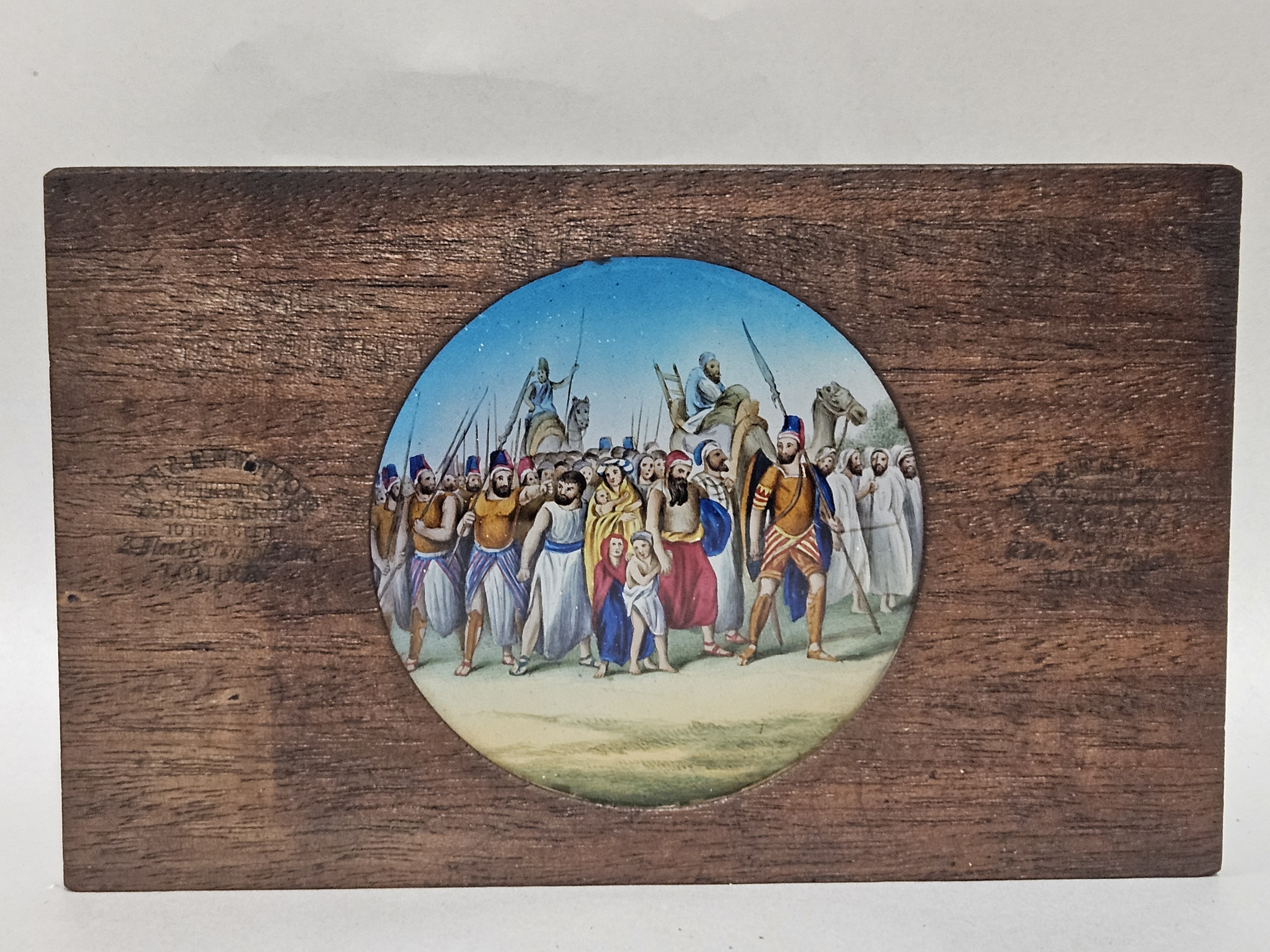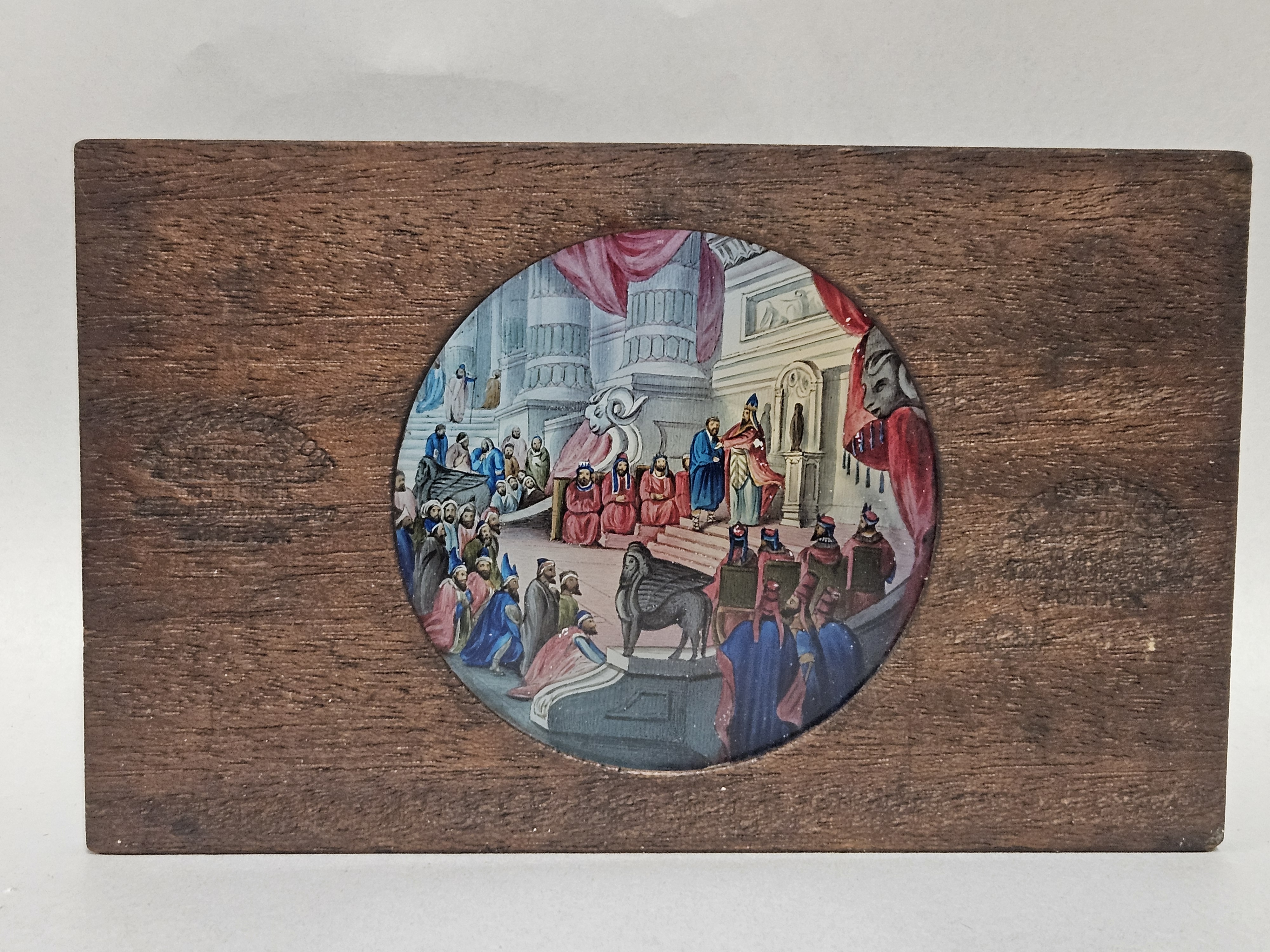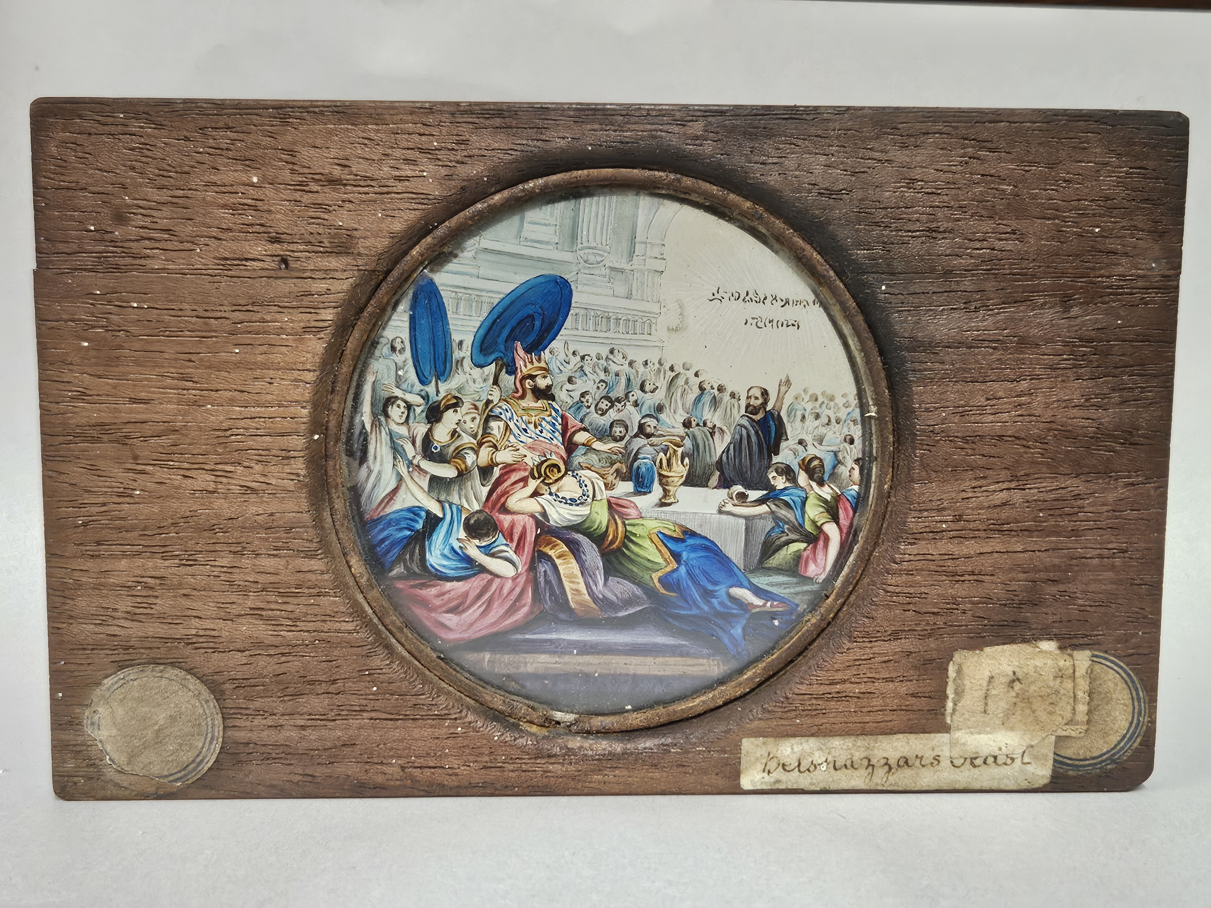 A set of fourteen 19th century, lantern slide, in wood mounts, various, including map of Asia, Solomon’s temple etc, by Newton London
