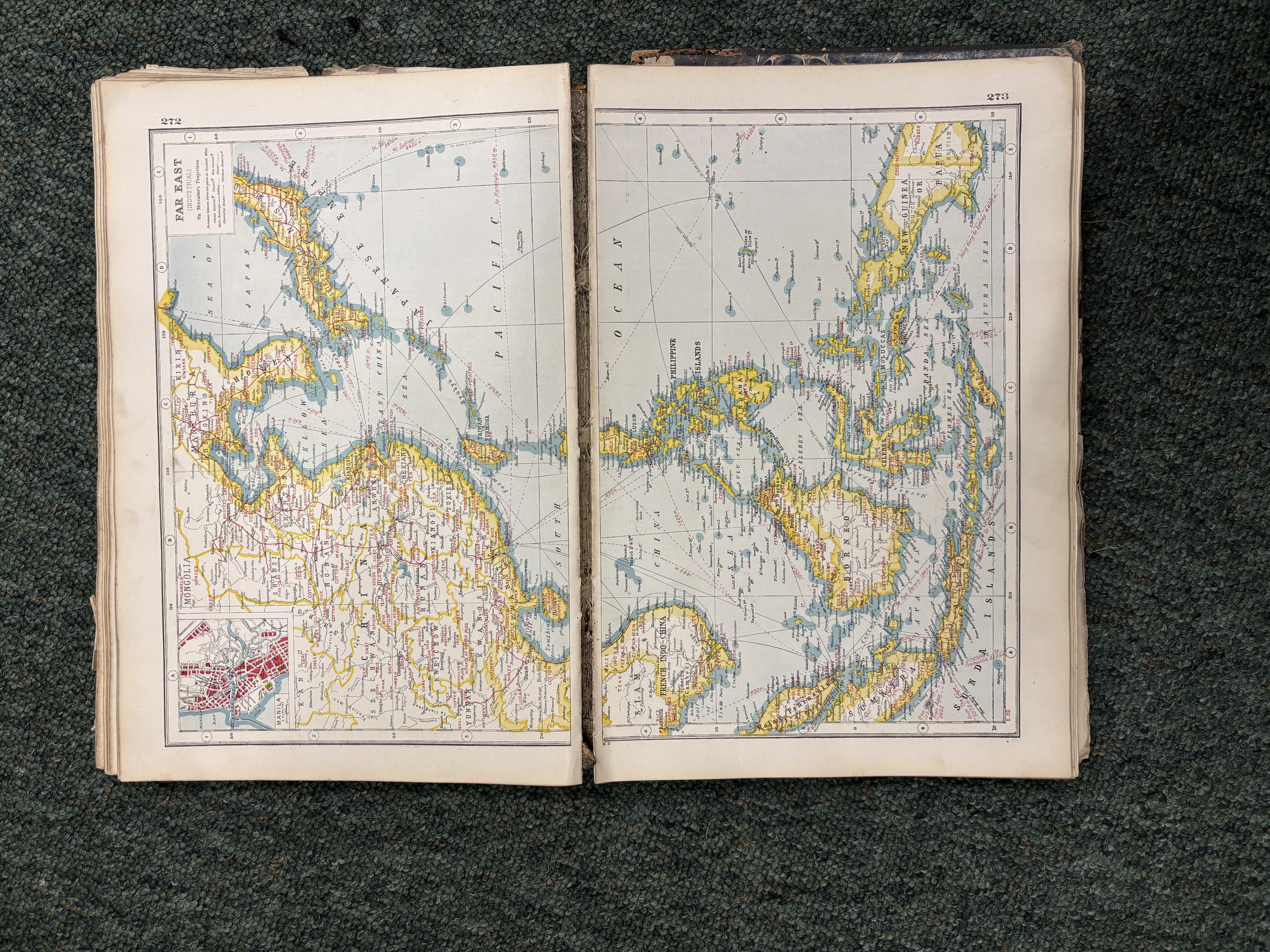 A volume of interest, Harmsworth’s Atlas of the World, and a King Albert’s Book