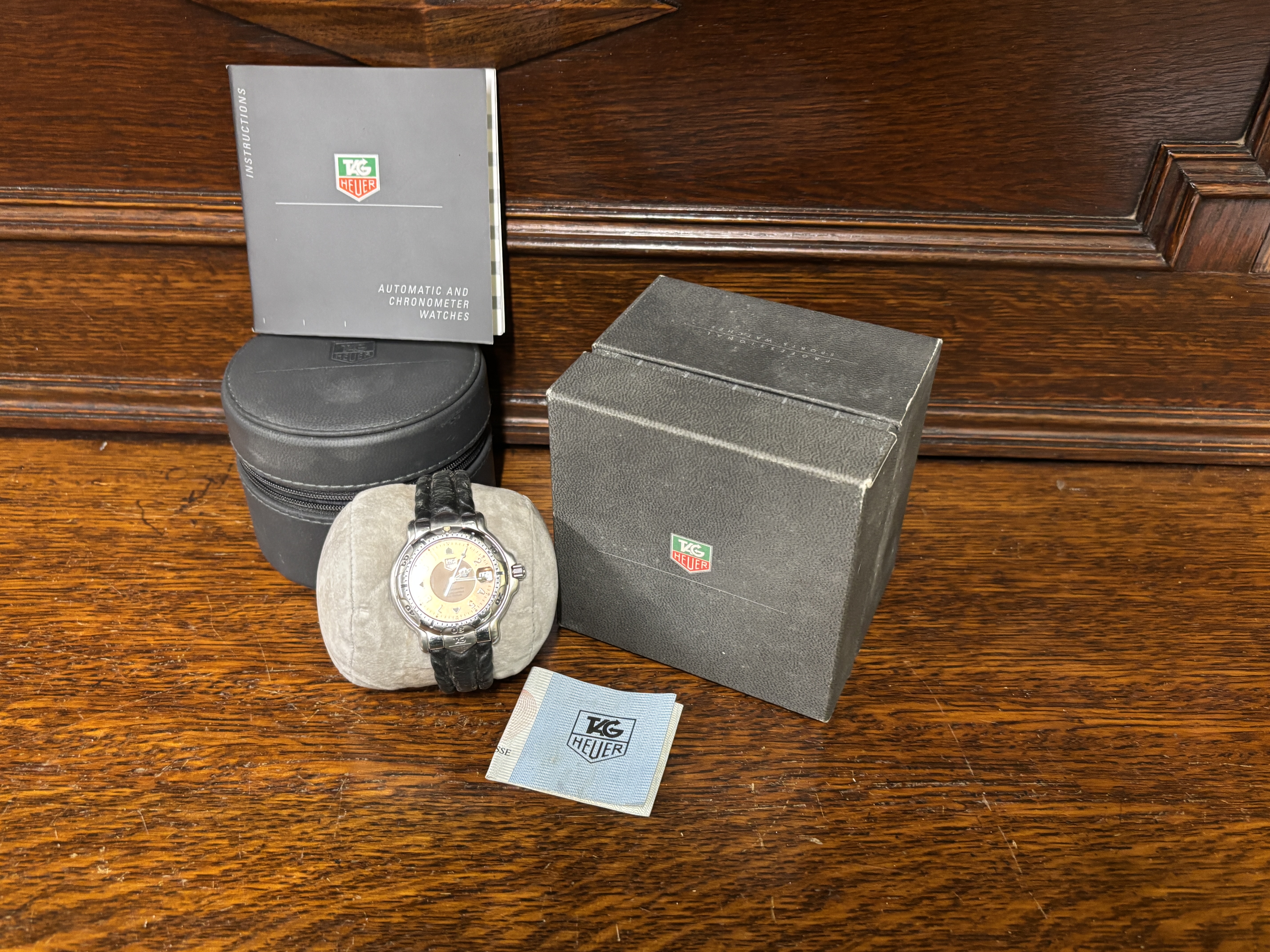 A vintage Tag Heuer wristwatch with box and paperwork