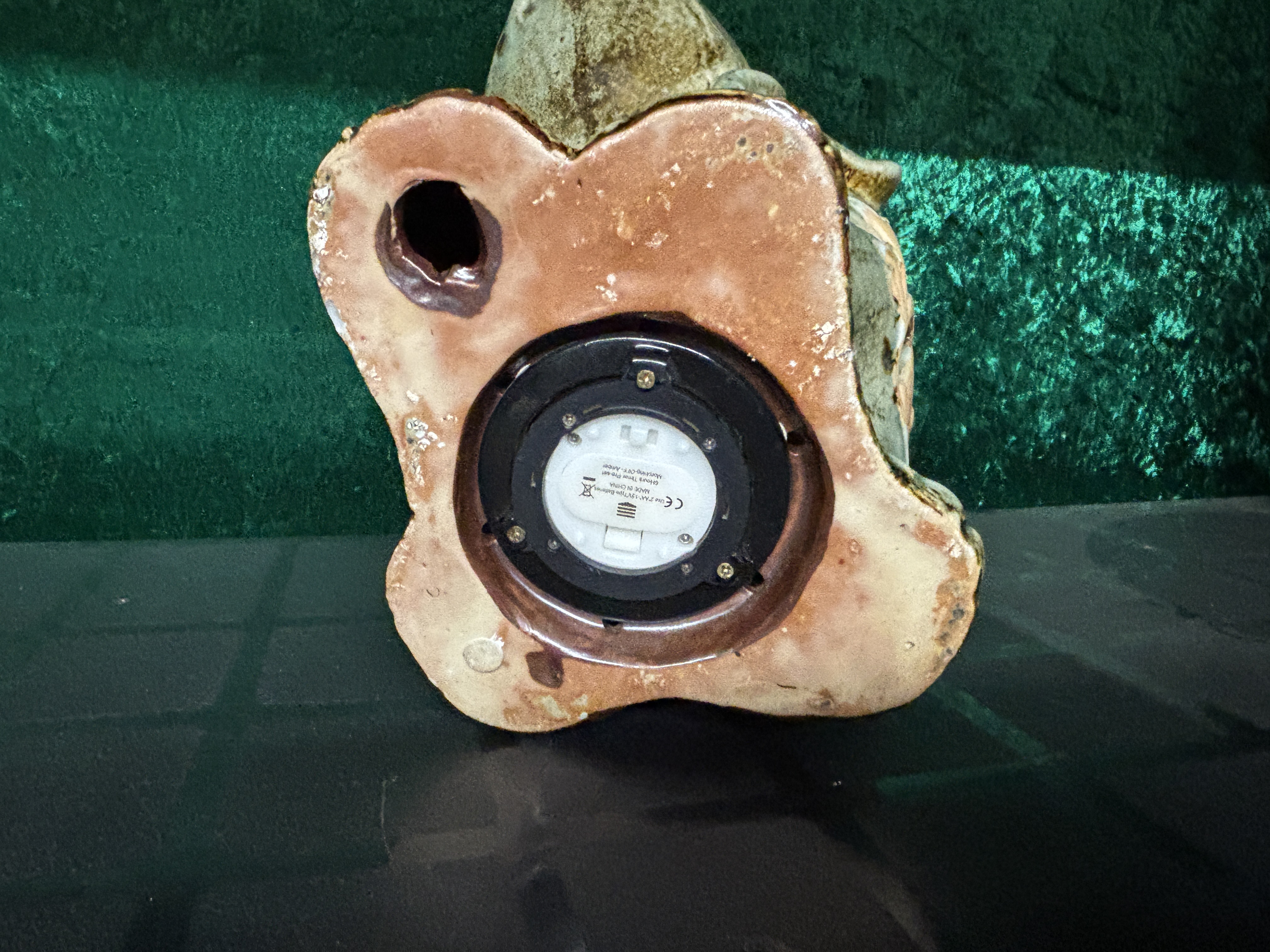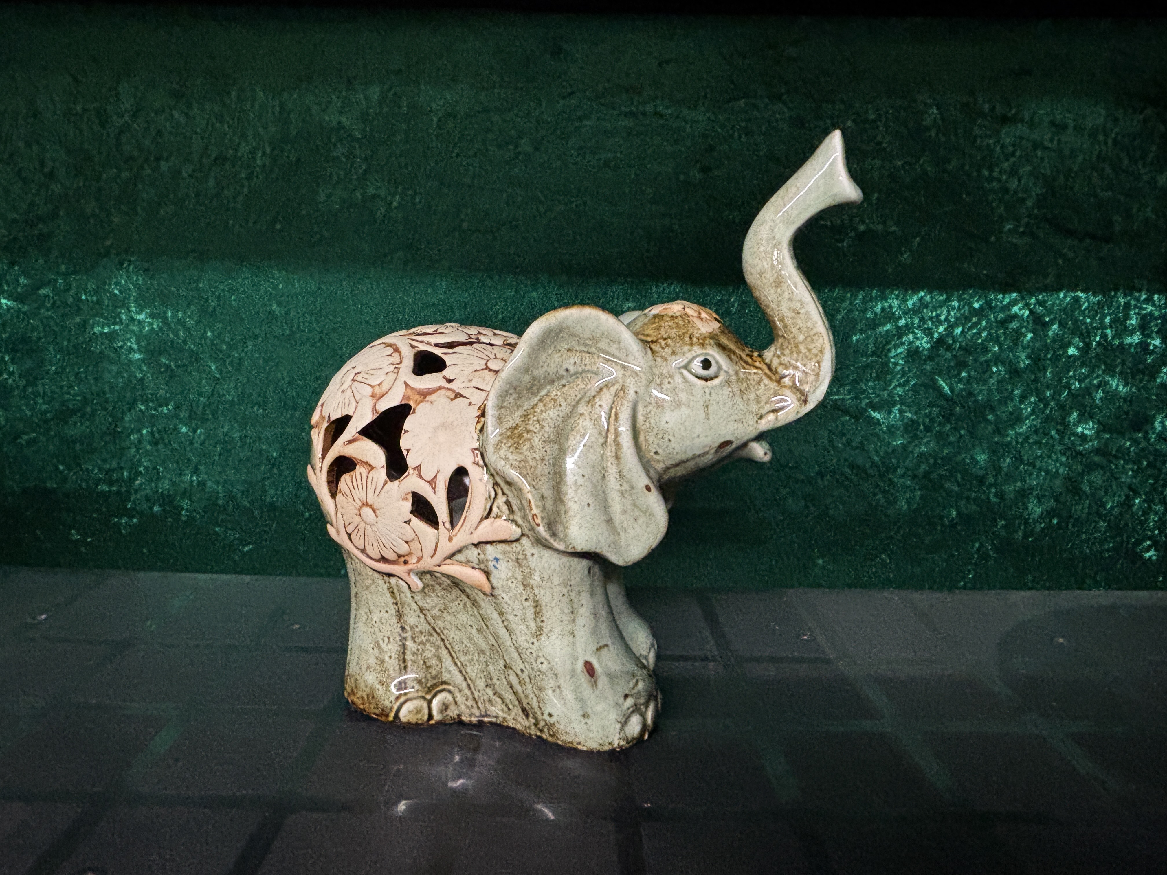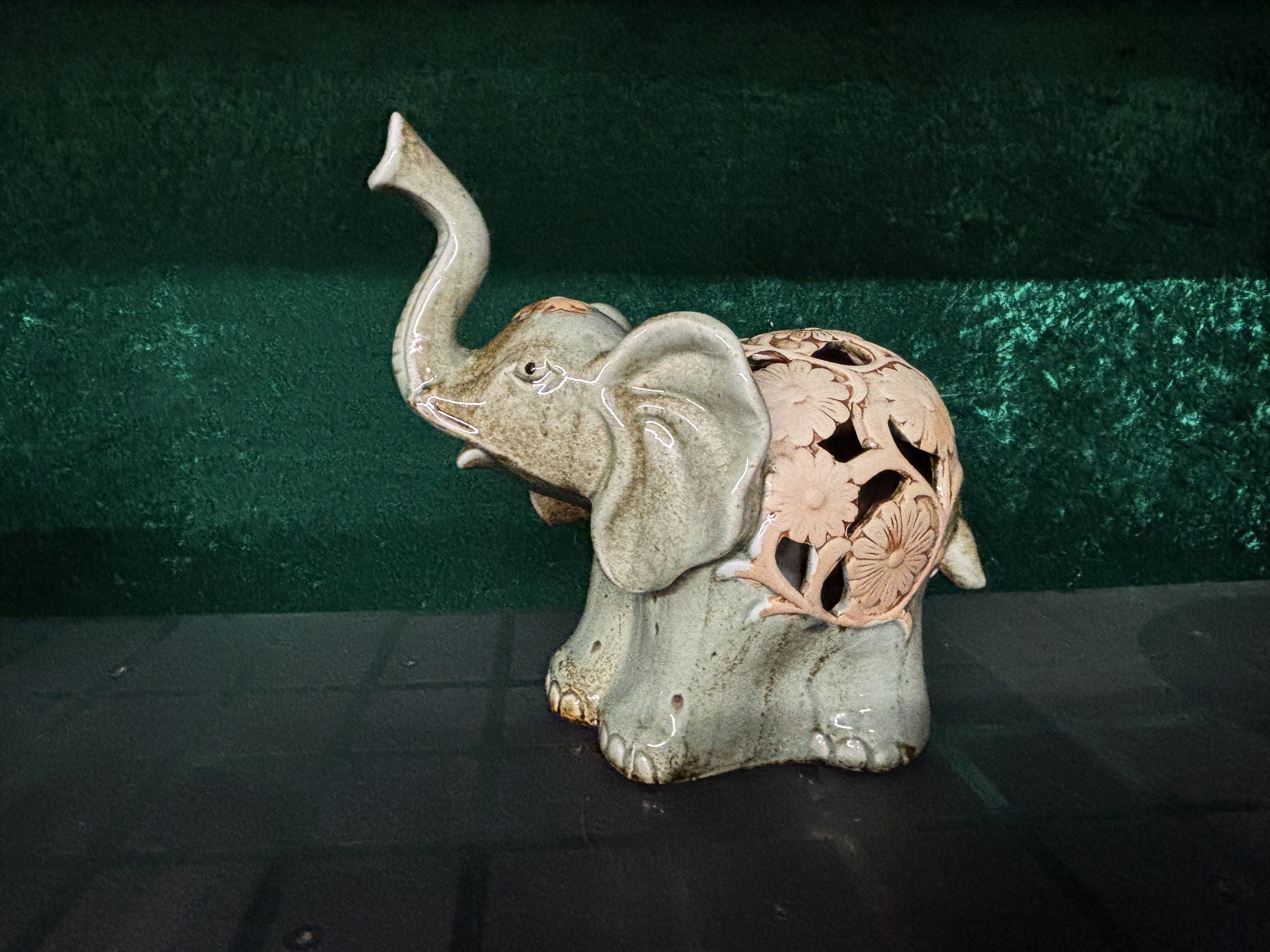 A ceramic elephant with internal battery operated candle...
