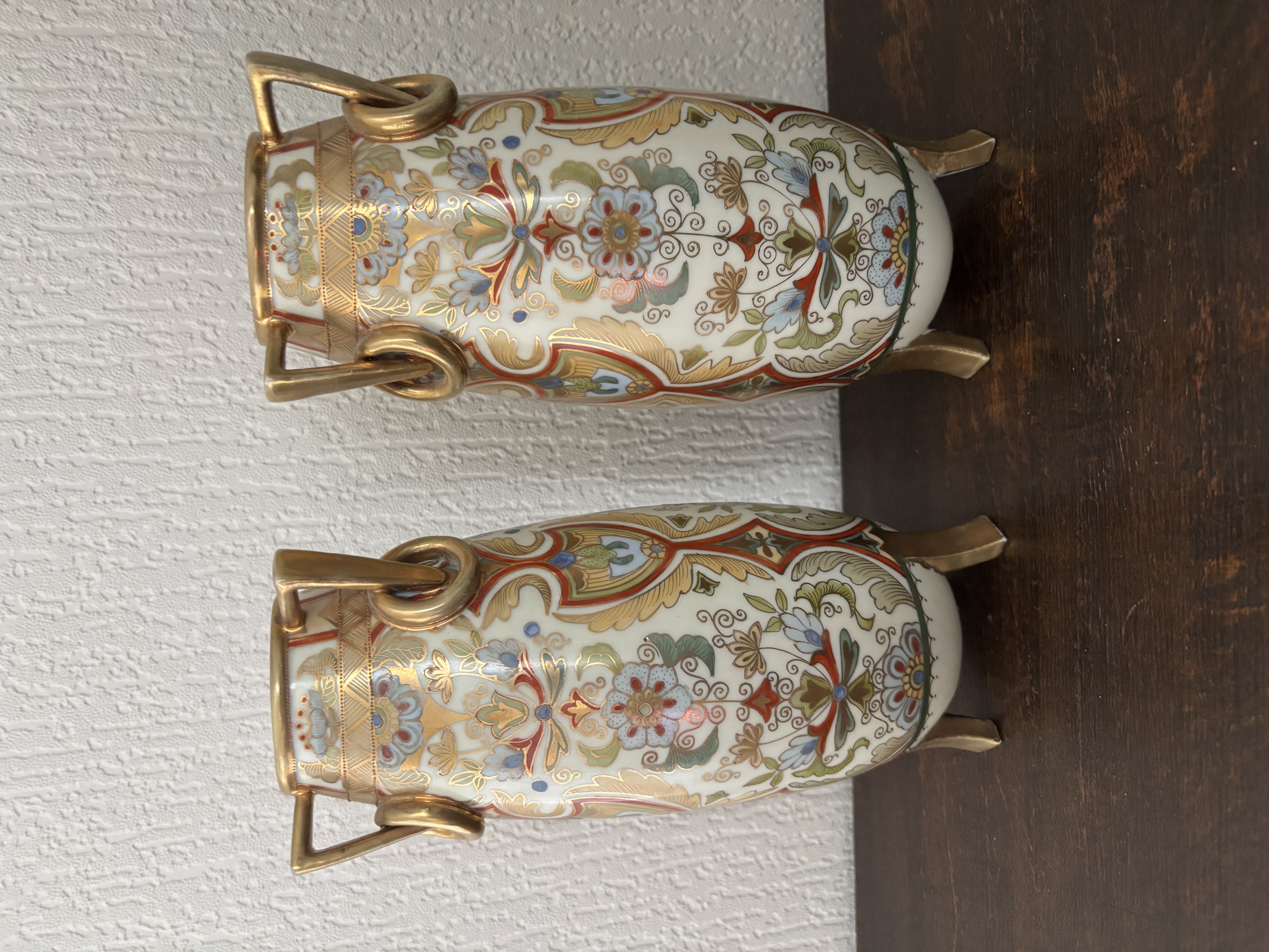 A pair of Japanese Noritake Amphora shaped vases measuring 25 cm tall