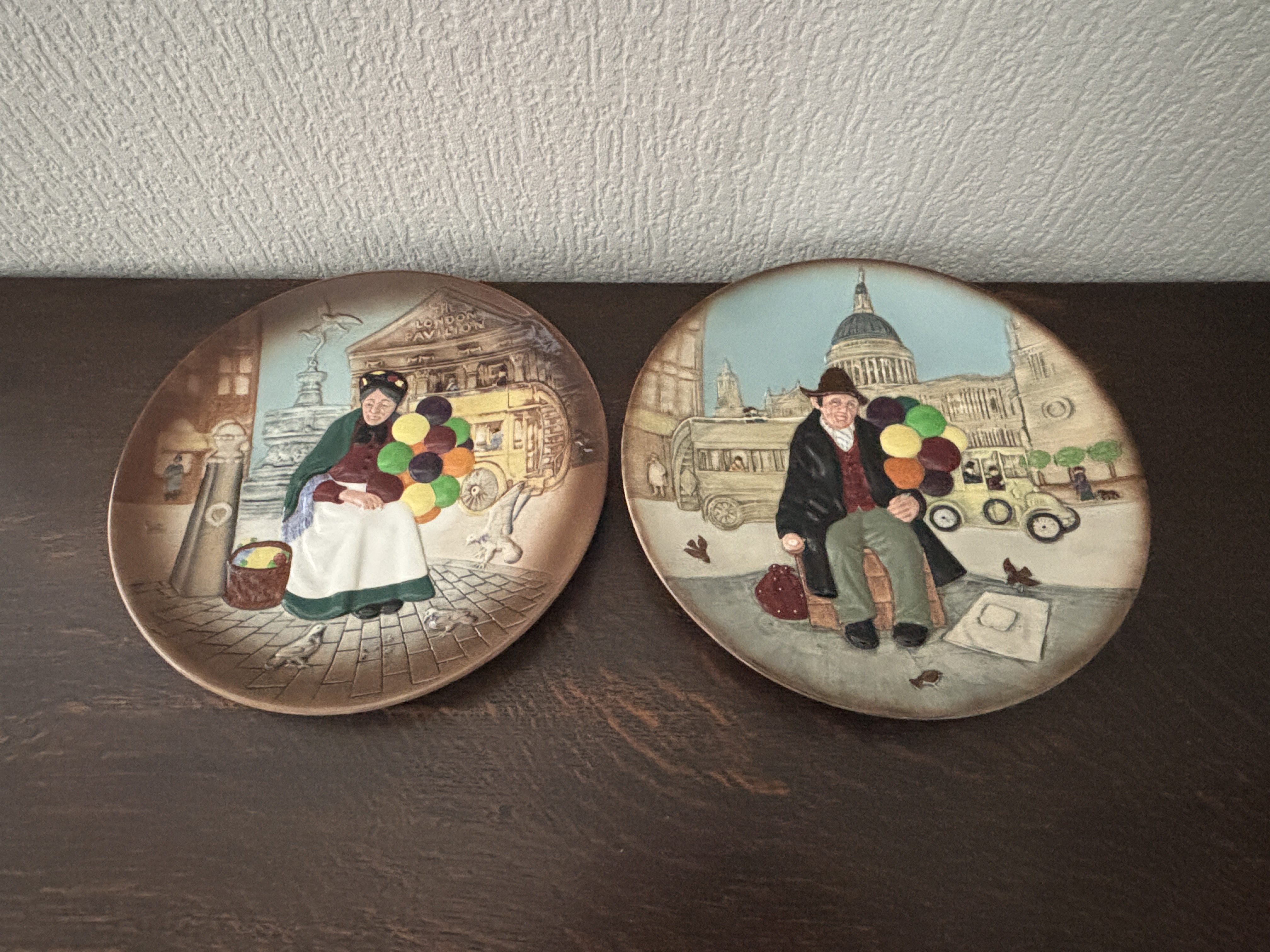 Two Royal Doulton Collector’s plates – The Old Balloon Seller (D6649) and The Balloon Man (D6655) 25 cm diameter, embossed to give a 3D effect