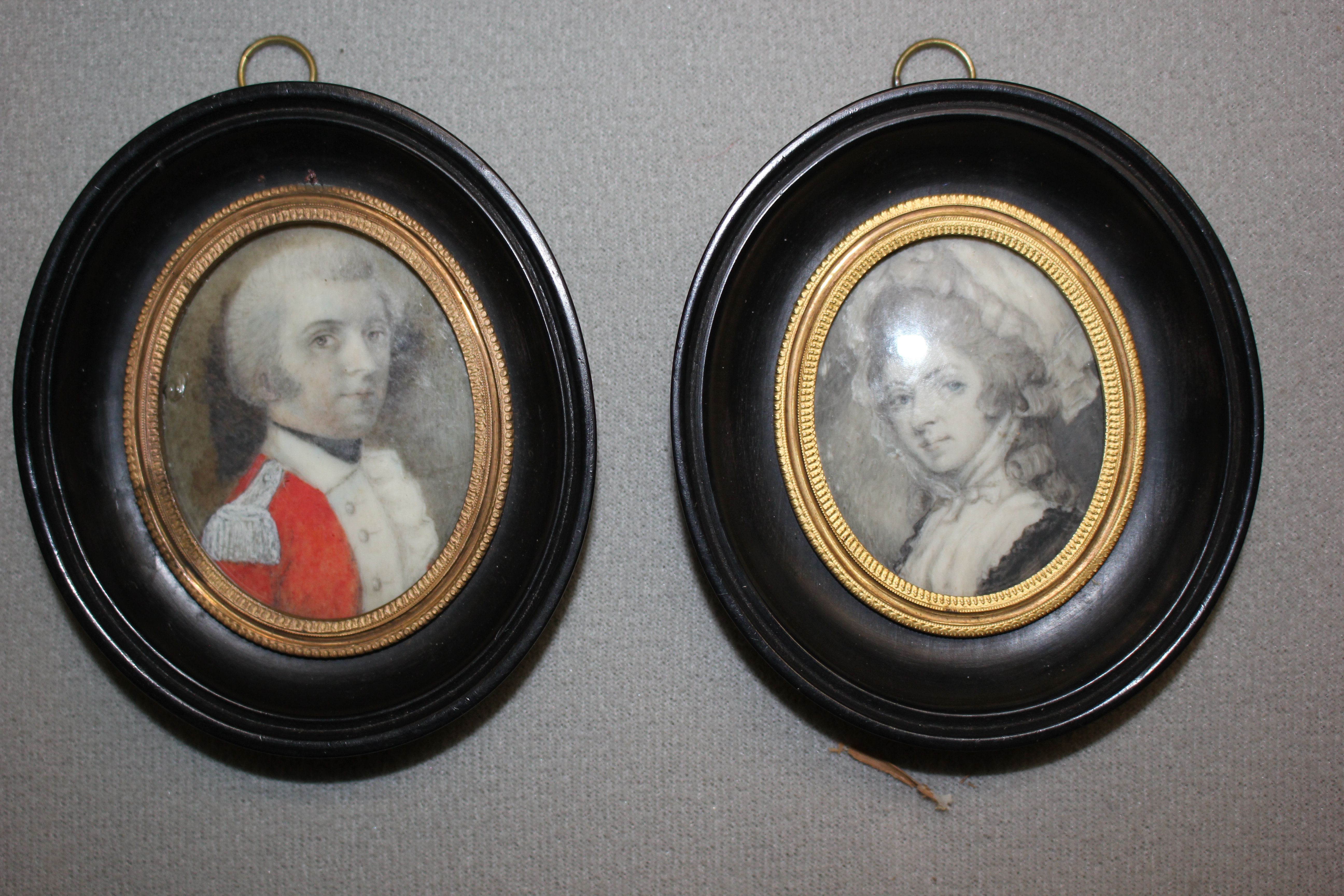 A pair of miniatures of a regimental gentleman and a lady