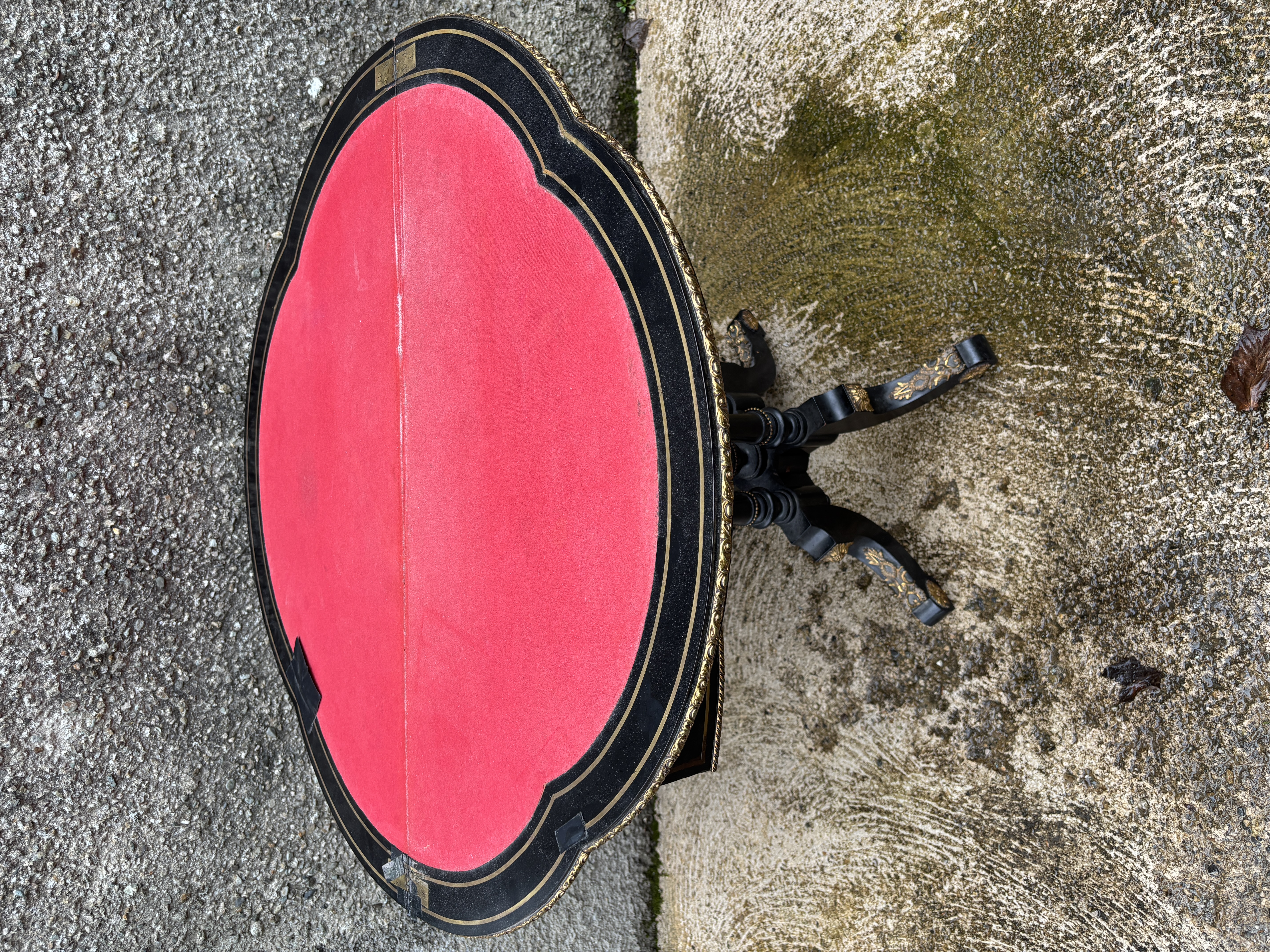 A Victorian, demi lune, fold over card table...