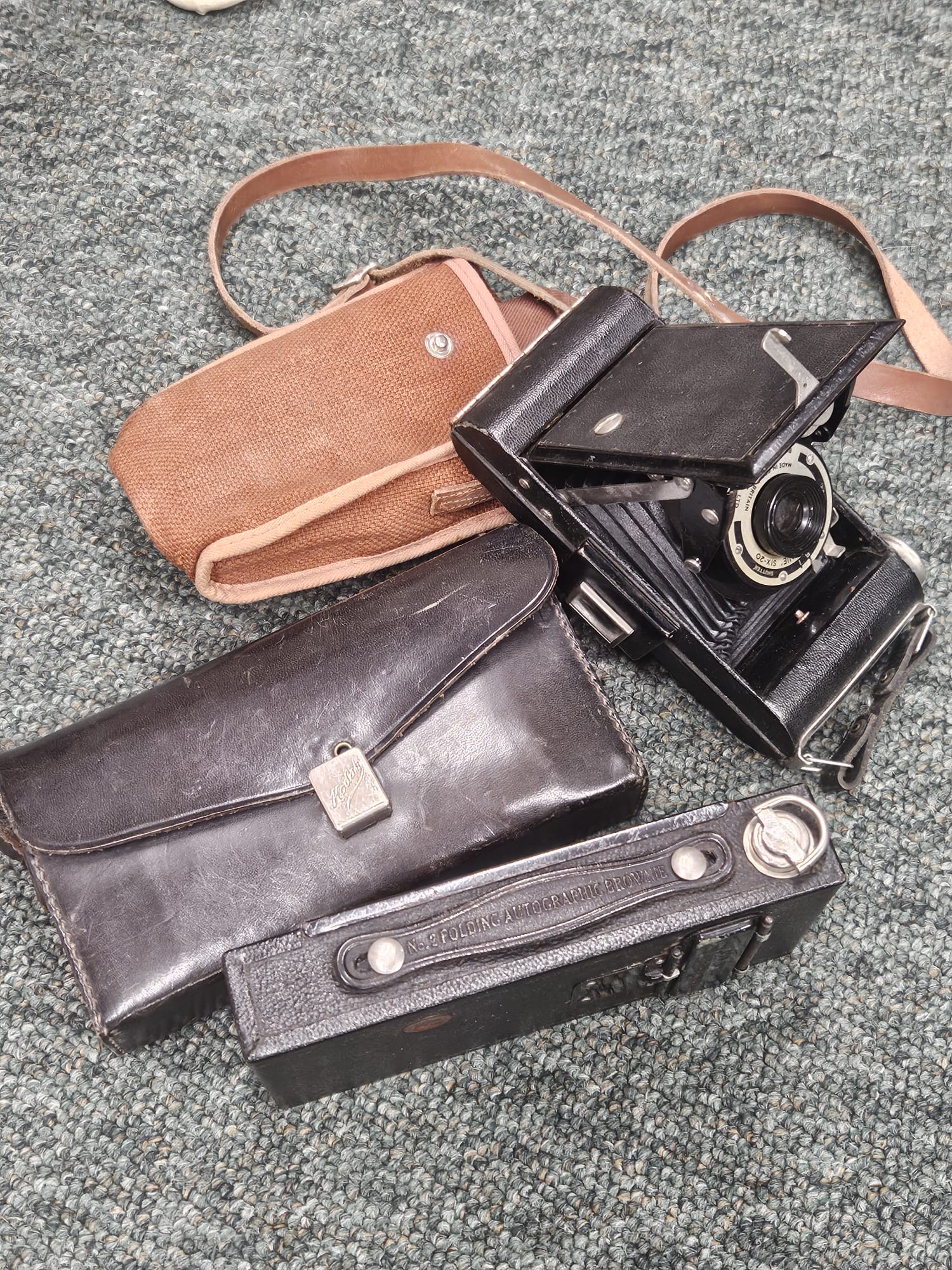 A vintage Kodak Brownie No 2 Folding Autograph camera in original case together with a folding Kodak Brownie in canvas case