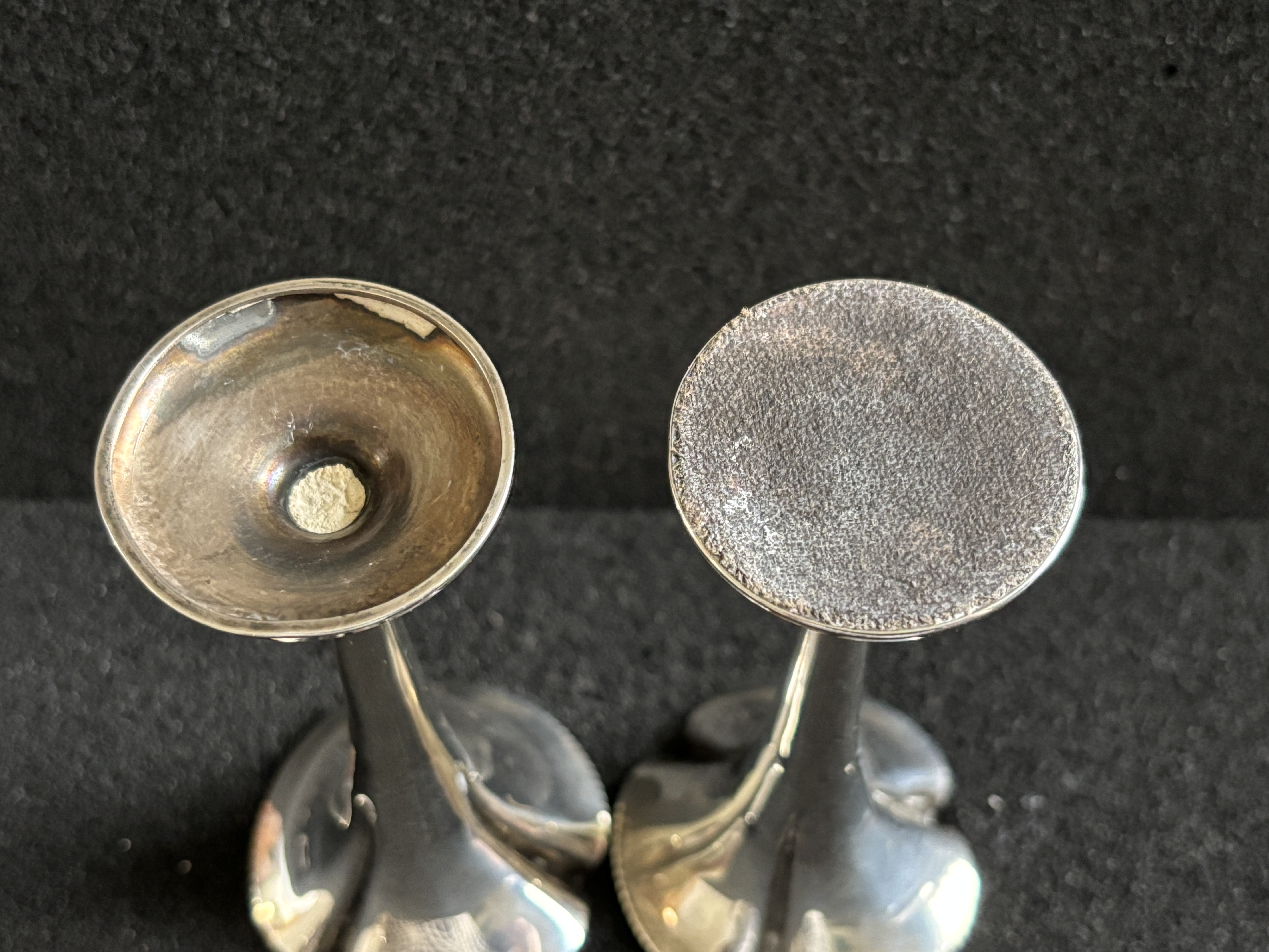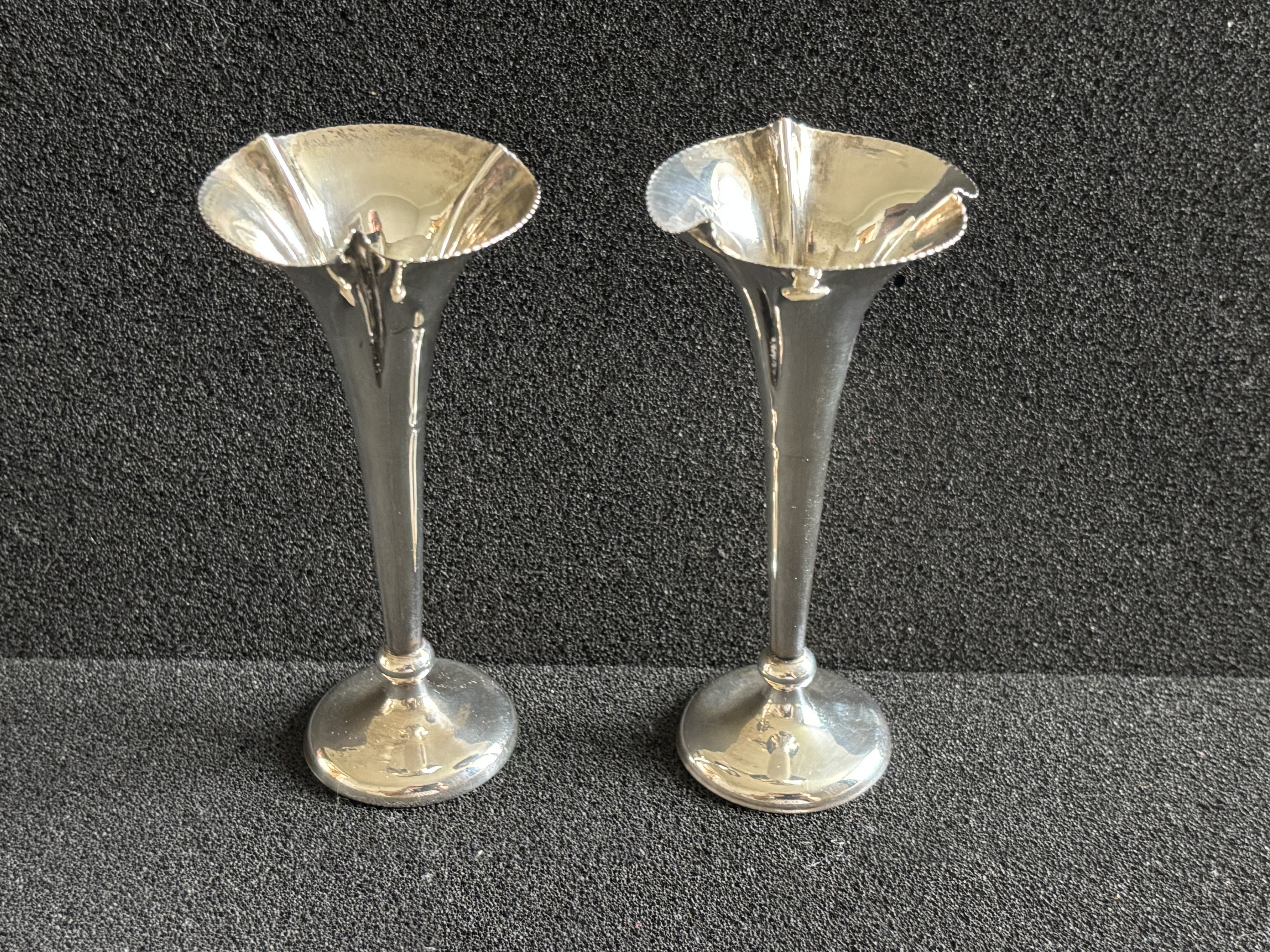 A pair of HM silver bud vases, 11.5 cm tall. Weight 42 gm (based on twice the vase which has had the loading removed)
