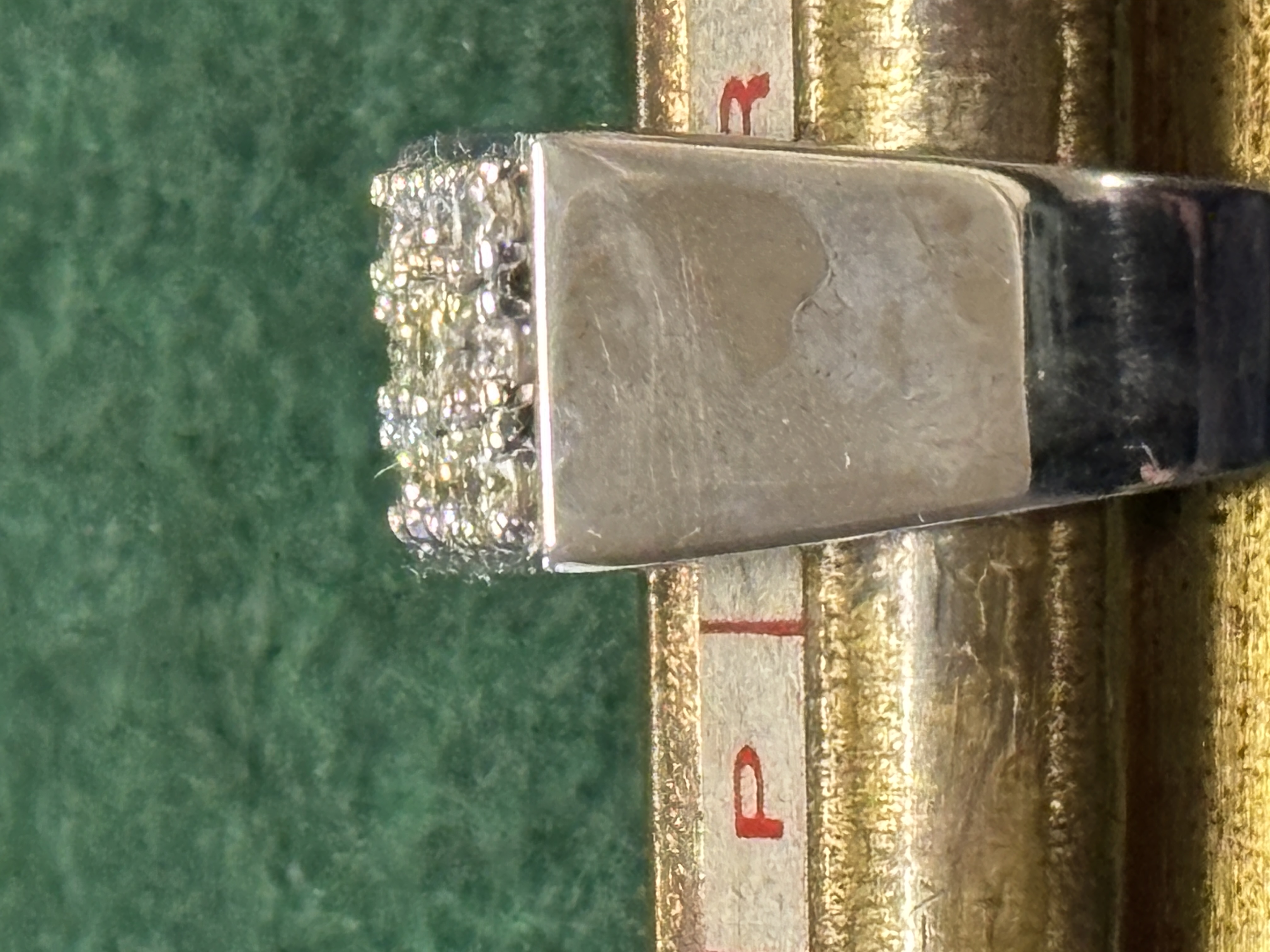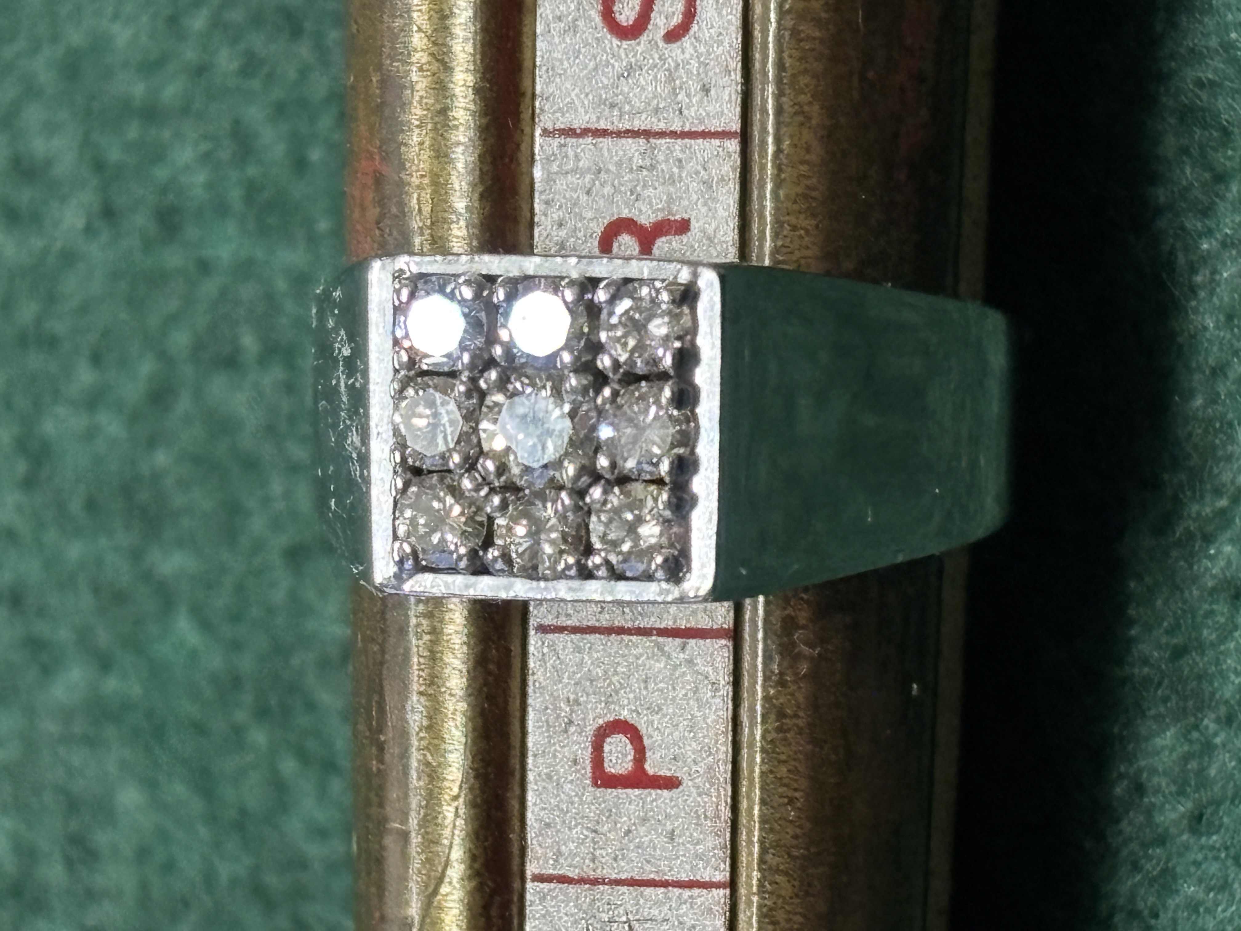 An 18 ct white gold ring having nine diamonds arranged in to square, weighing 6.55 gm