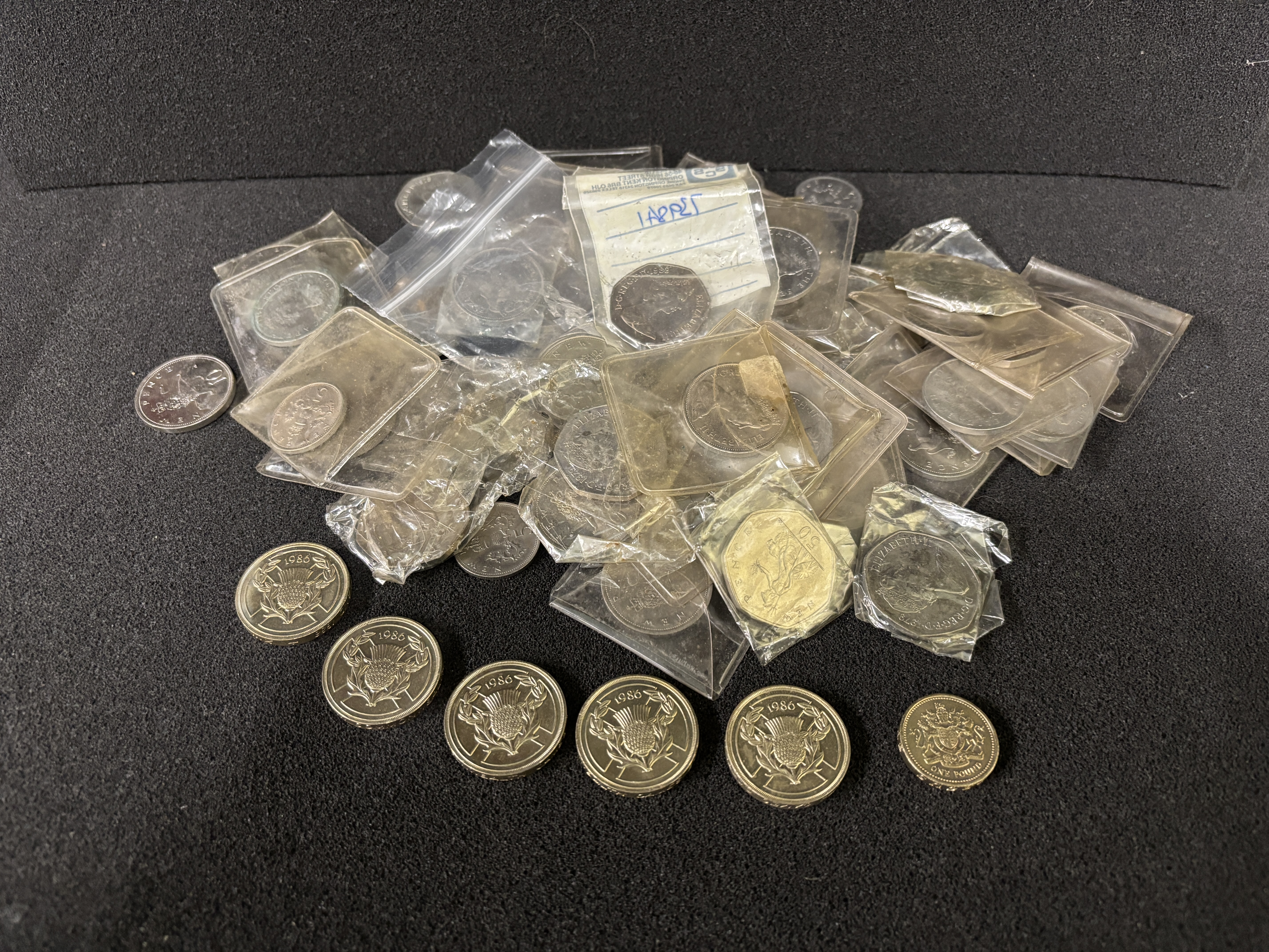 A quantity of coins to include five £2 coins, 50 pences etc (Face value in excess of £25)