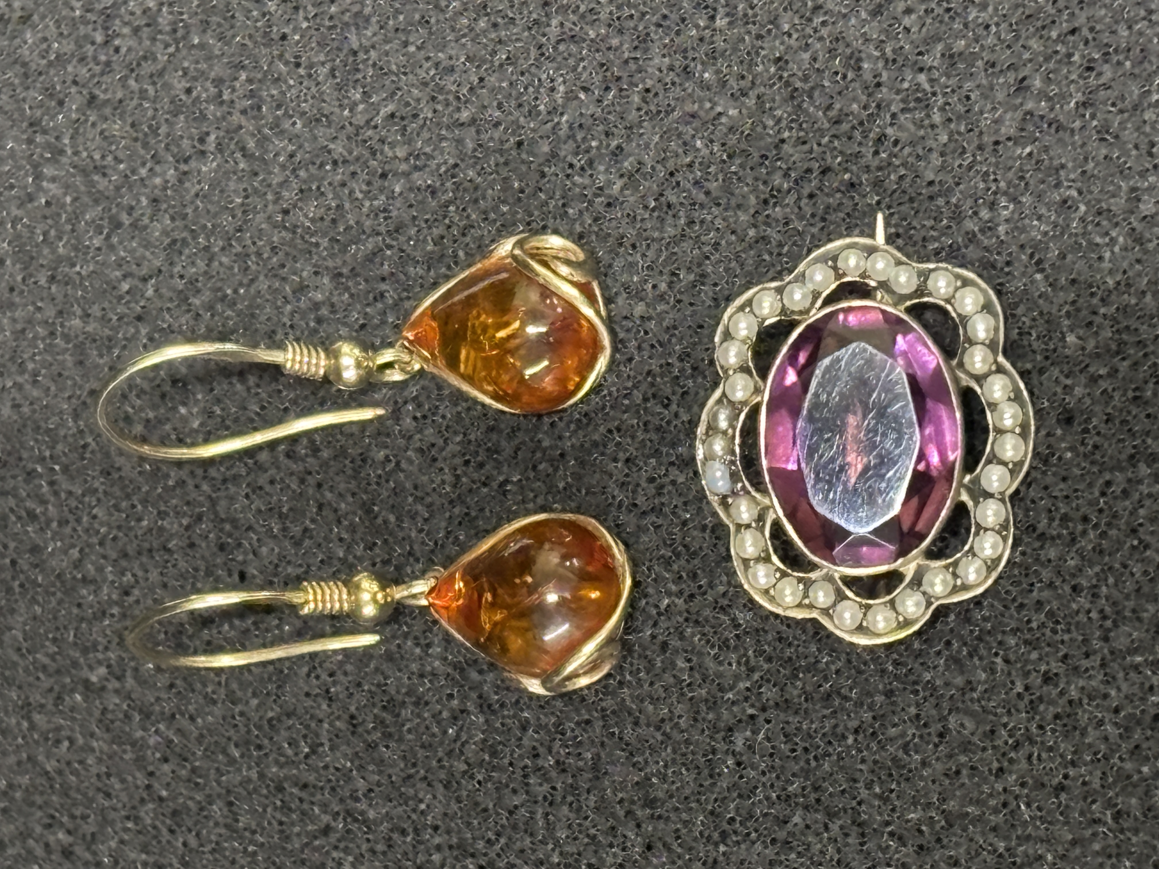 A Silver gem set pendant with seed pearls together with a pair of earrings