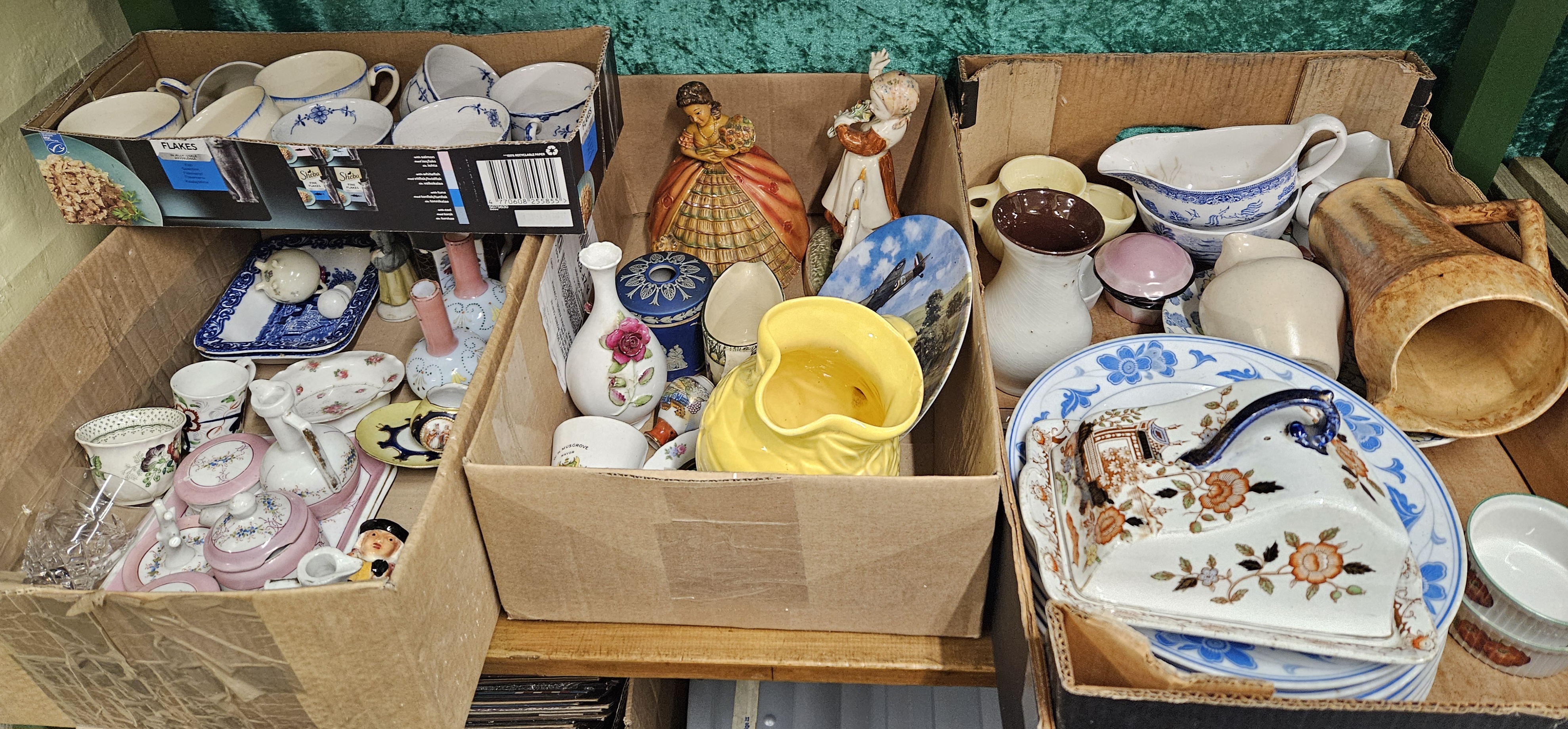A large selection of decorative ceramics, including Doulton Noke jug- damaged, 19th century and later, Kendal commemorative, chees dish, plates etc