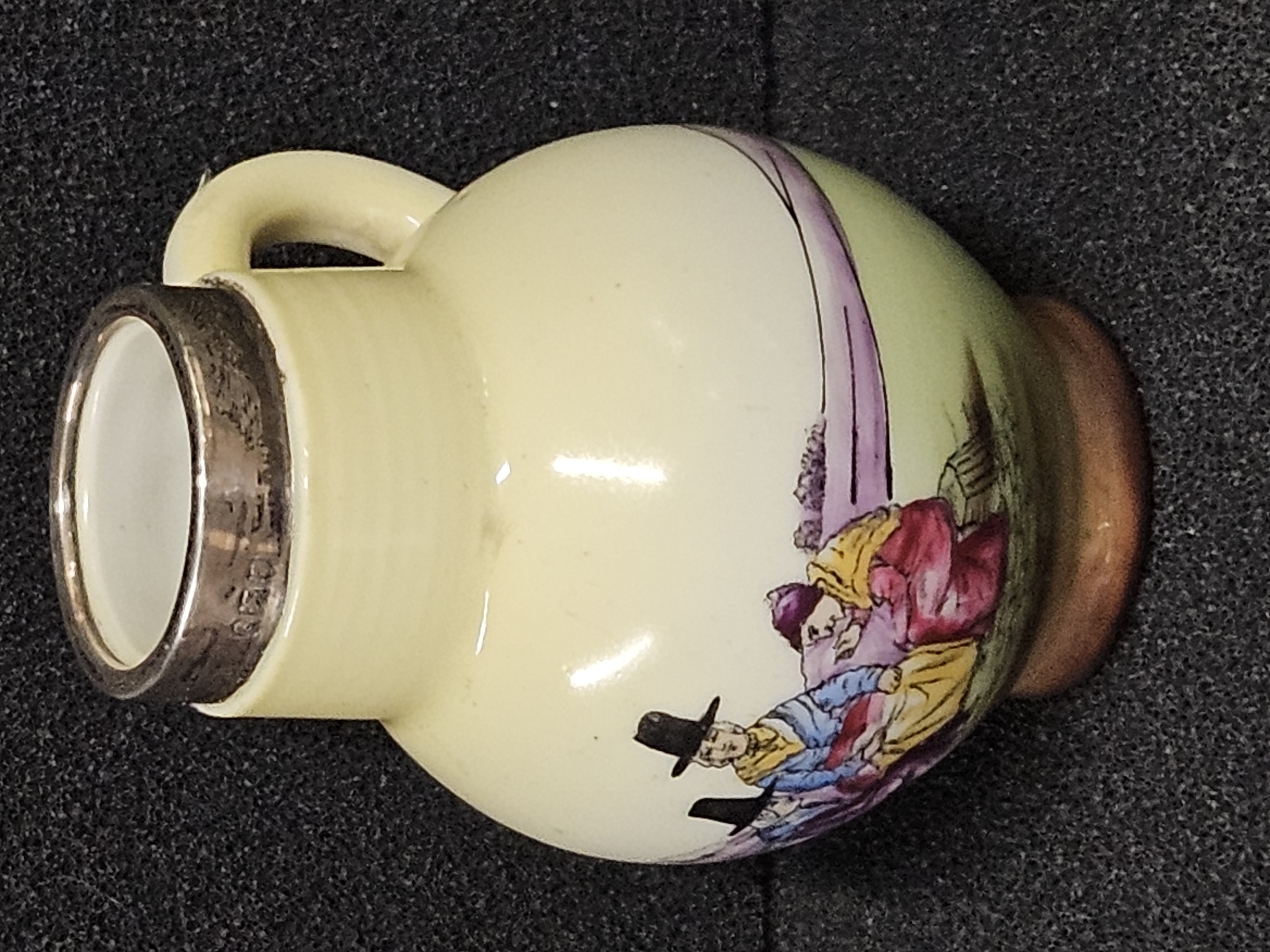An early 2oth century HM silver rim small Welsh ceramic jug, Height 7cm