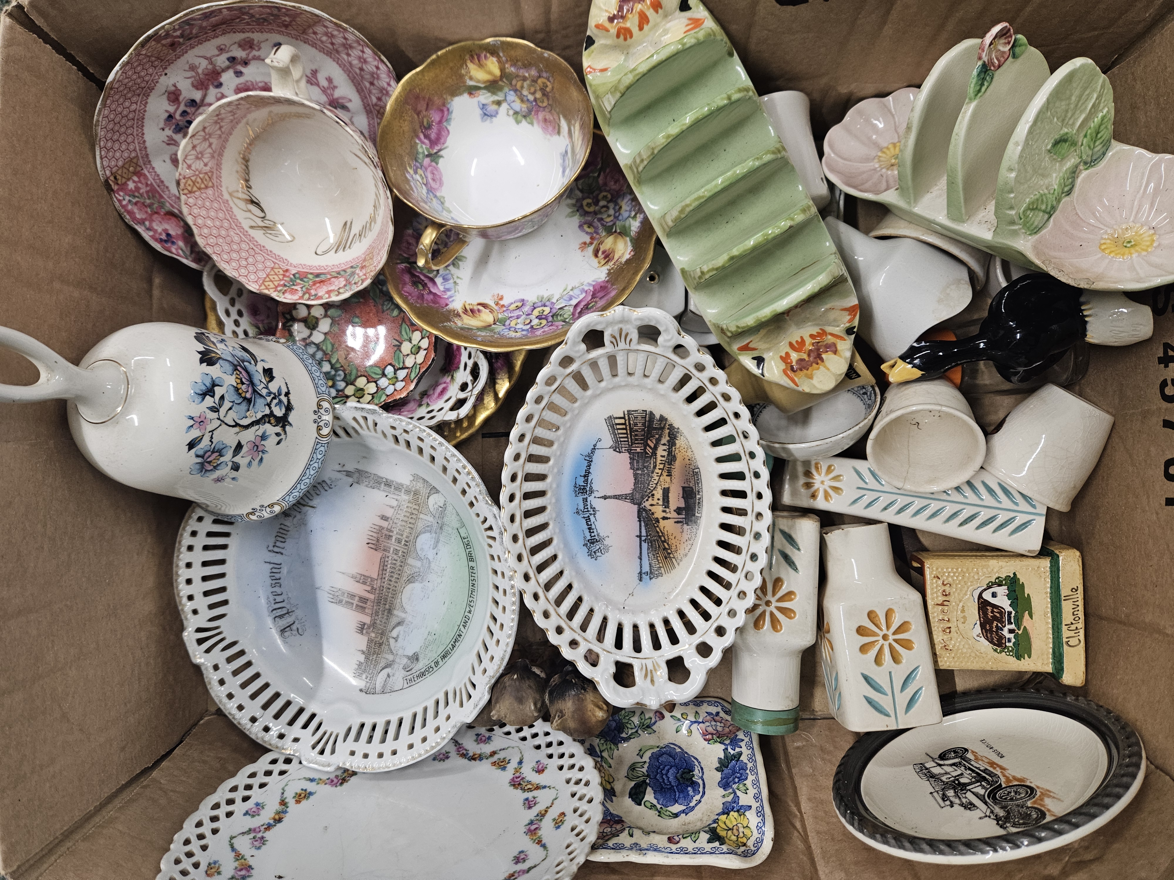 A selection of decorative ceramics including Carlton ware and Winton toast racks