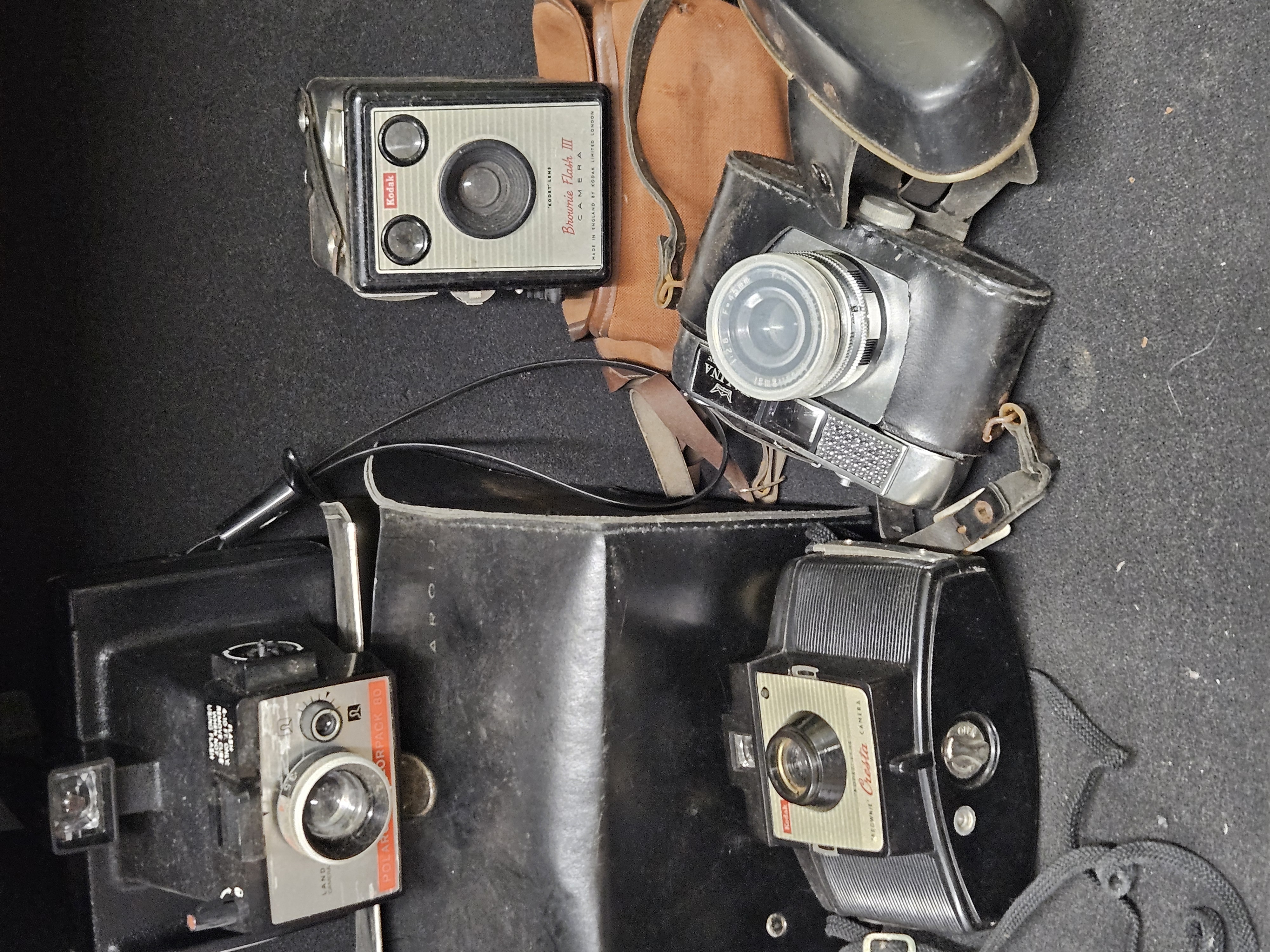 A selection of cameras , including Polaroid, Kodak Brownie 11, Halina etc