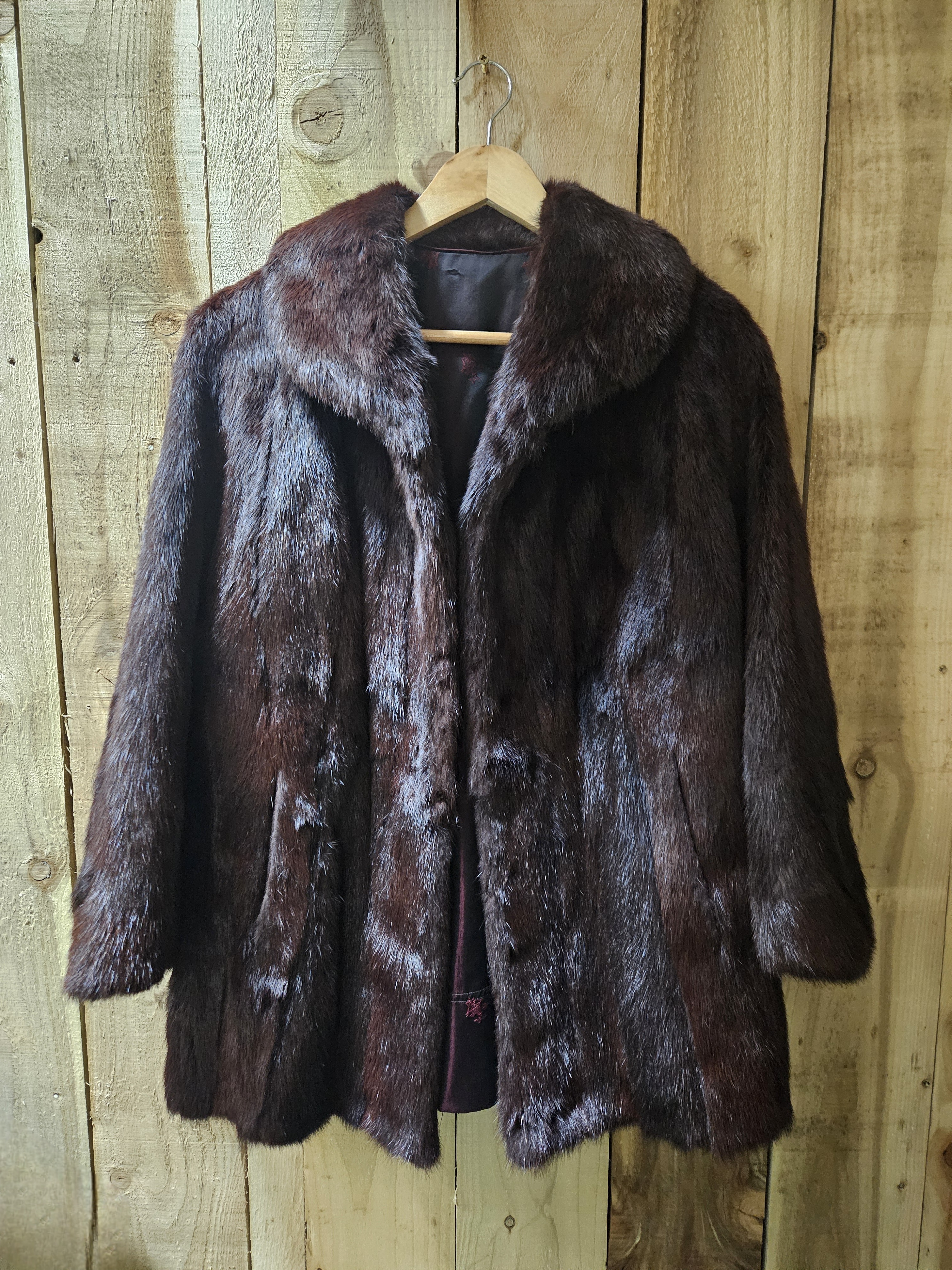A vintage brown fur coat, foliate lined, unlabelled