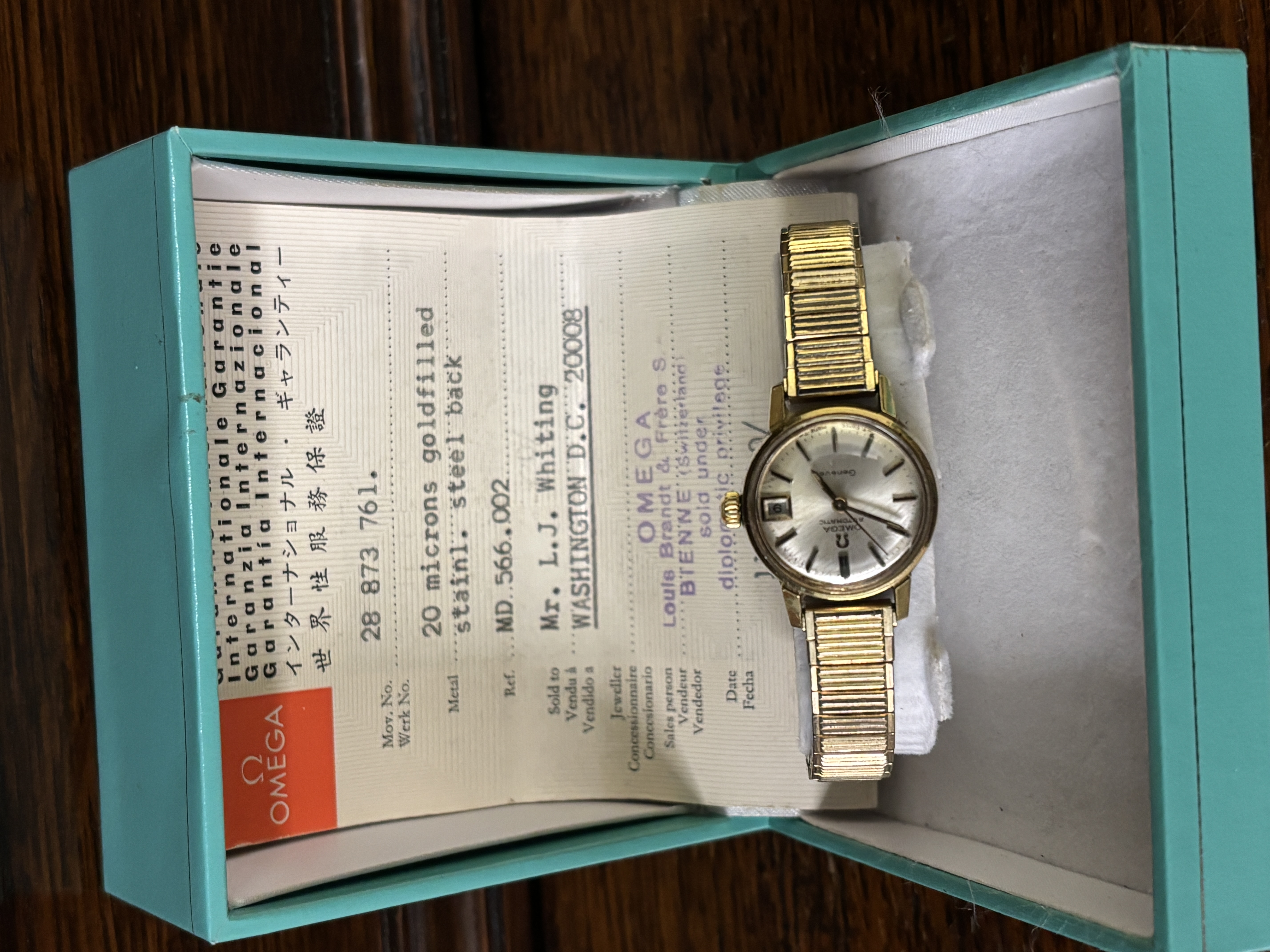 A ladies Omega wristwatch with original receipt and...