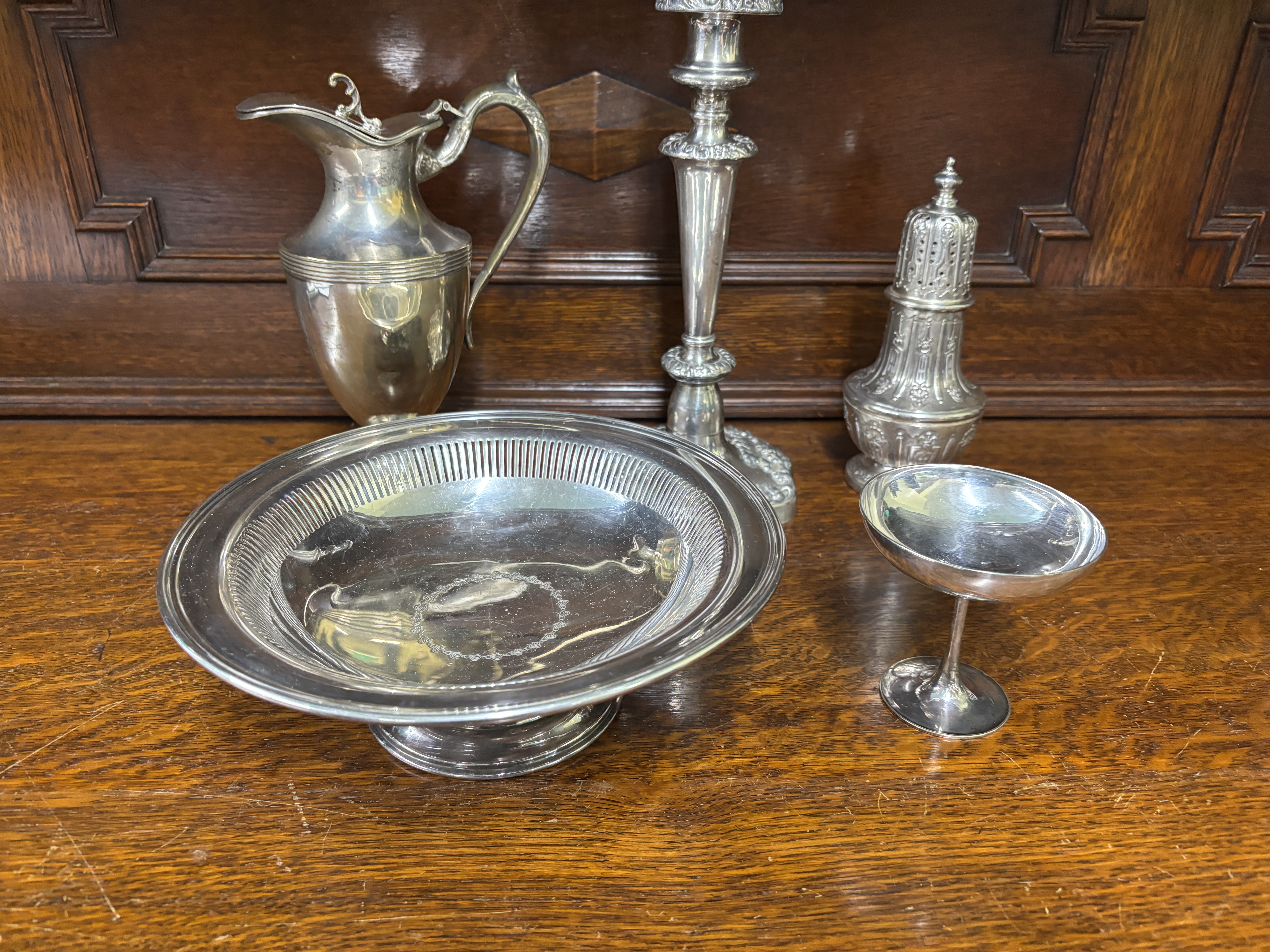 A quantity of silver plated items to include a Mappin and Webb dish on stand