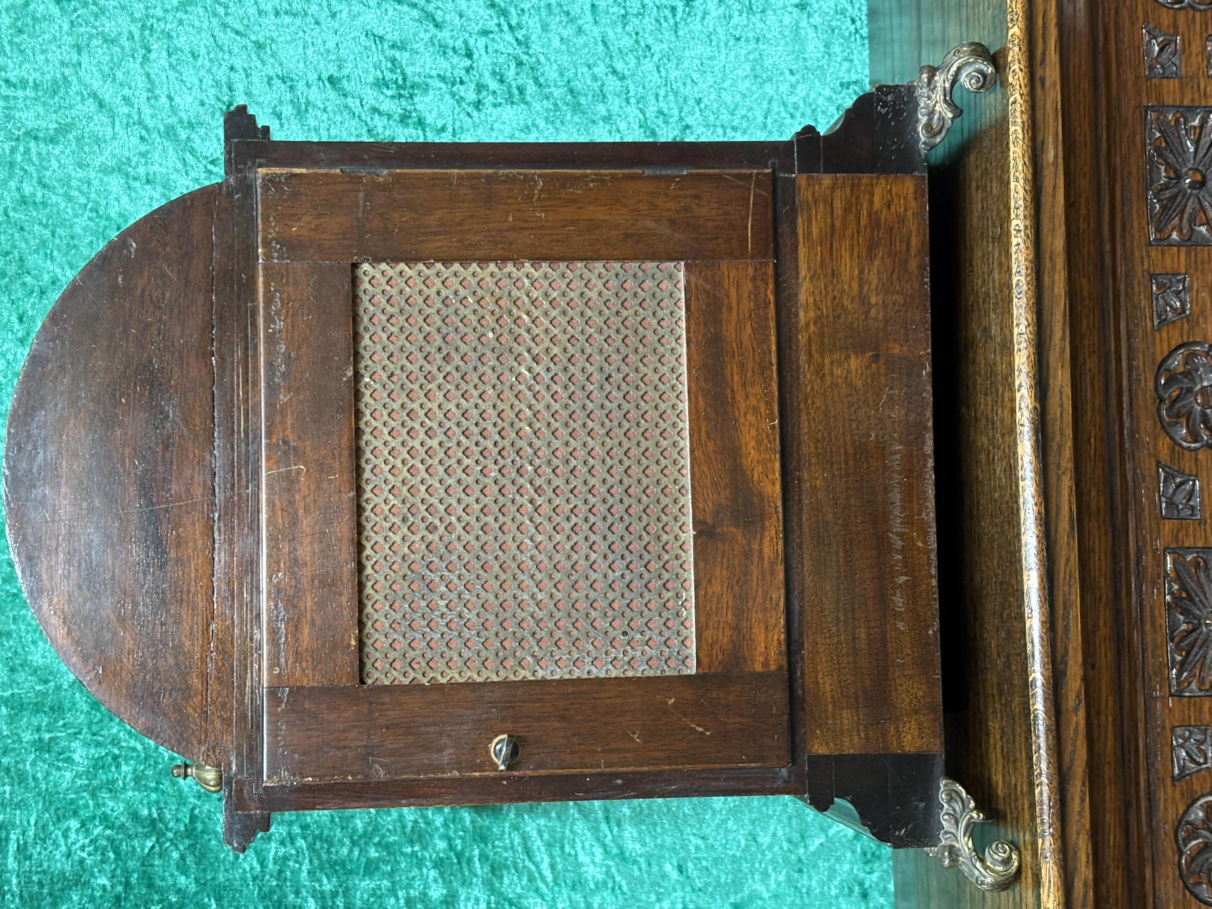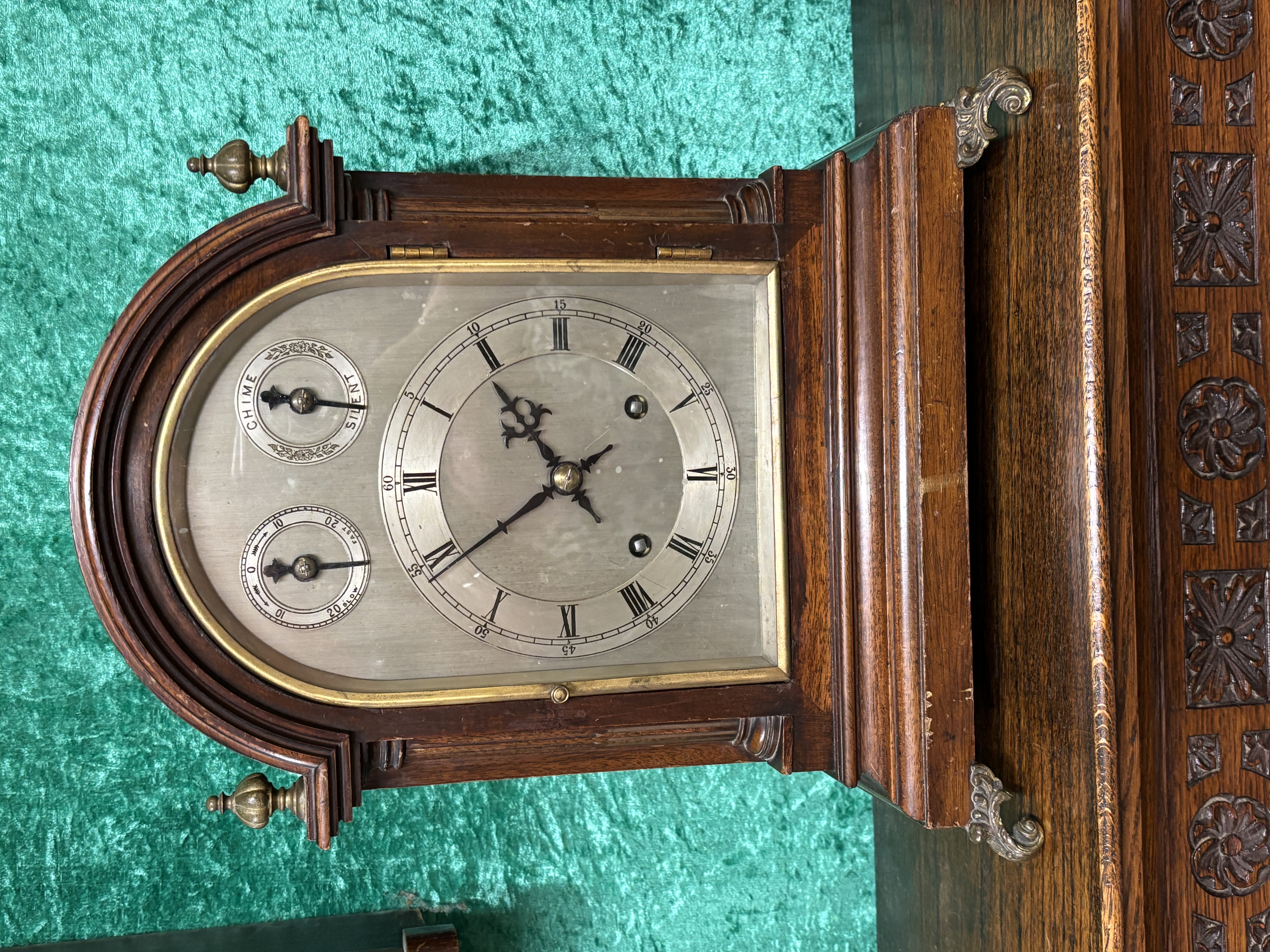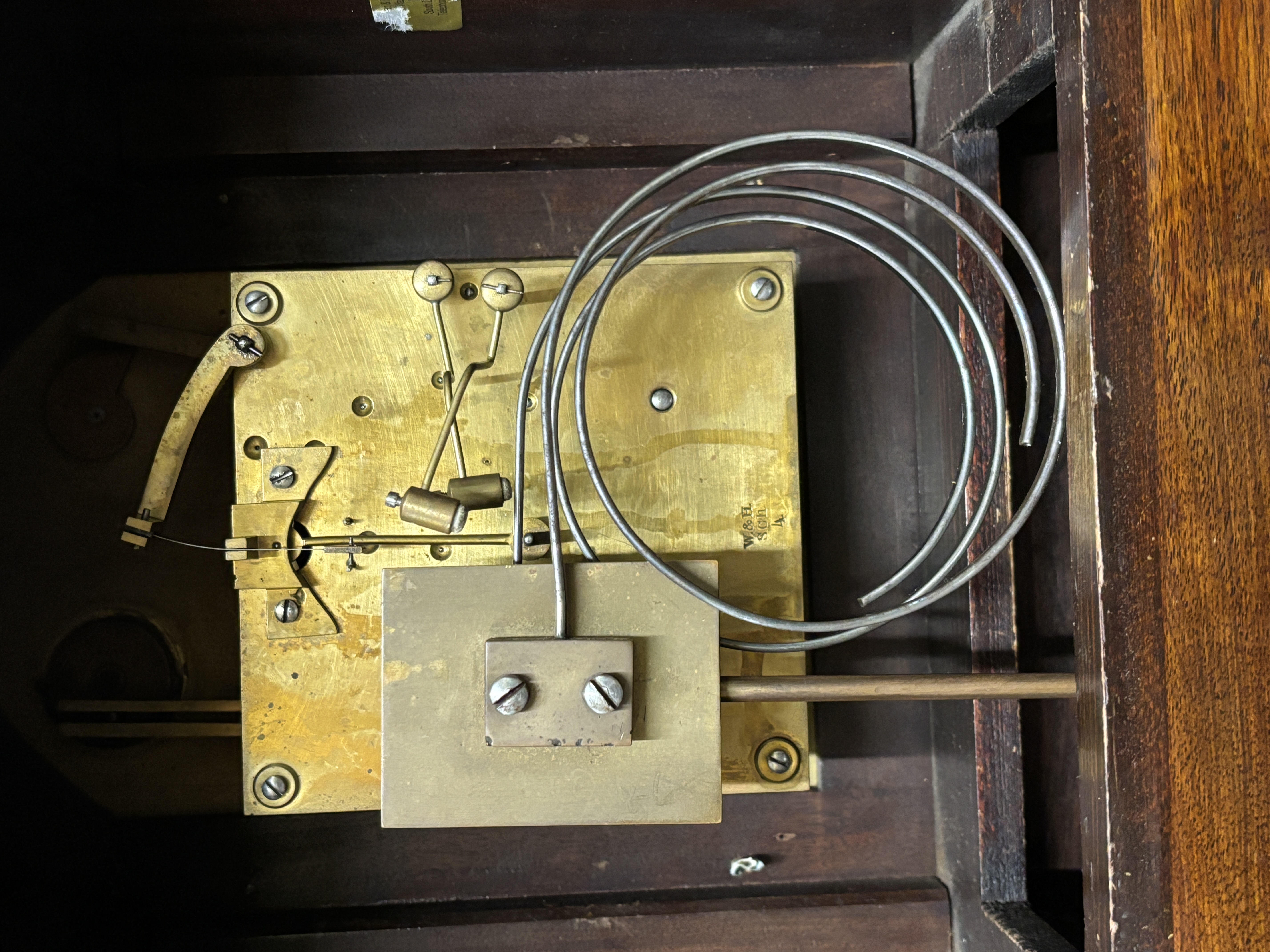 An early 20th century mahogany cased mantel clock, of arch design with brass detail, with silvered dial, having striking movement stamped W and H, Sch