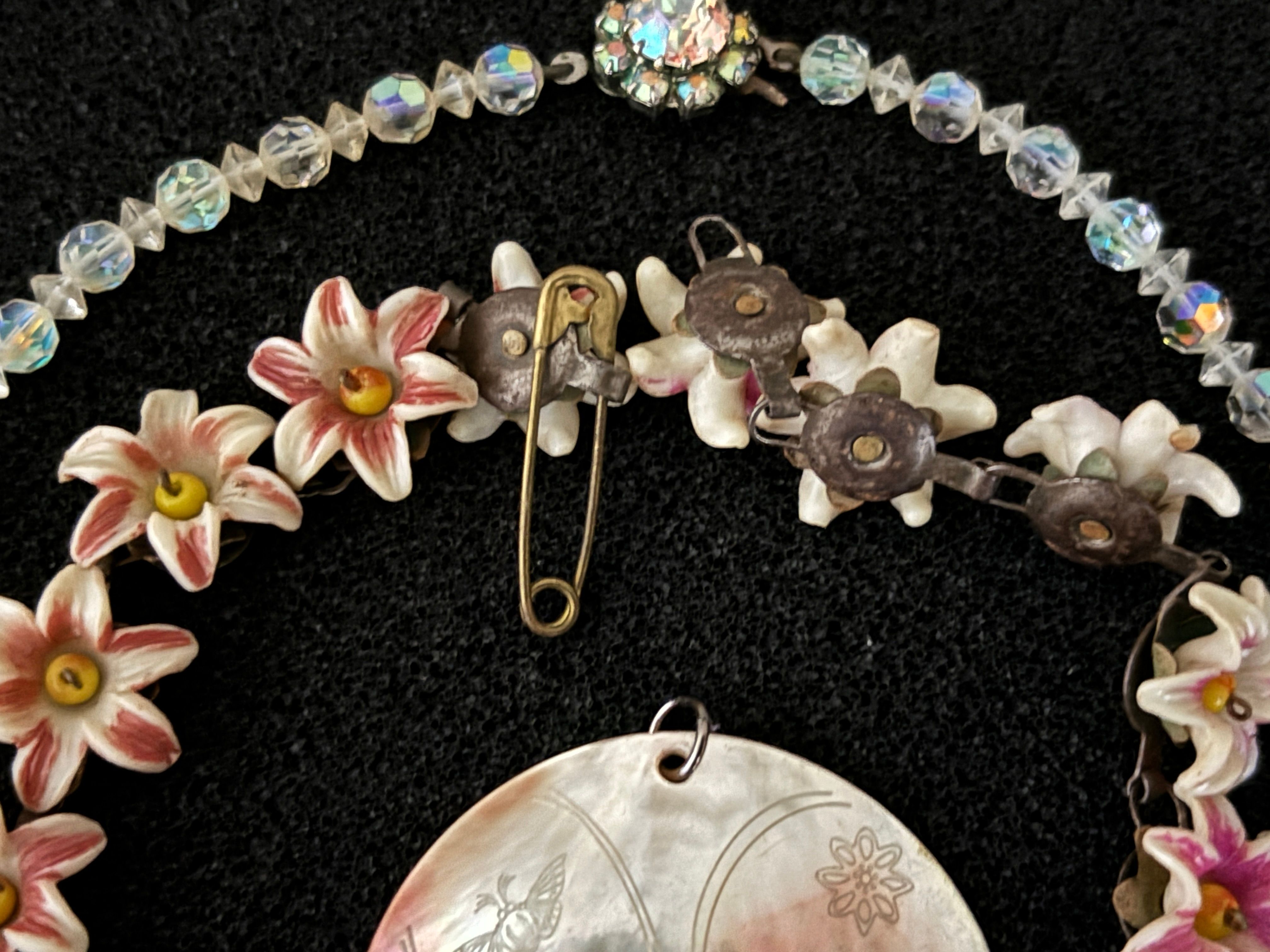 An Aurora Borealis and delicate flower necklace together...