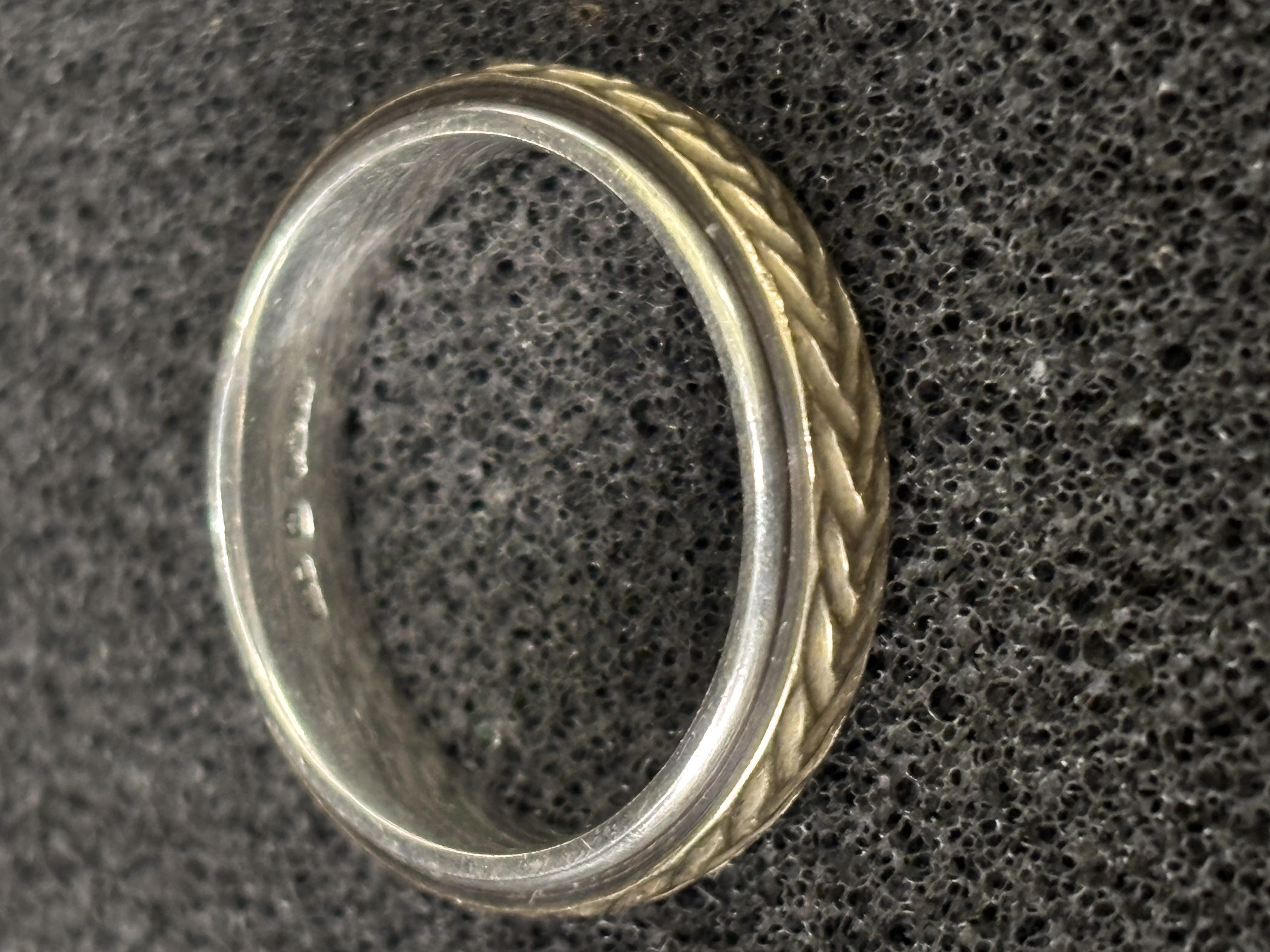 A Brittannia Silver and Gold ring size Q (stamped 958)weighing 6 gm