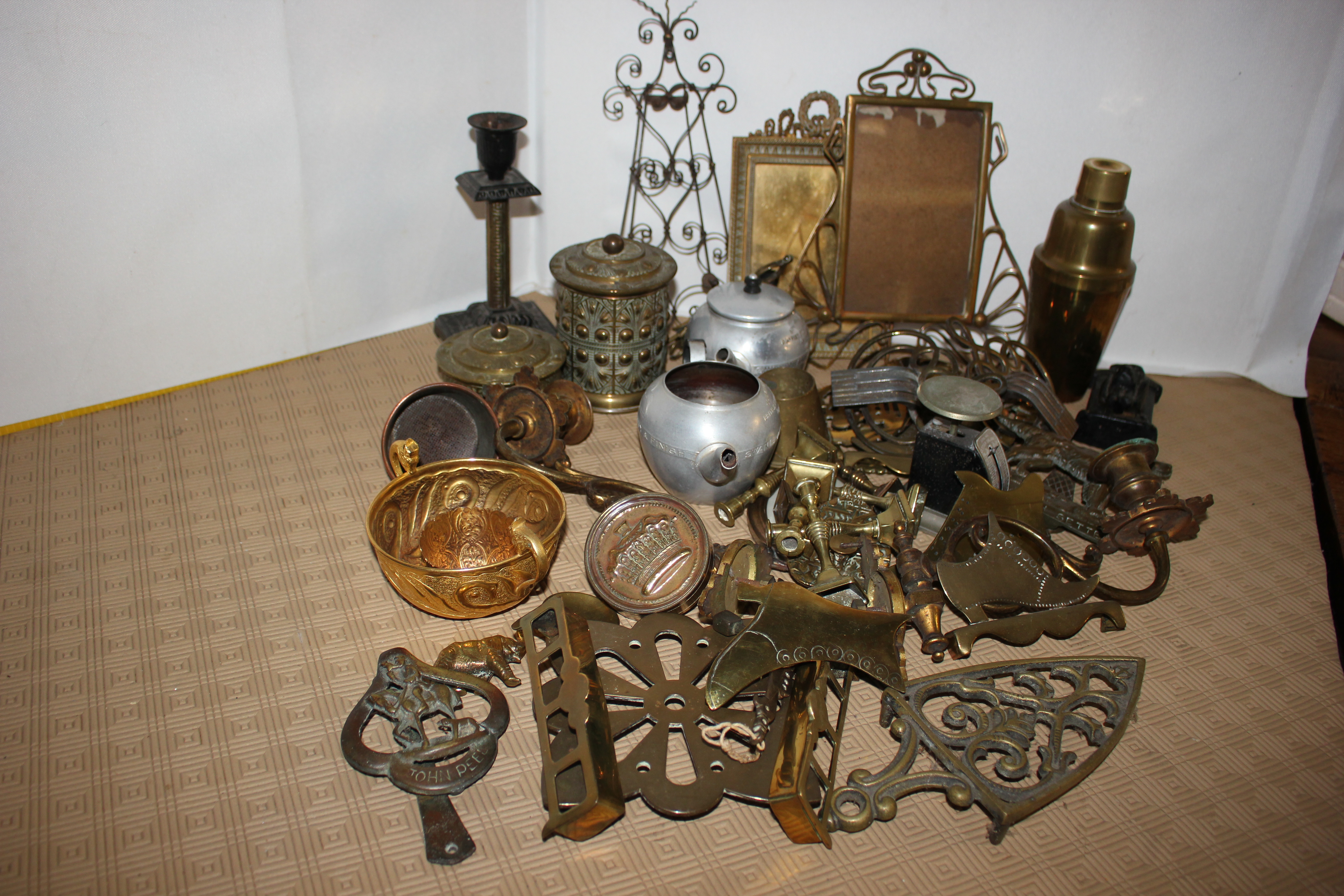 A selection of brassware