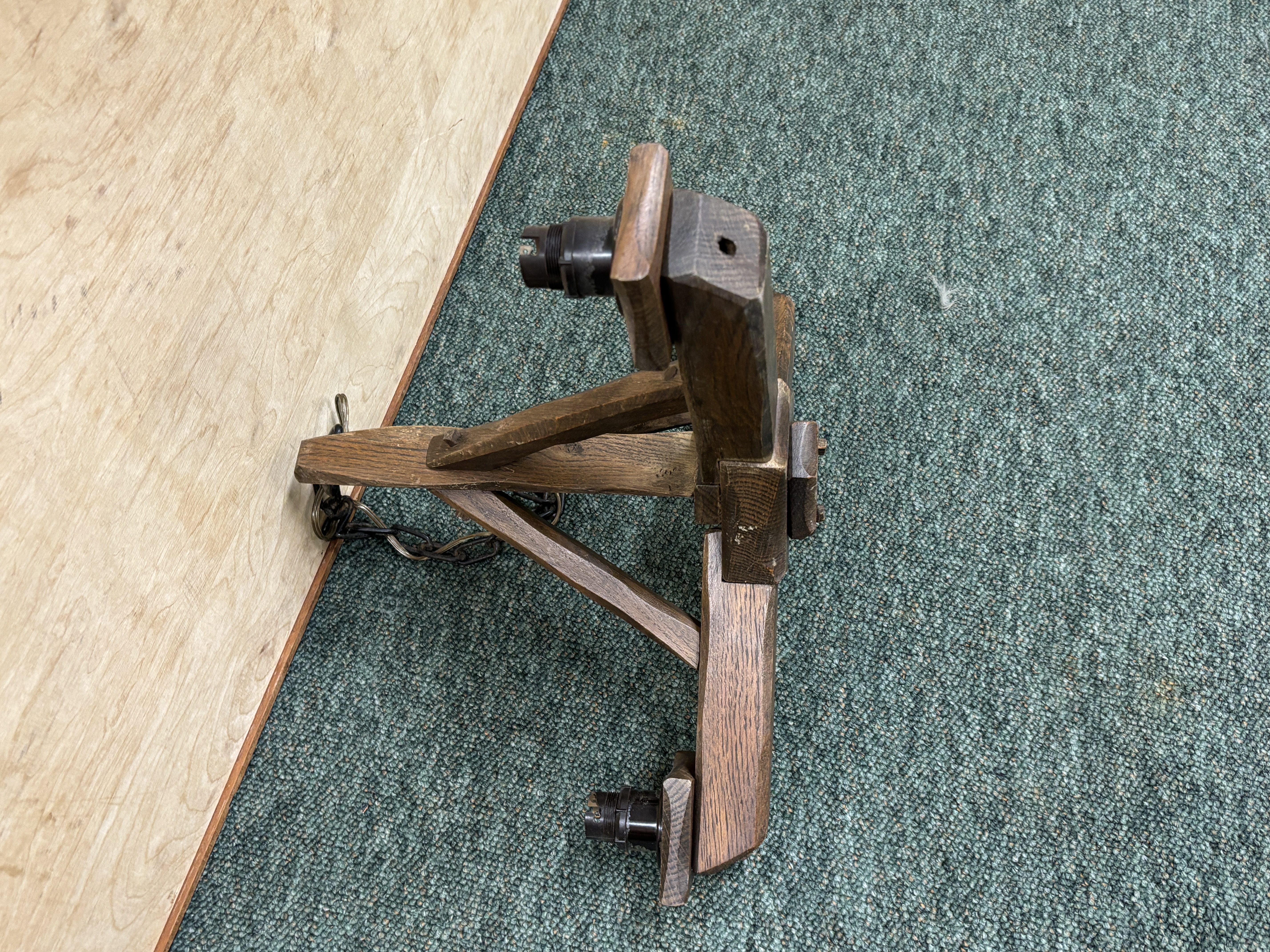 A vintage wooden ceiling light