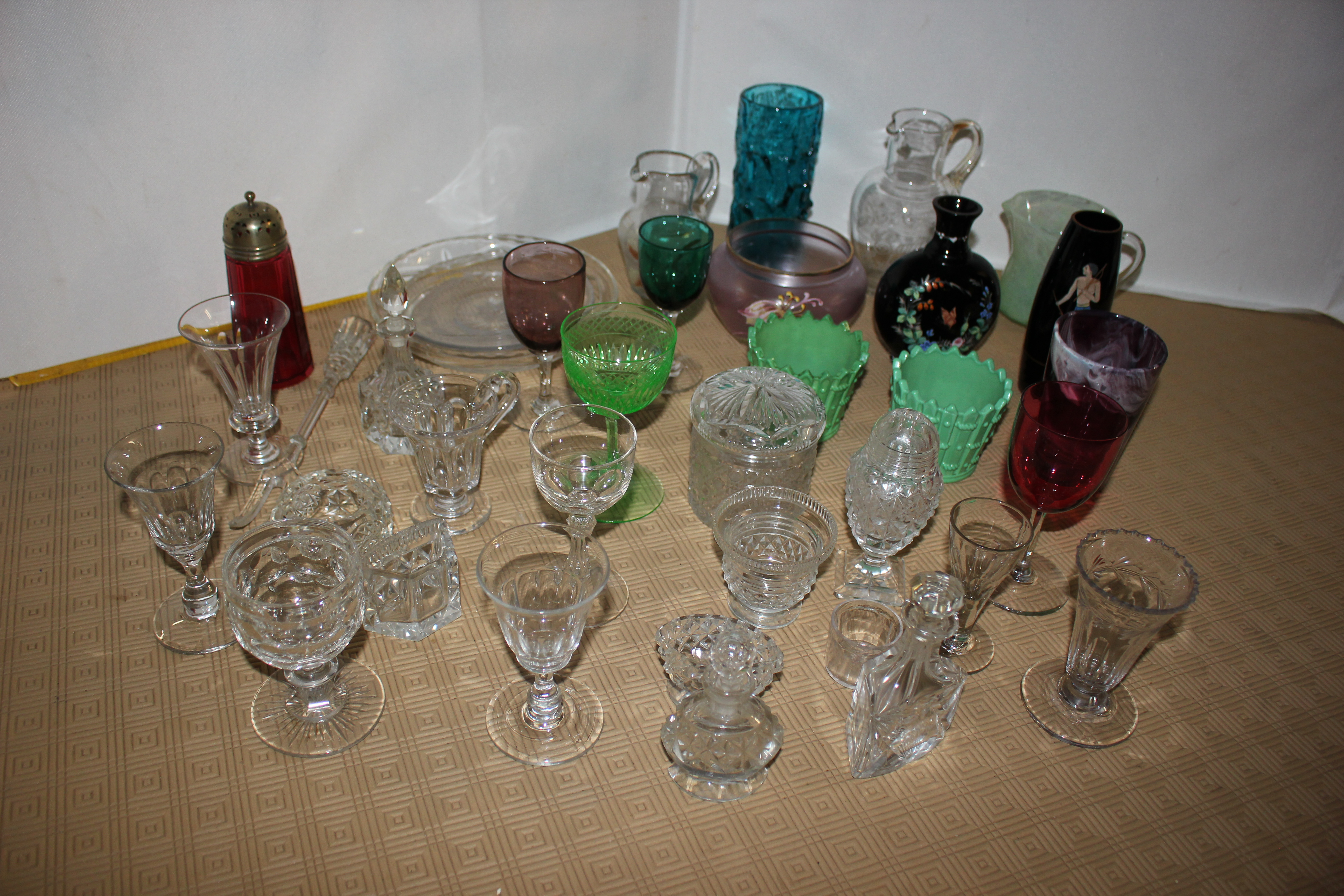 A selection of clear and coloured glassware