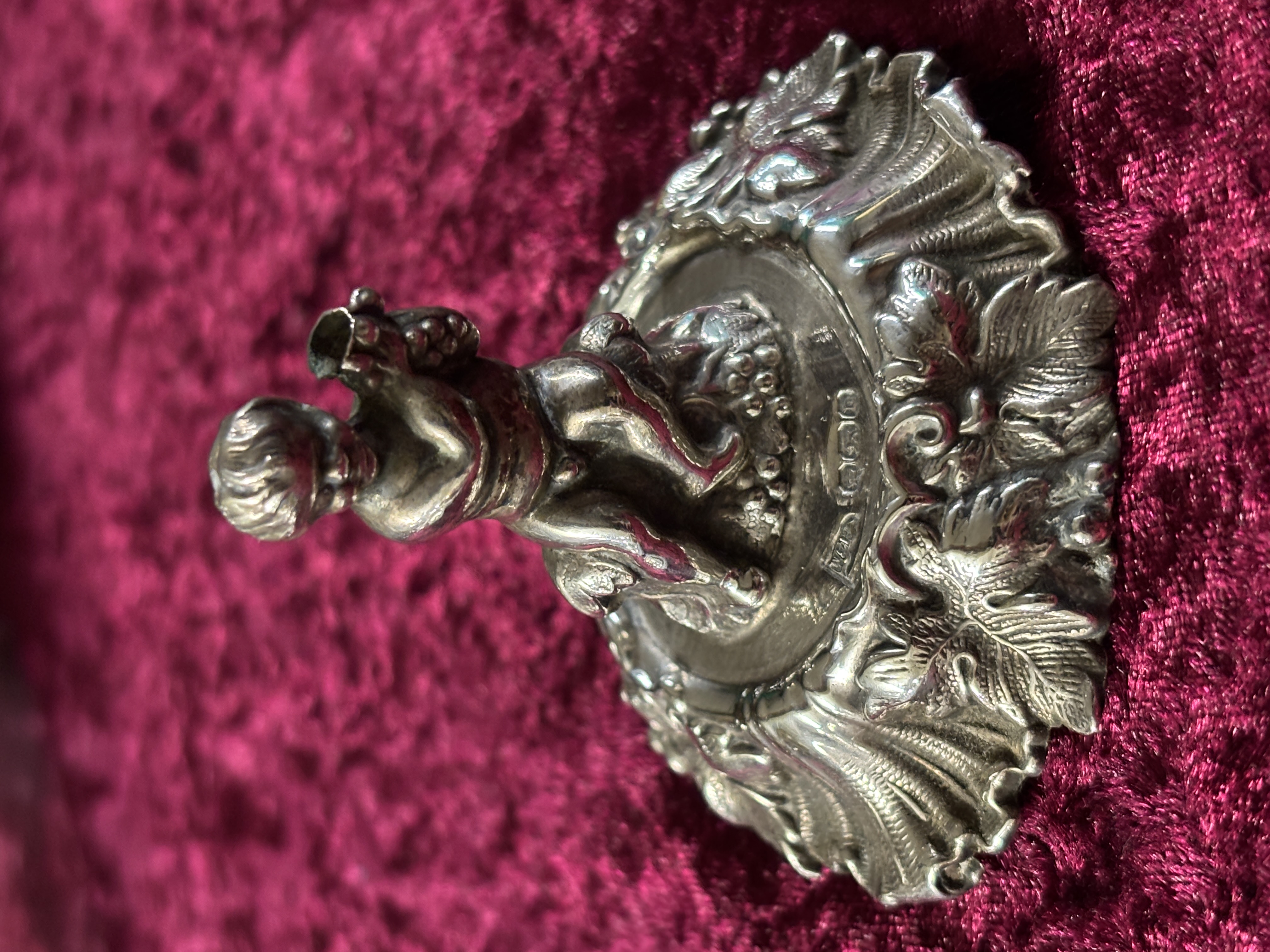 A HM silver table decoration of a Cherub on loaded base weighing 233.8 gm