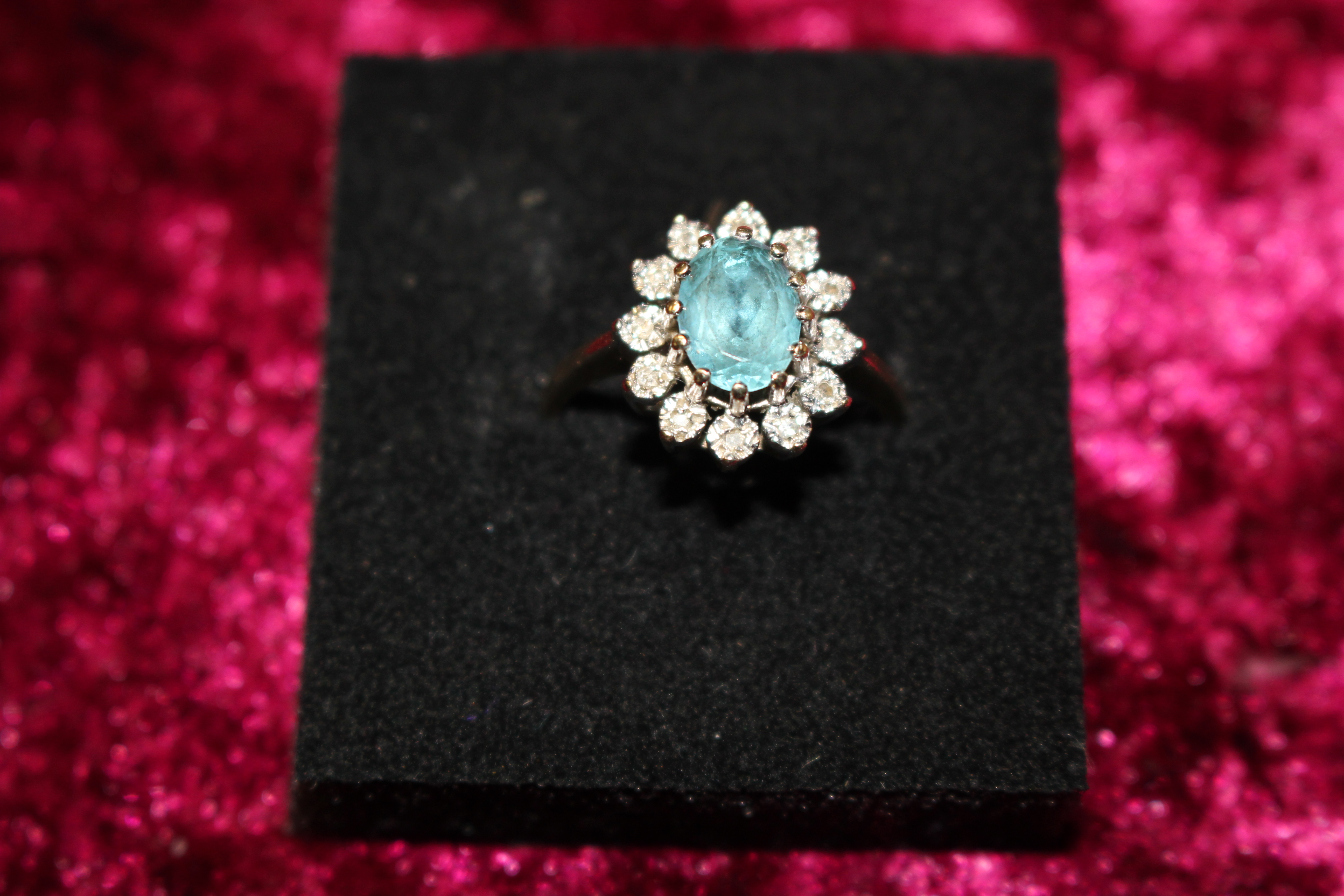 A 9ct gold ring with pale blue stone...