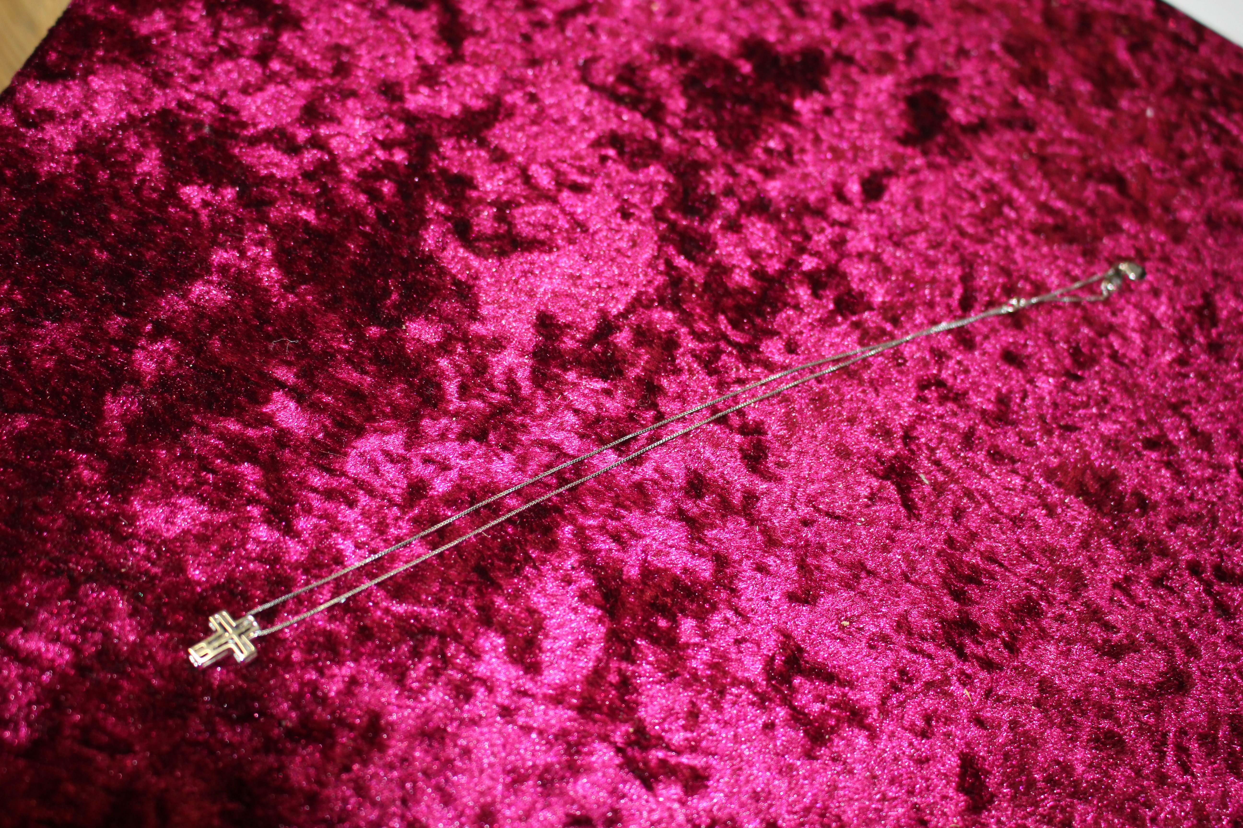 An 18ct white gold cross and chain 3.04g