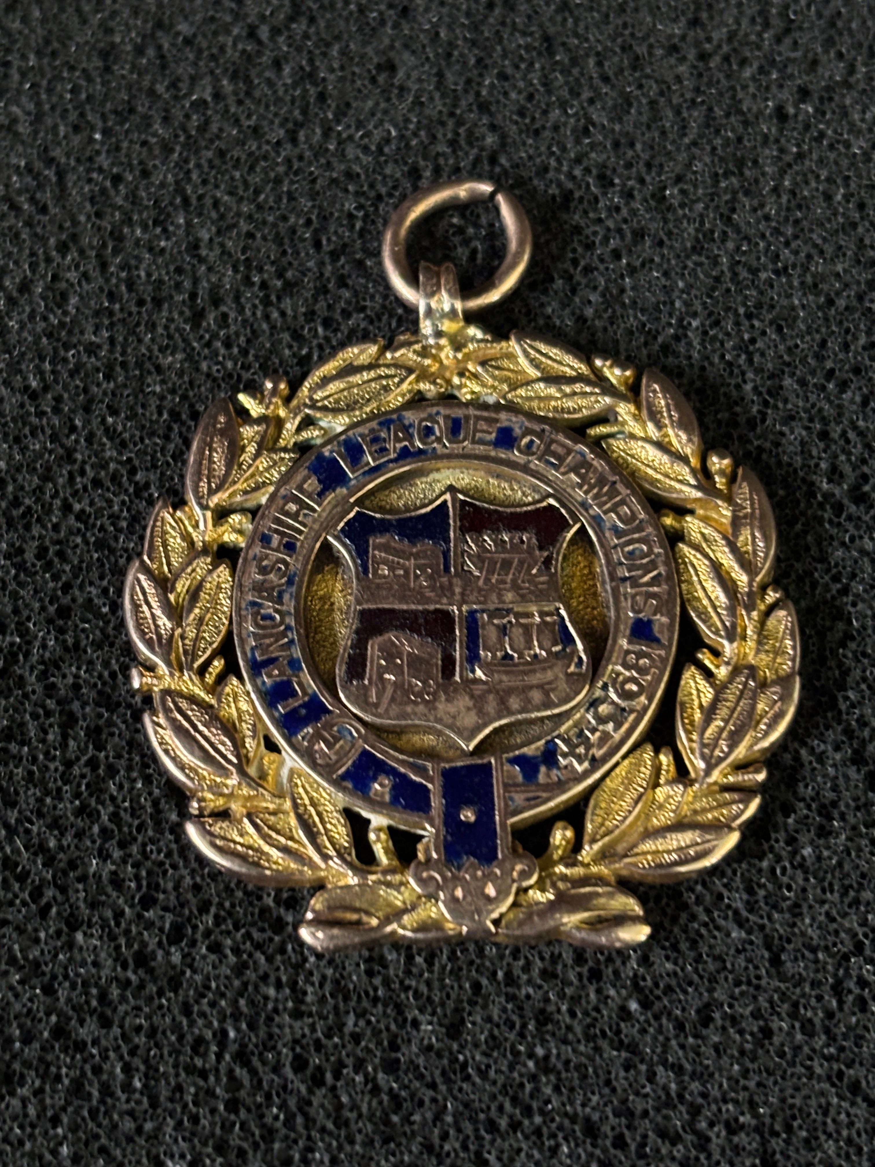 A HM 9 ct Gold and enamel football medal (Made by Shiers & Co) Blackpool, awarded to Blackpool F.C. as the Lancashire League Champions in the 1893-4 season.