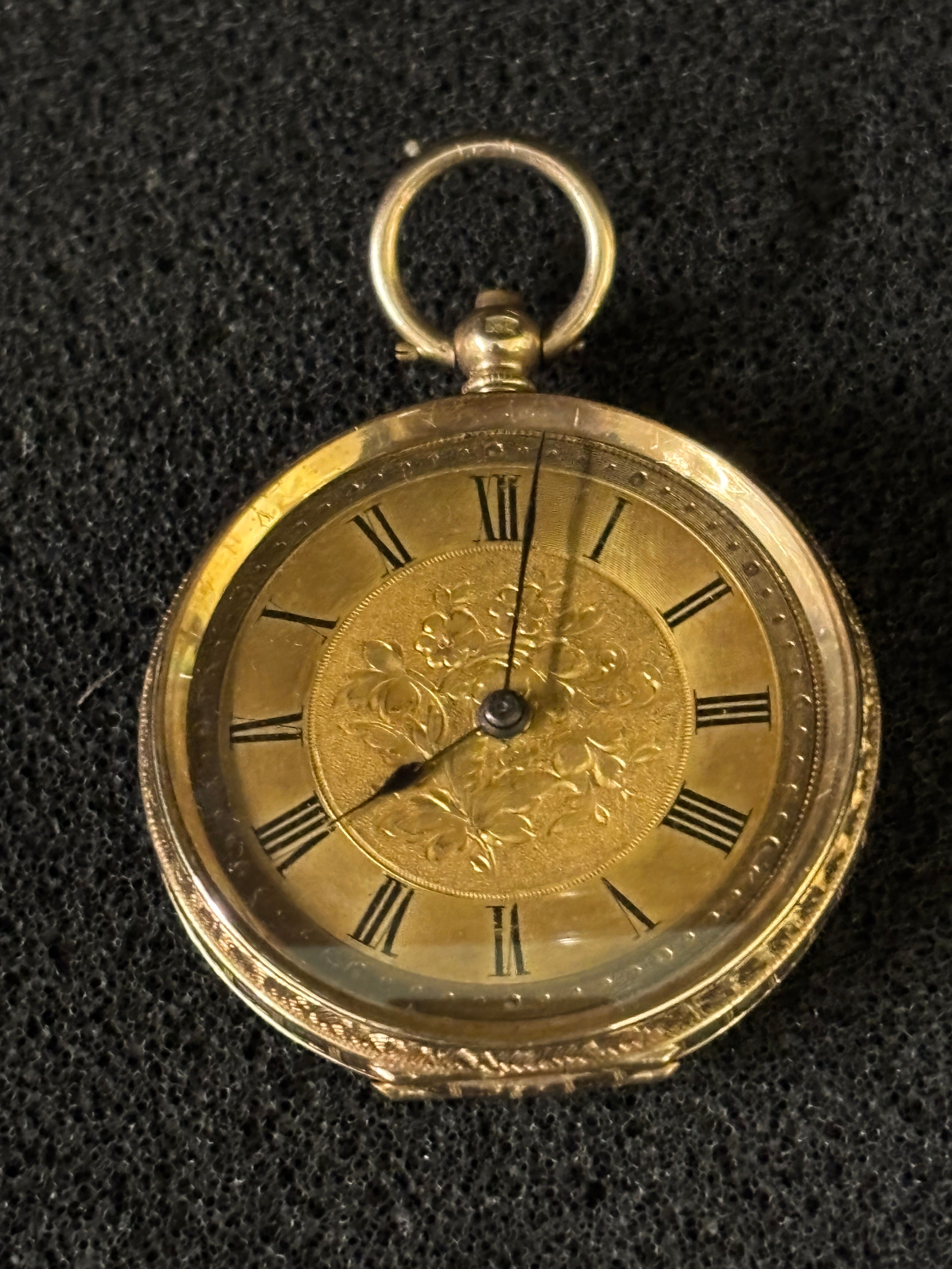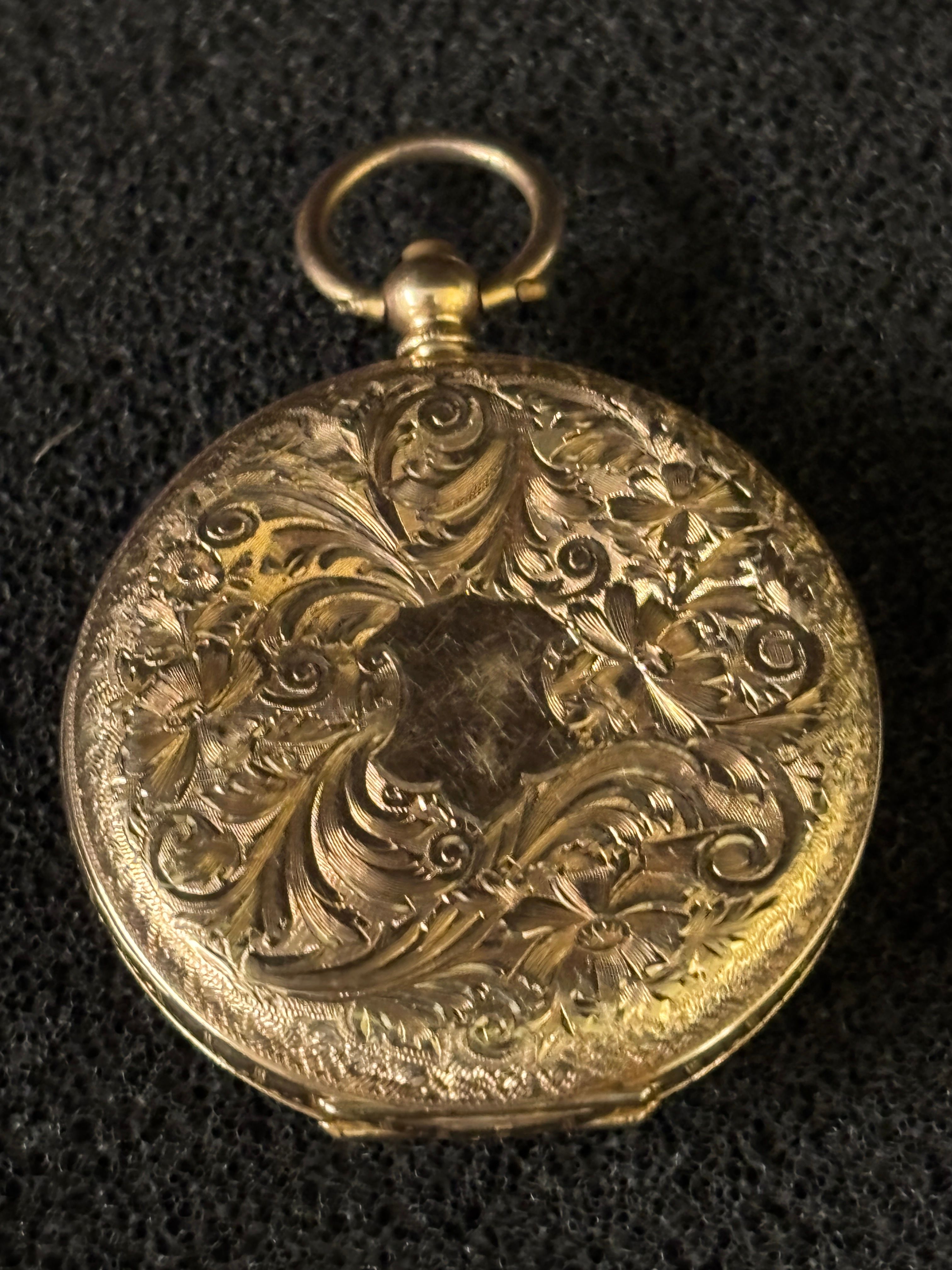 A 14ct gold ladies pocket watch with engraved...