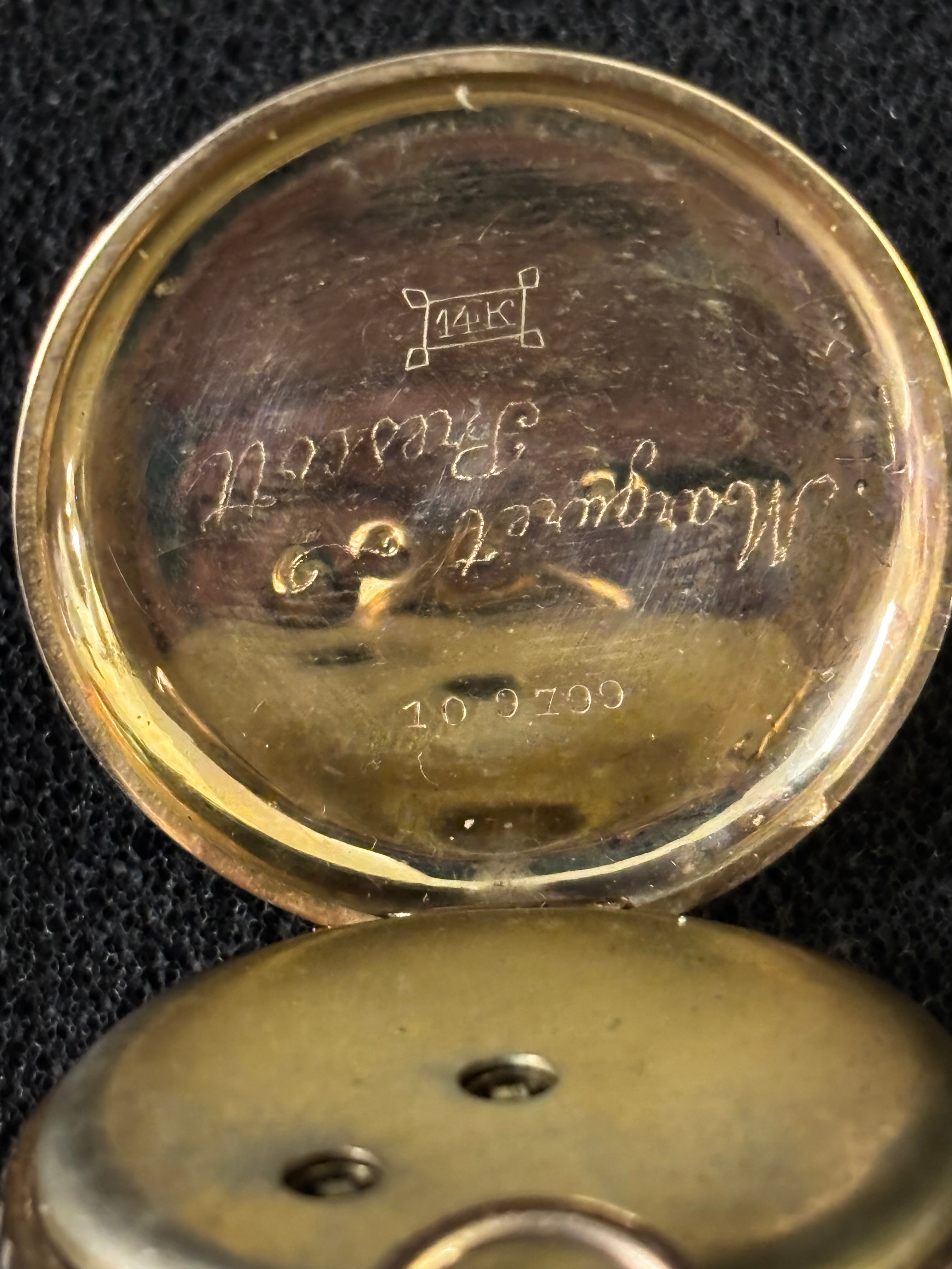 A 14ct gold ladies pocket watch with engraved inscription