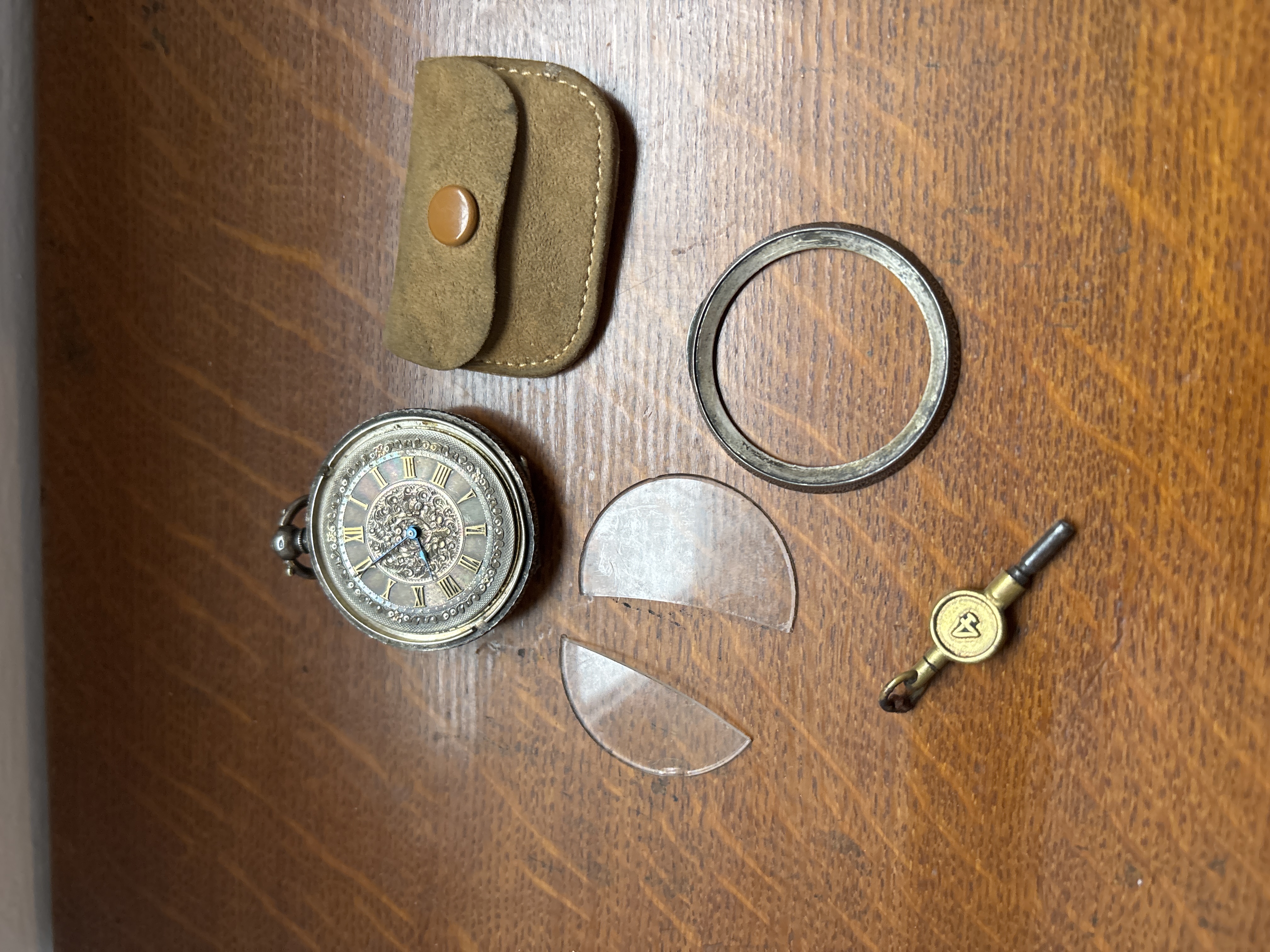 A silver pocket watch retailed by T & E Rhodes, Kendall. a/f