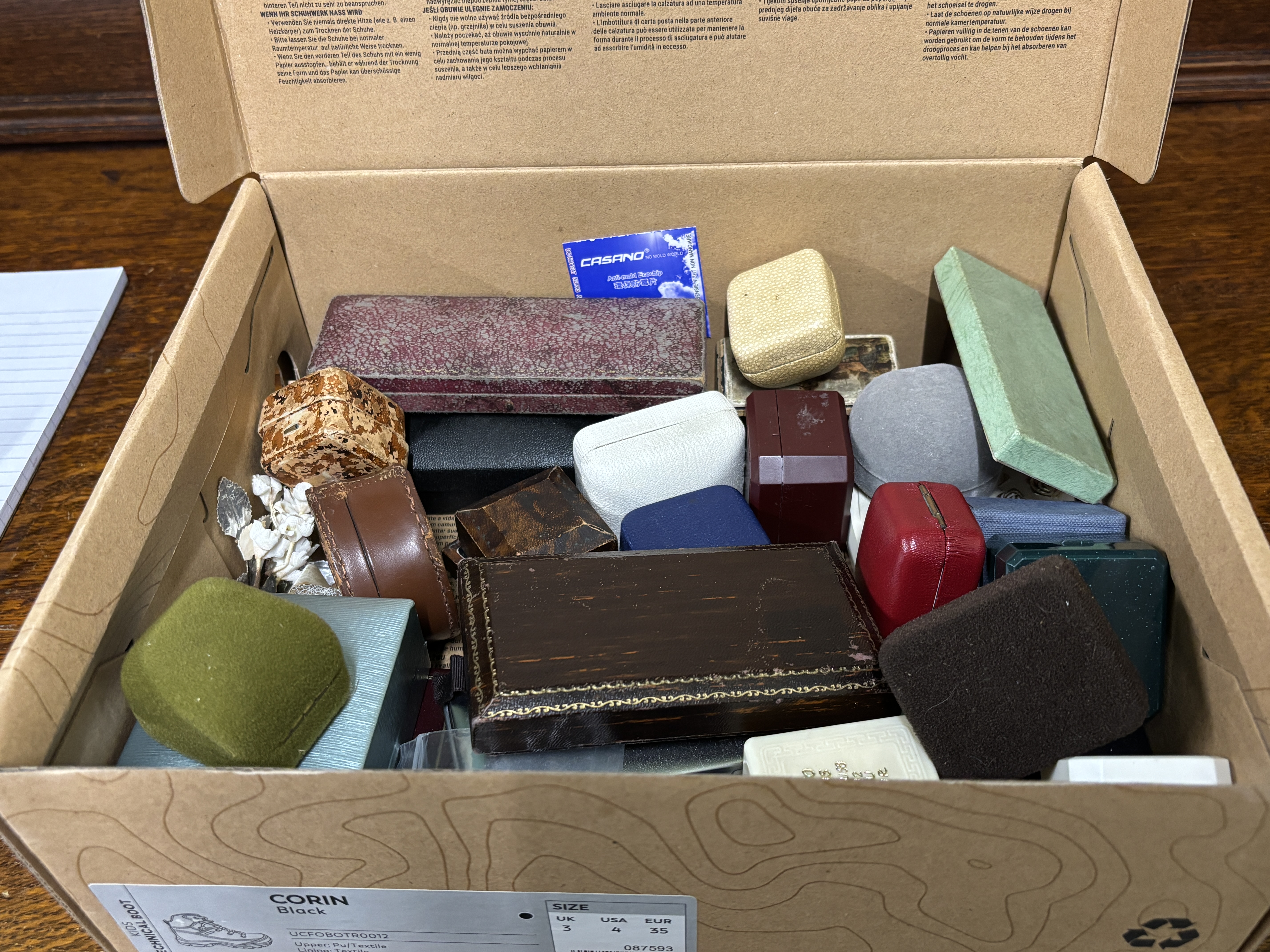 An assortment of jewellery presentation boxes and cases of various periods and designs