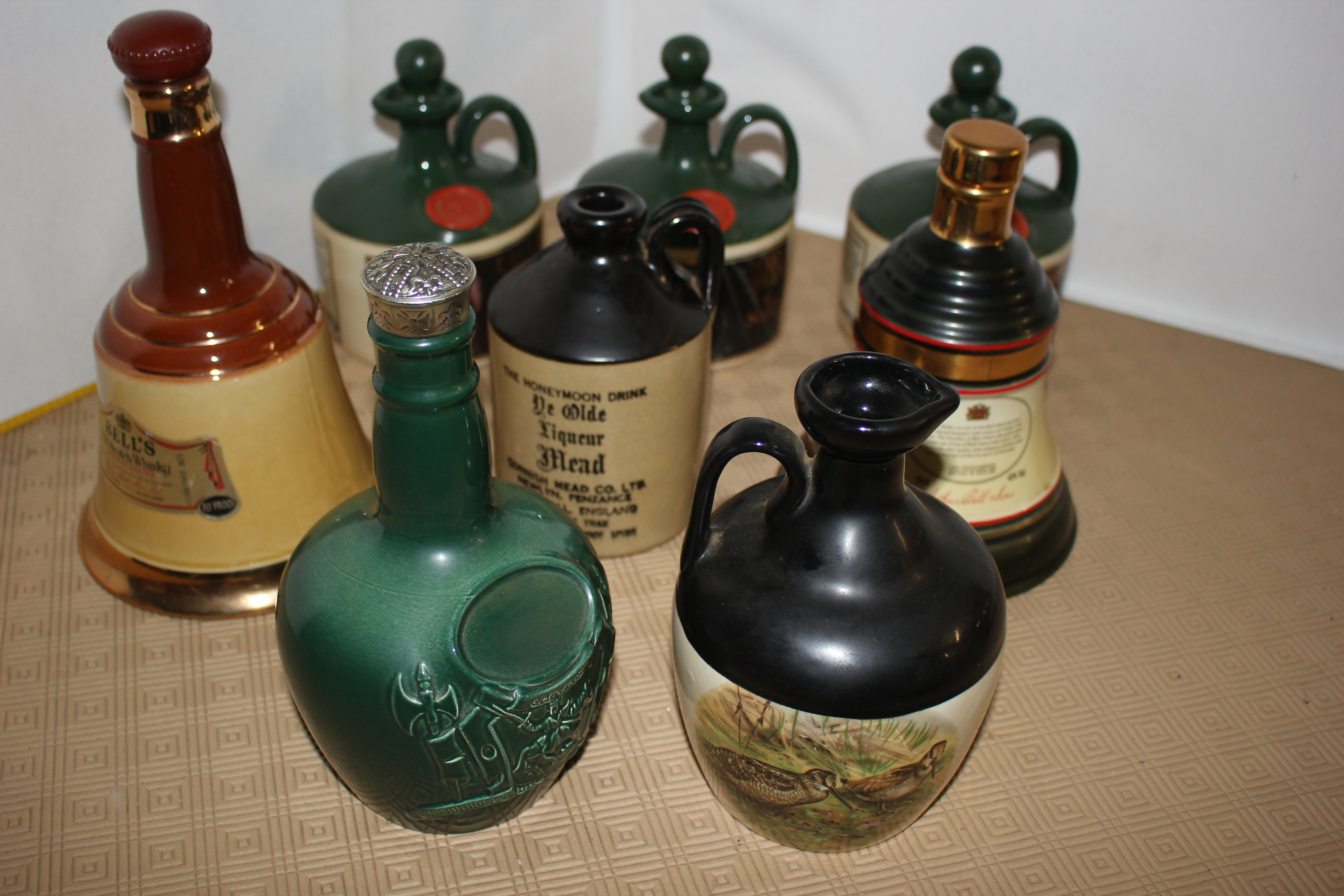Eight ornamental Whisky bottles